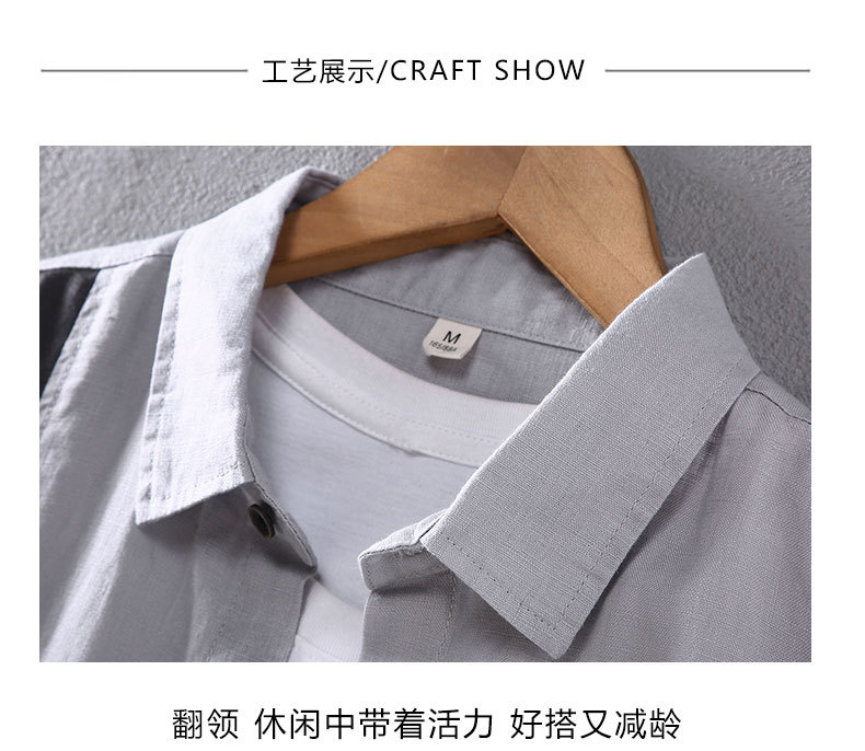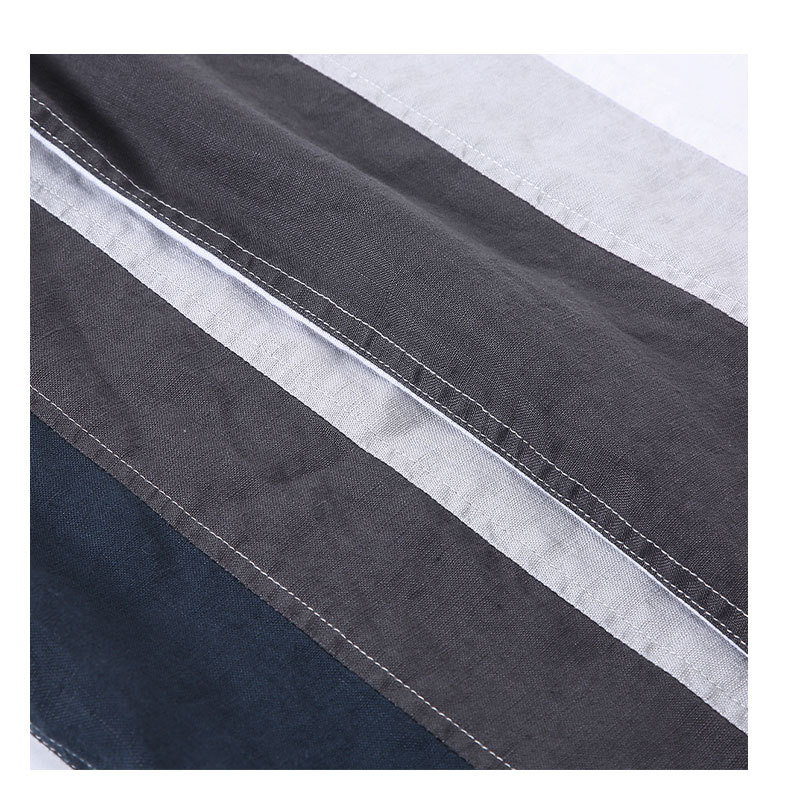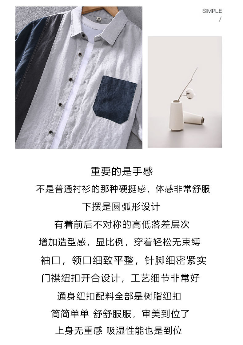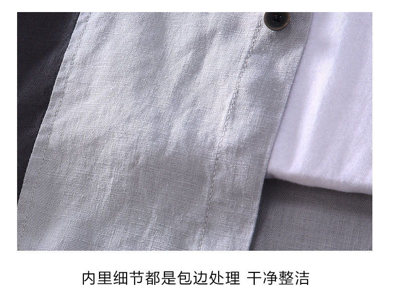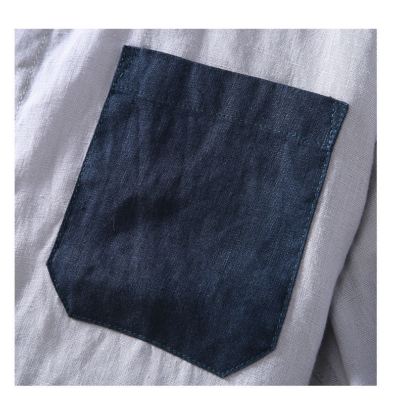 D940 스티칭 대조 컬러 반팔 리넨 셔츠 남성 여름 일본 스타일 복고풍 디자인 센스 풀 리넨 캐주얼 셔츠 트렌디스토어 가기