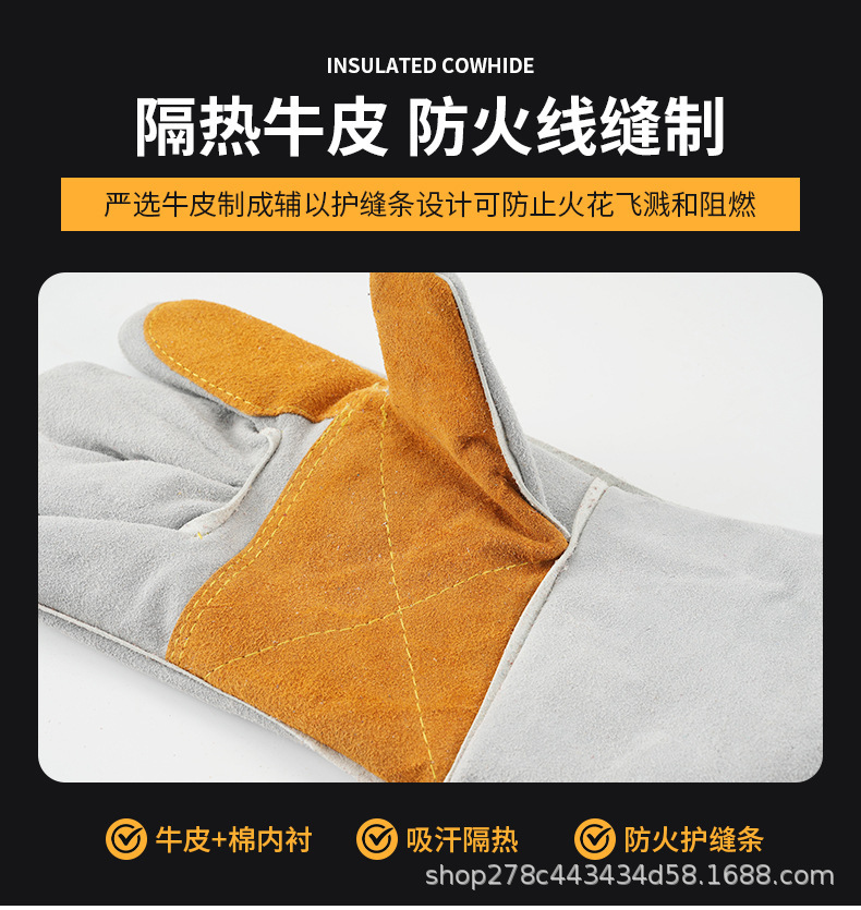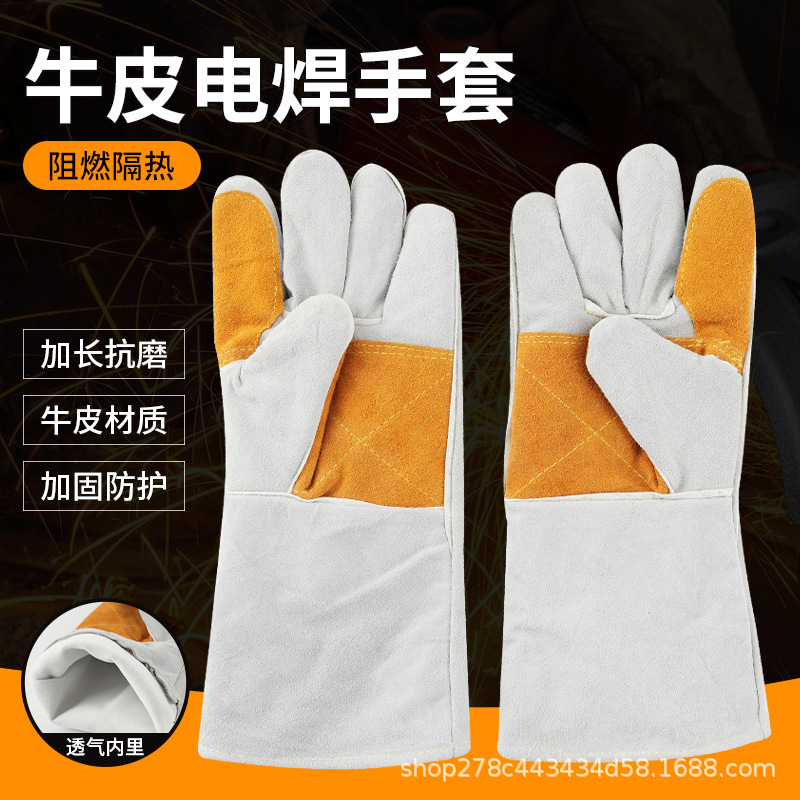 난연 단열 소 가죽 전기 용접 장갑 확장 마모 방지 소 가죽 소재를 보호하여 손 보호 장갑 보강 안전스토어 가기