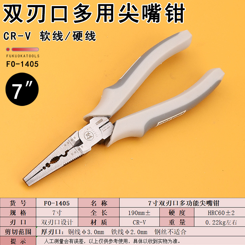 후쿠오카 양날의 뾰족한 코 펜치 7 인치 FO-1405 뾰족한 펜치 수동 하드웨어 유지 보수 도구 와이어 브레이킹 펜치 브랜드
