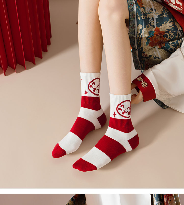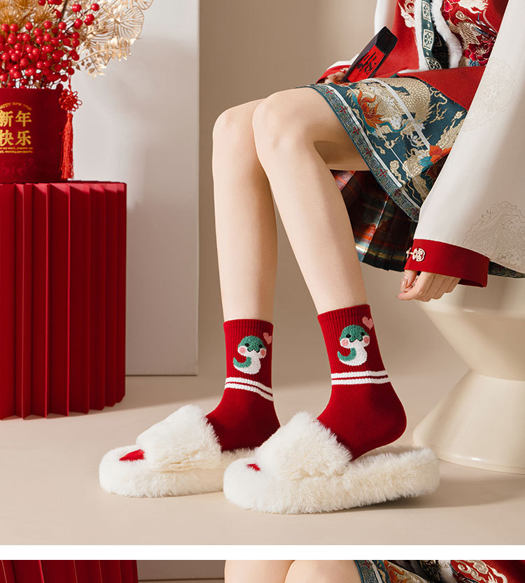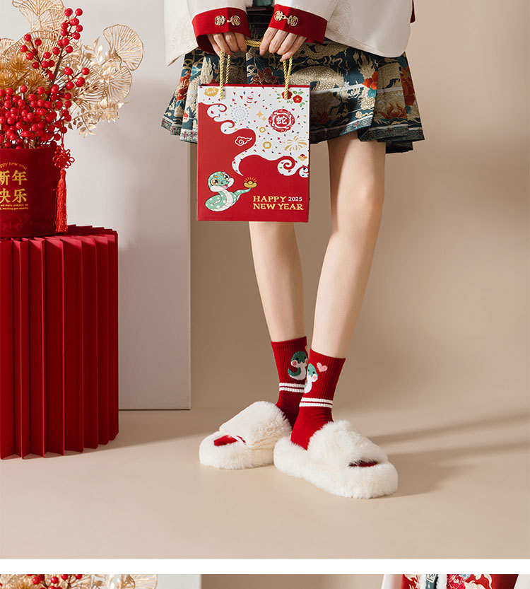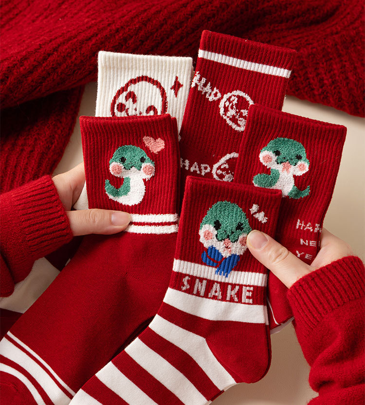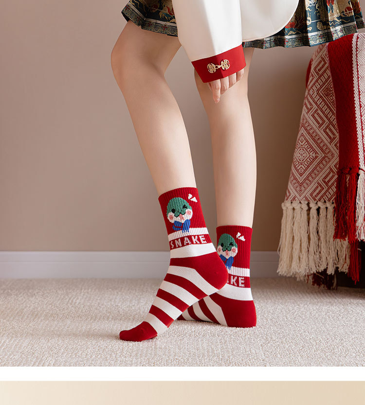 2025 년 뱀 빨간 양말 여성 뼈 년 붉은 축제 새해 양말 귀여운 만화 뱀 양말 선물 상자스토어 가기