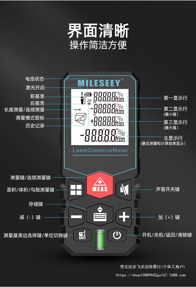 Mee 레이저 레인지 파인더 휴대용 적외선 측정 통치자 전자 통치자 높은 정밀도 측정 룸 계기 거리 측정 기기