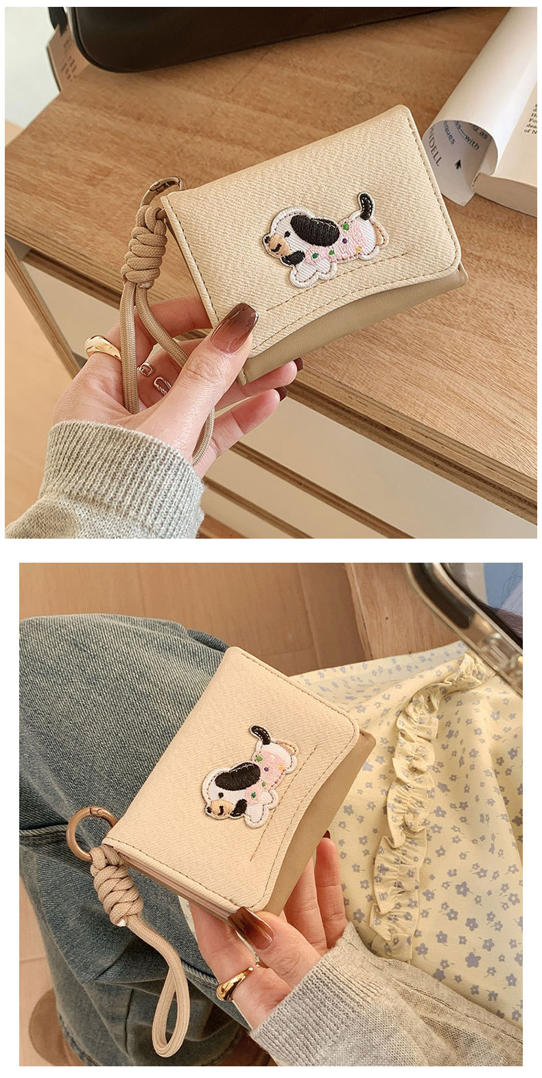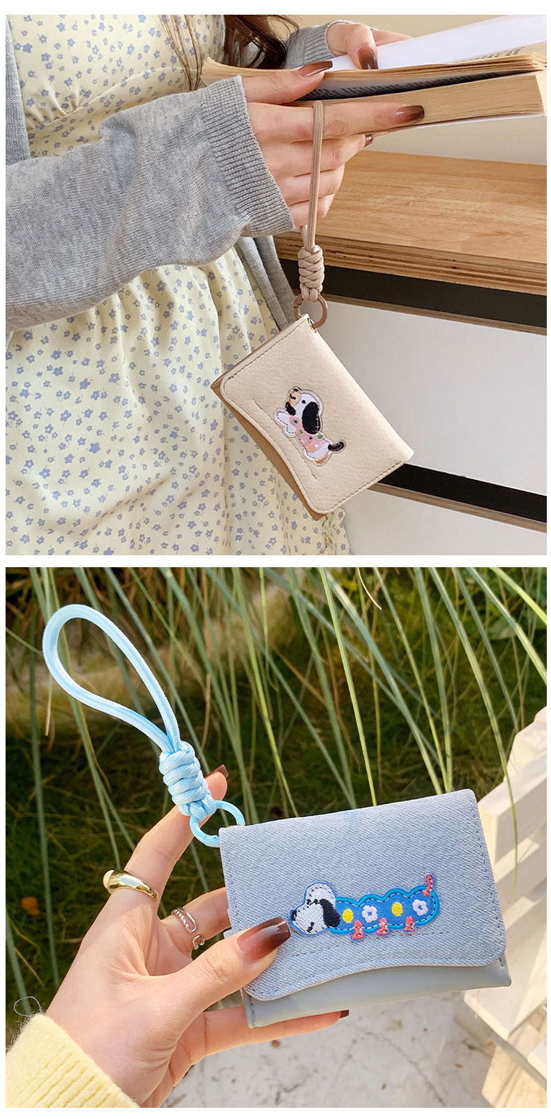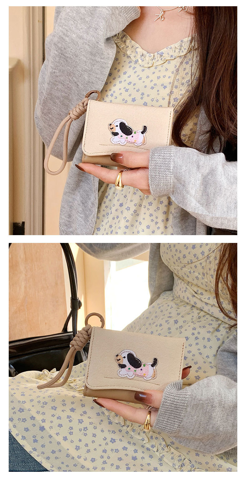 Ins Dachshund 헝겊 스티커 한국 스타일 귀여운 간단한 카드 가방 다기능 여성의 안티 손실 Lanyard Wallet WALLET스토어 가기
