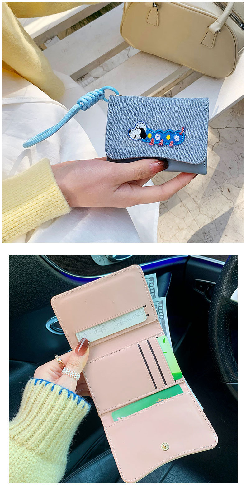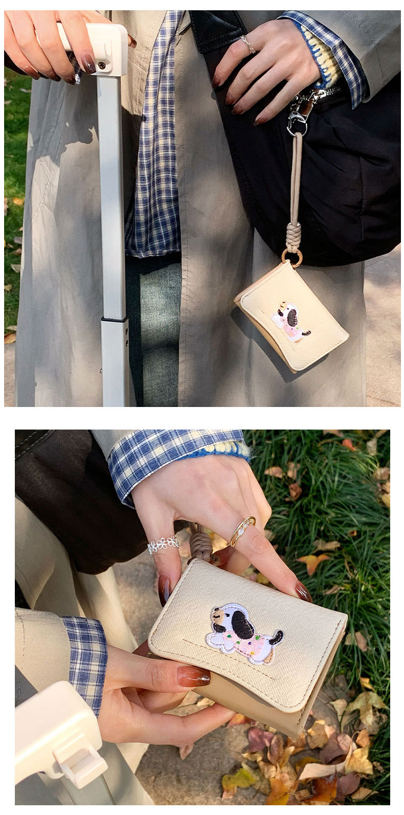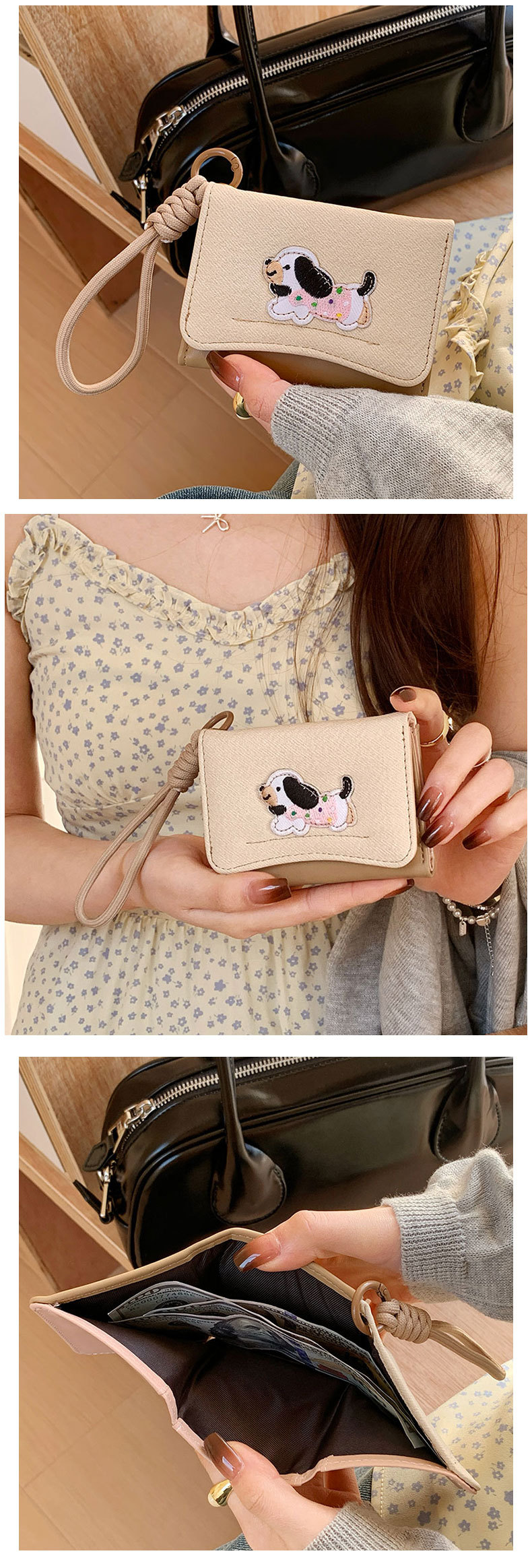 Ins Dachshund 헝겊 스티커 한국 스타일 귀여운 간단한 카드 가방 다기능 여성의 안티 손실 Lanyard Wallet WALLET스토어 가기
