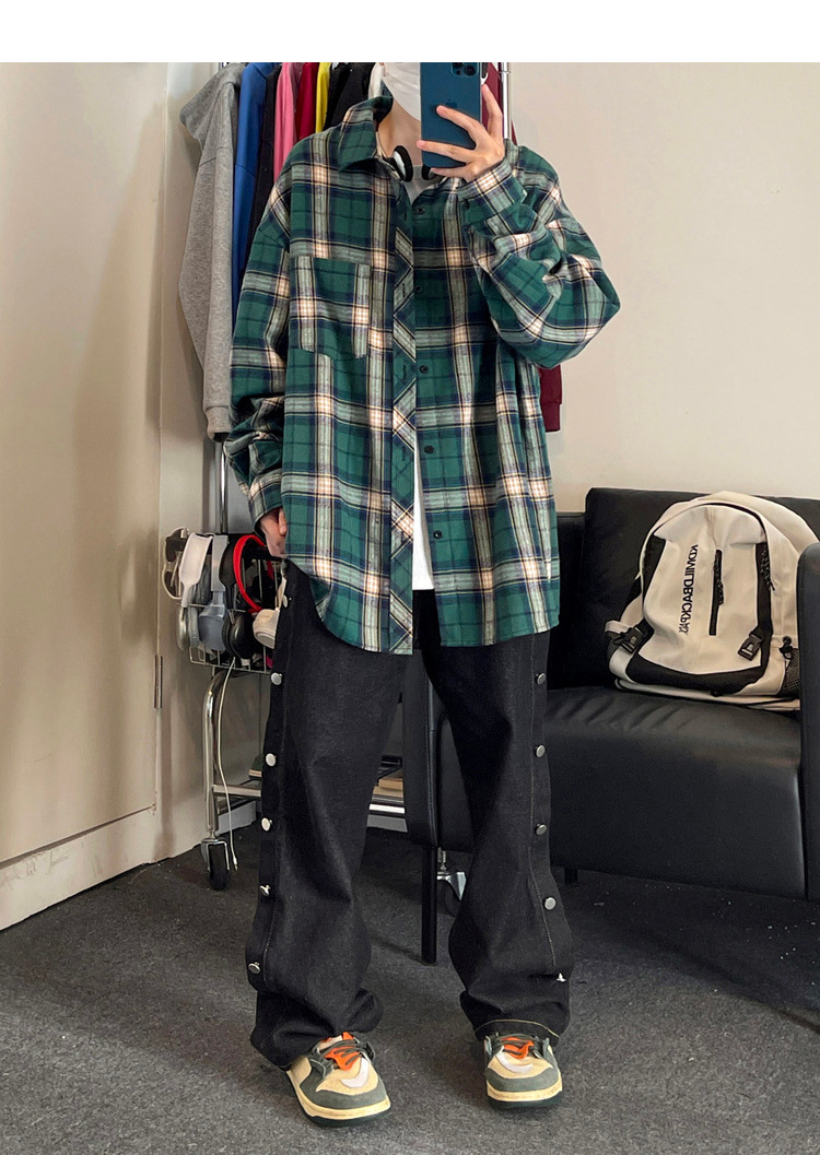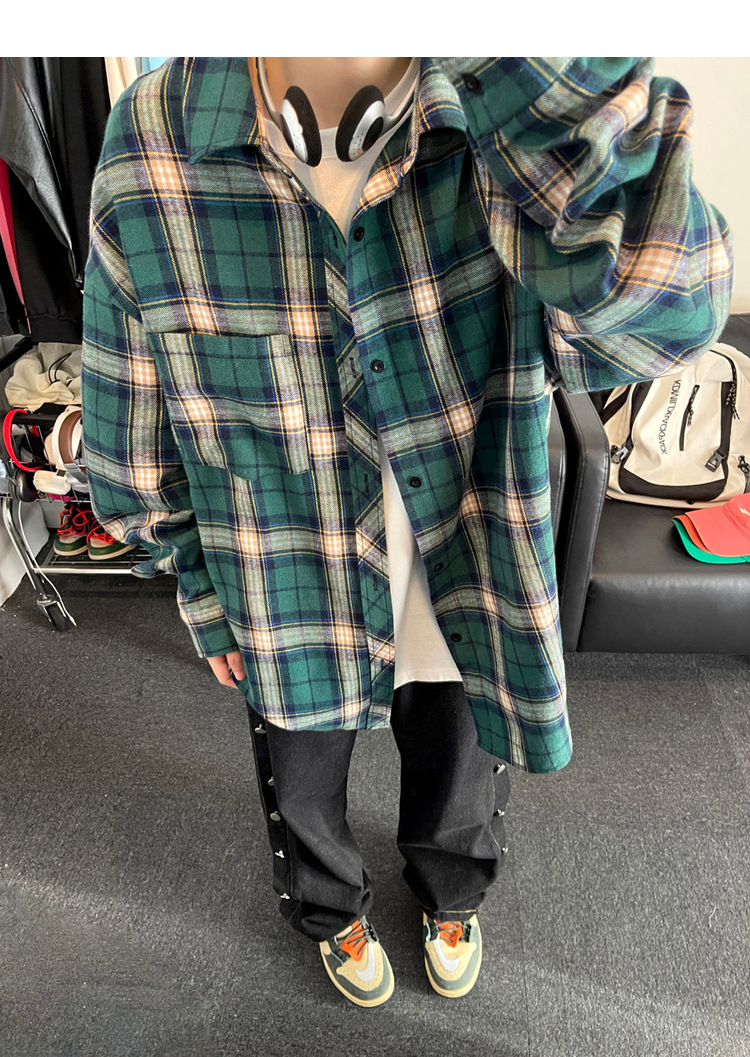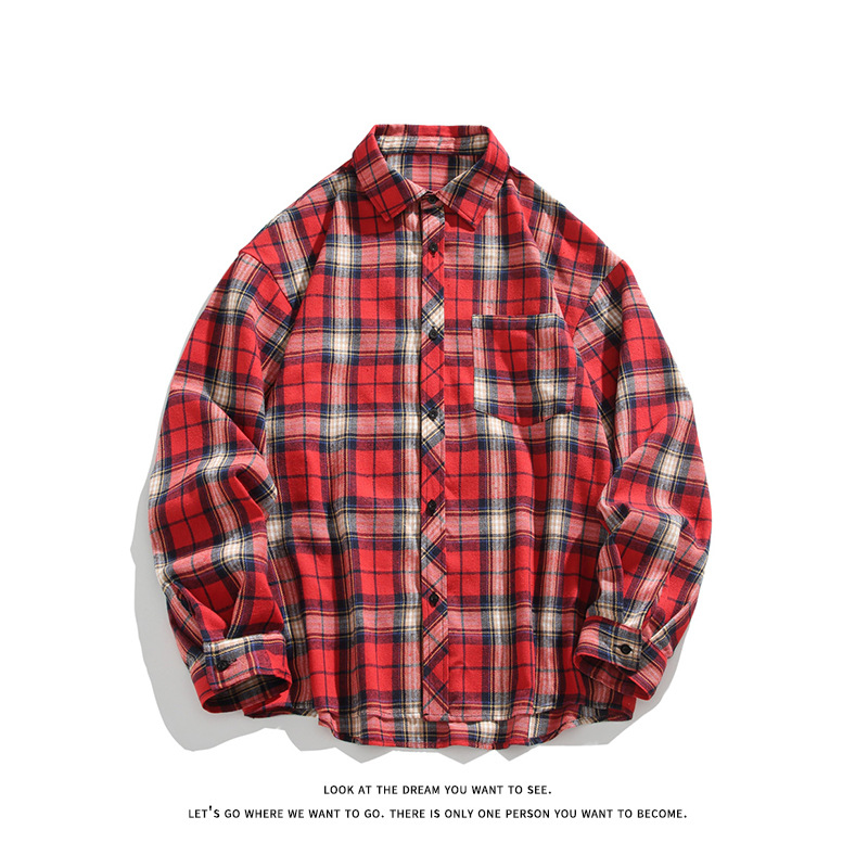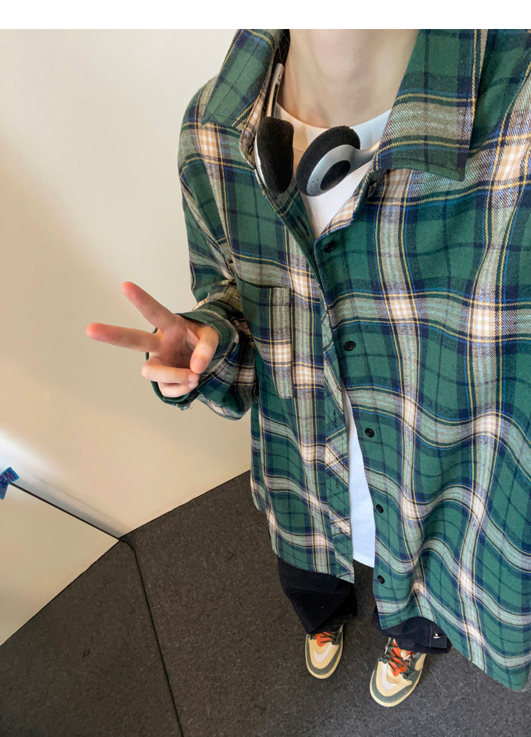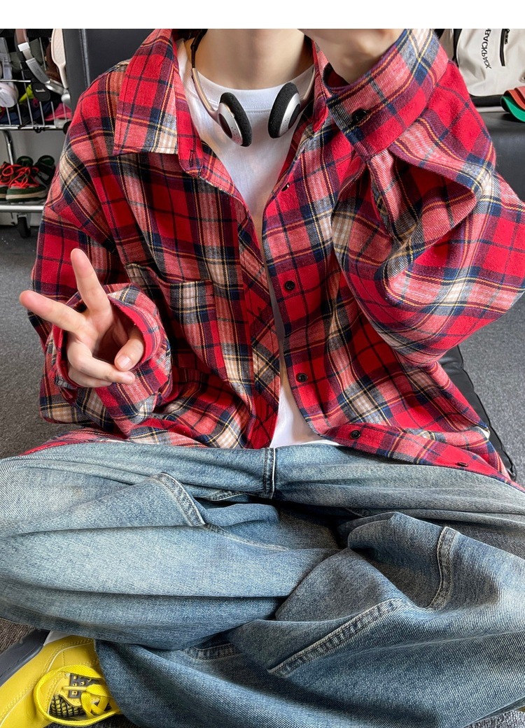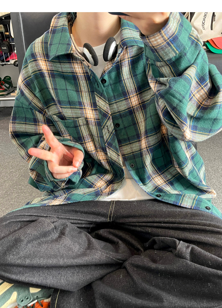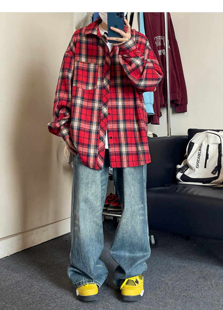 Jianheng American Retro Plaid 셔츠 남자 하이 엔드 긴팔 셔츠 올 매치 패셔블 와이드 셔츠 재킷스토어 가기