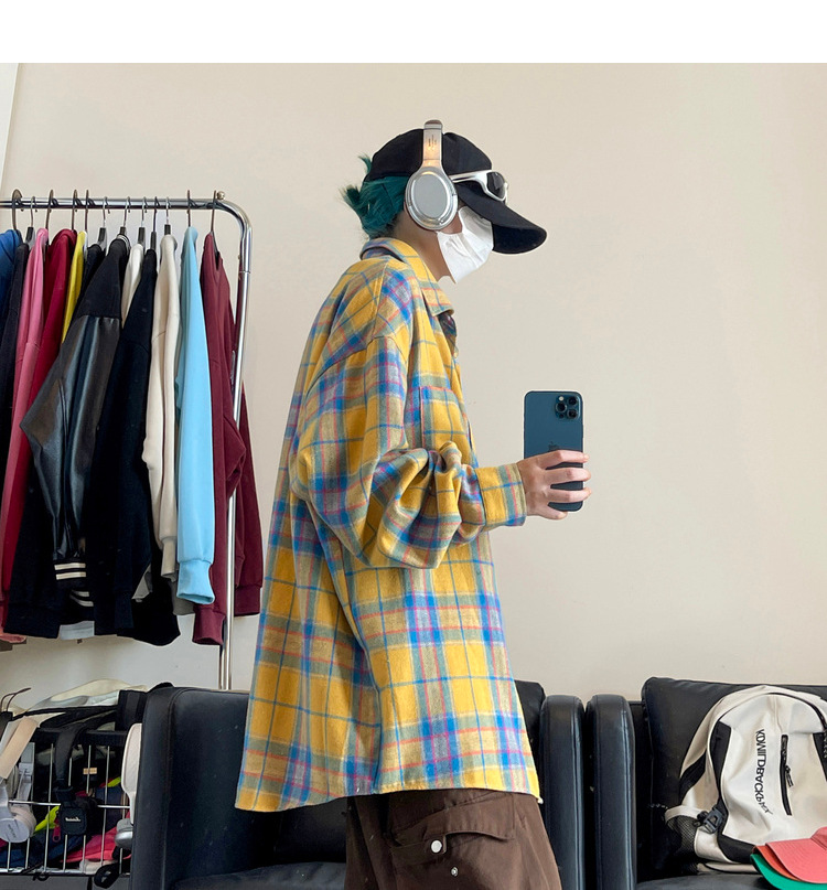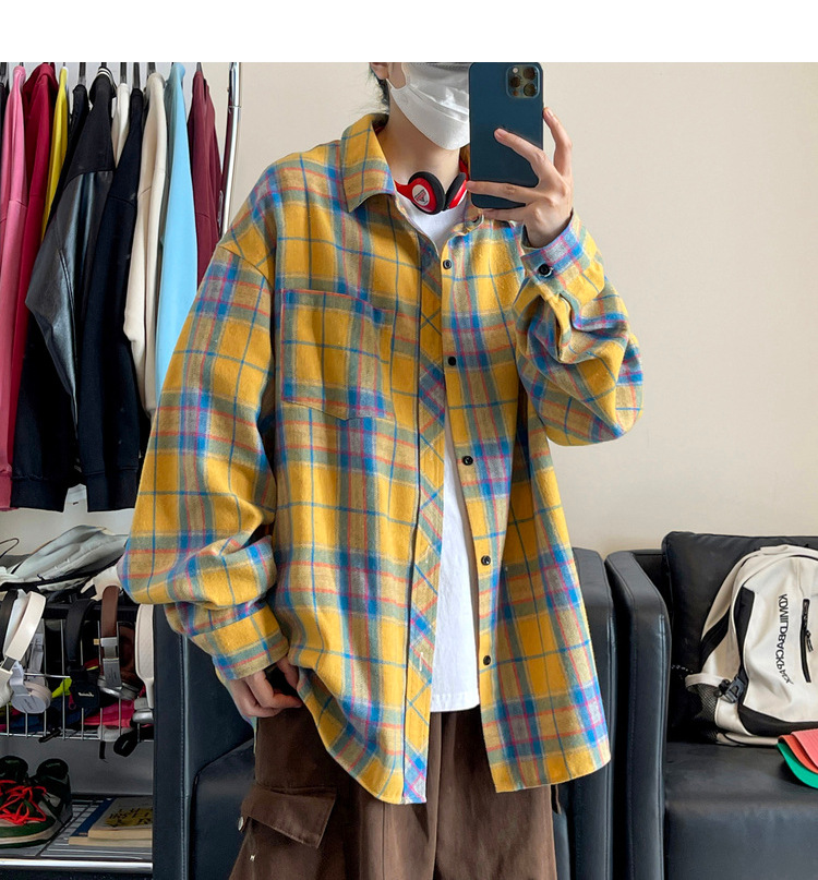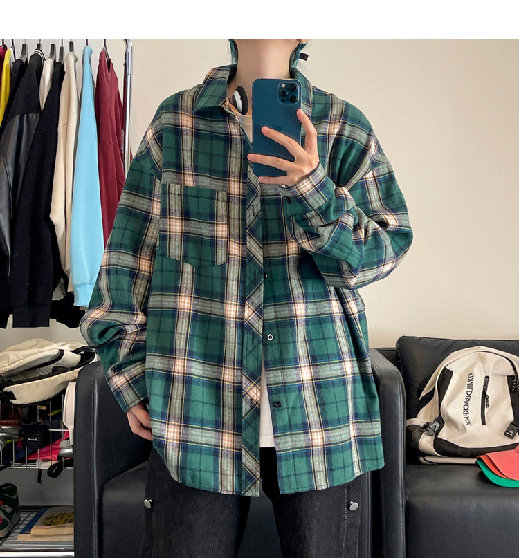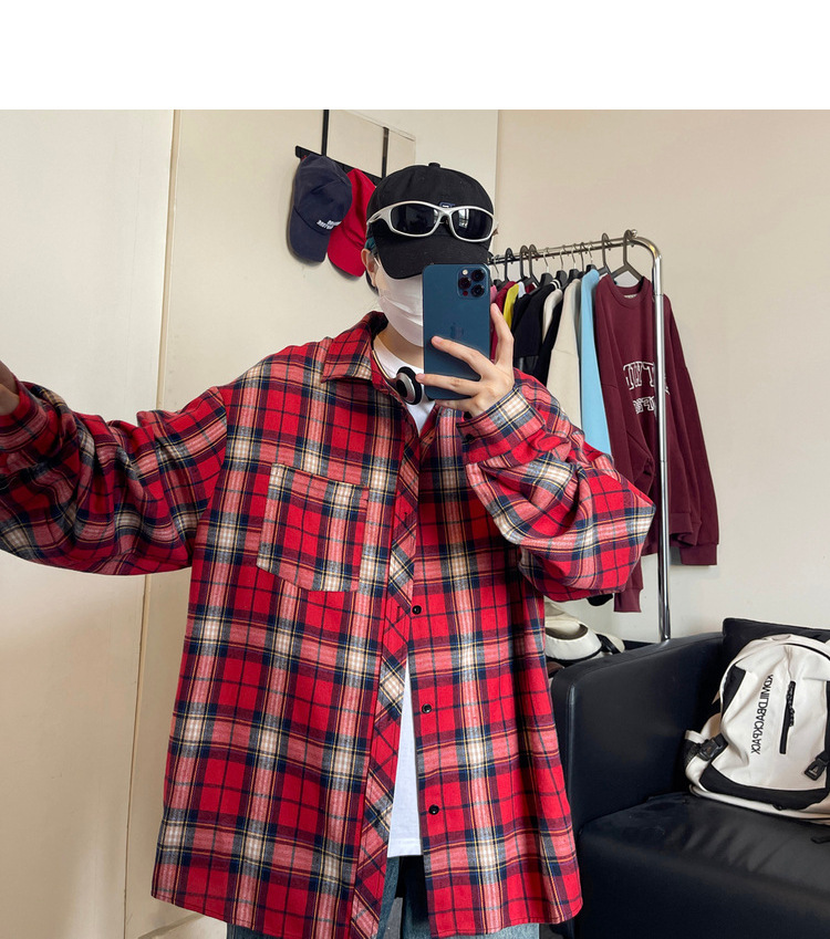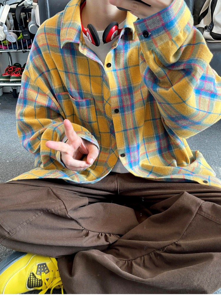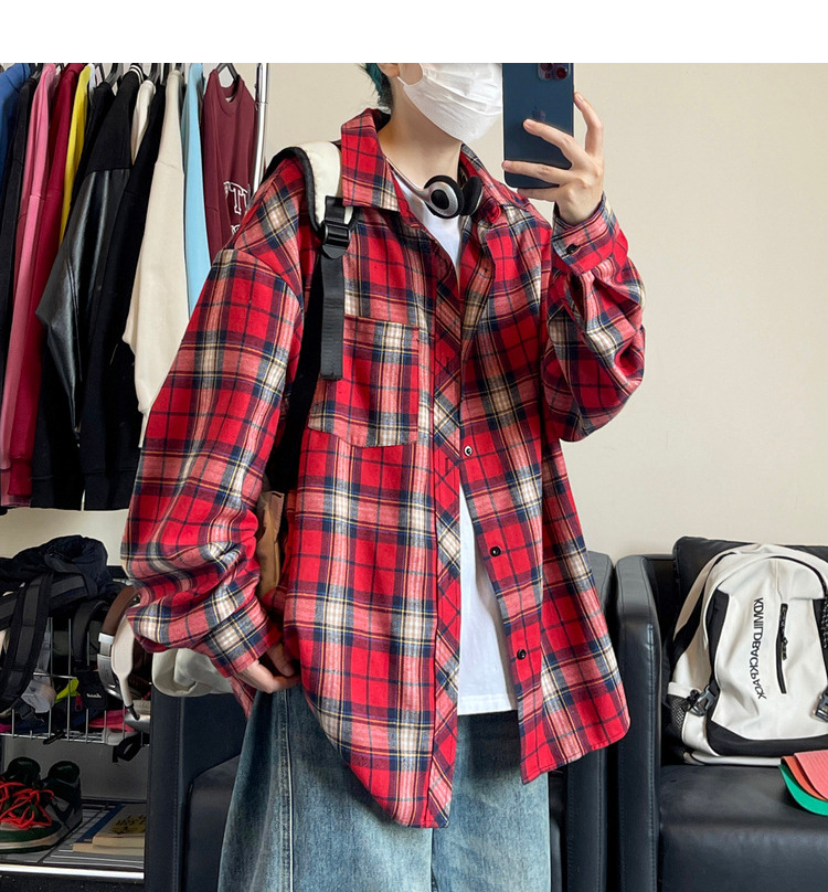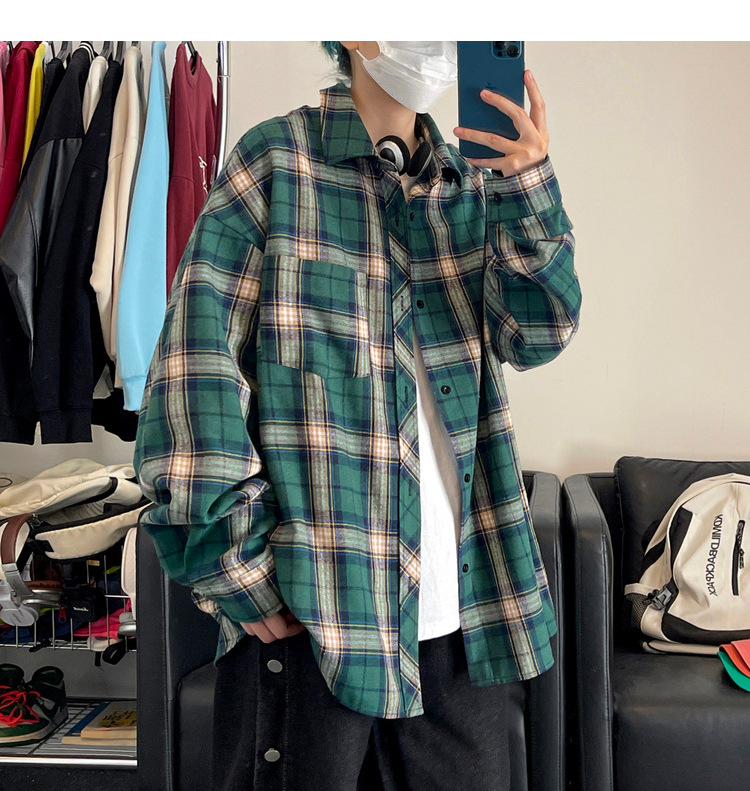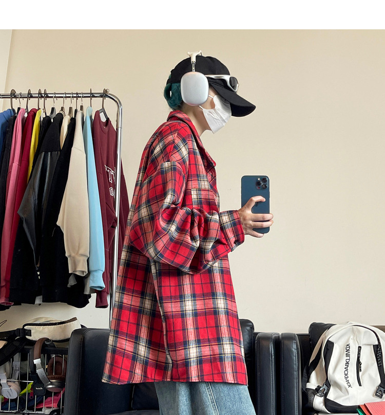 Jianheng American Retro Plaid 셔츠 남자 하이 엔드 긴팔 셔츠 올 매치 패셔블 와이드 셔츠 재킷스토어 가기