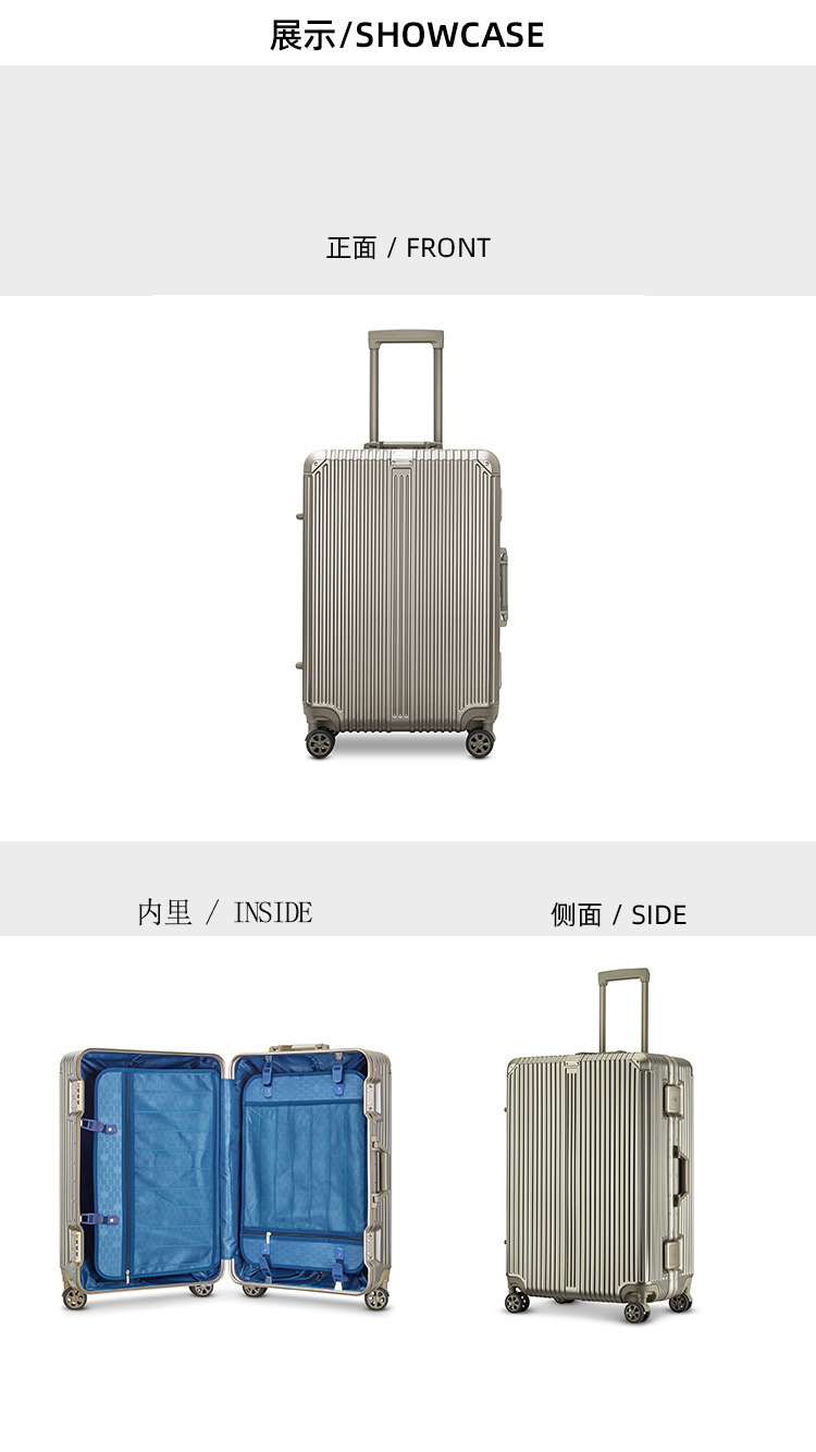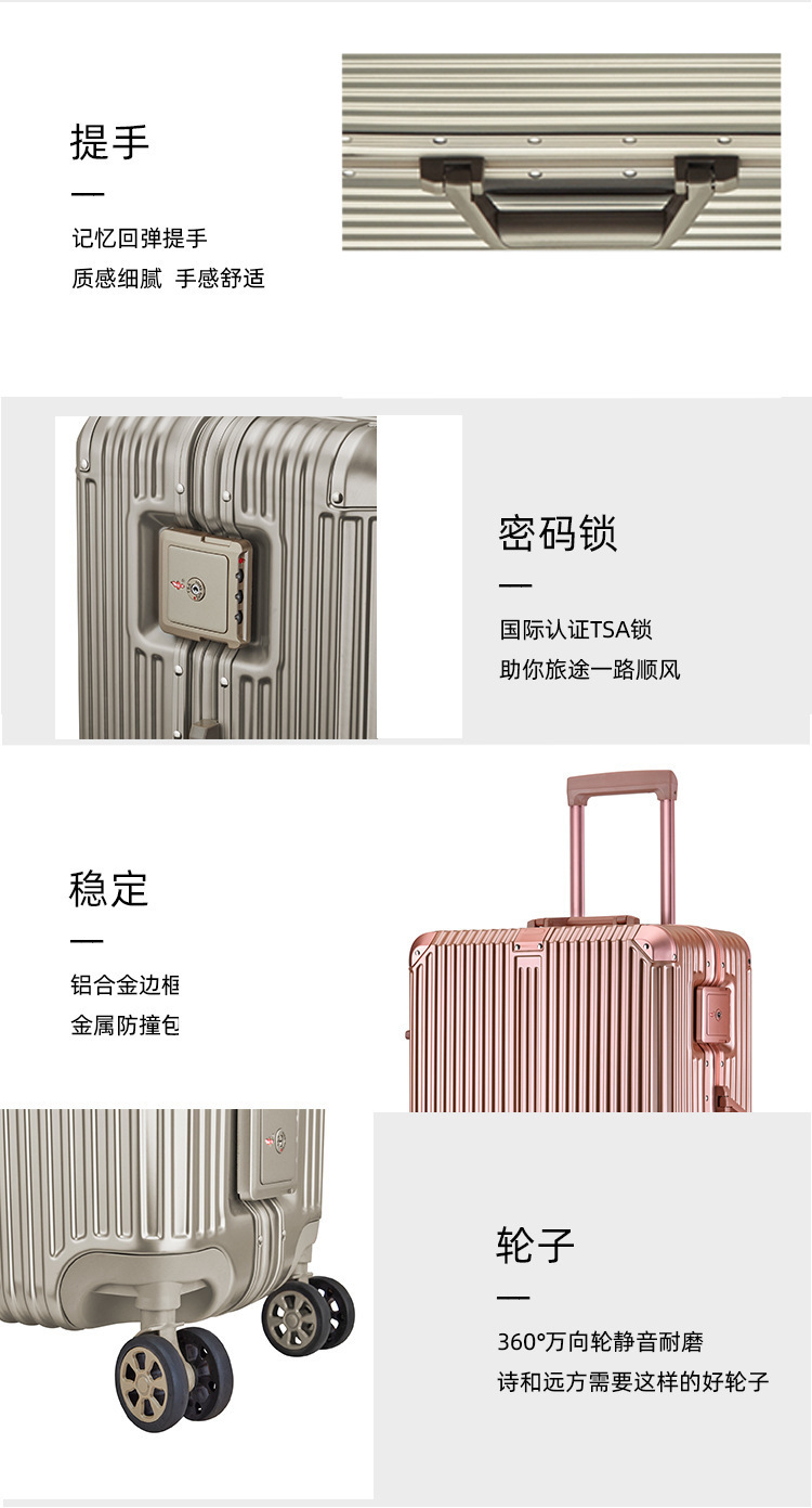 새로운 견고한 여행가방 20inch 여행가방 남성용 알루미늄 프레임 가방 여성용 학생 비즈니스 무소음 바퀴가 달린 트롤리 가방 가죽 가방