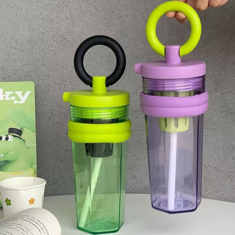 창의적이고 편리한 워터 컵 여름 소녀 높은 가치 흡입 컵 간단한 패션 차 분리 플라스틱 컵