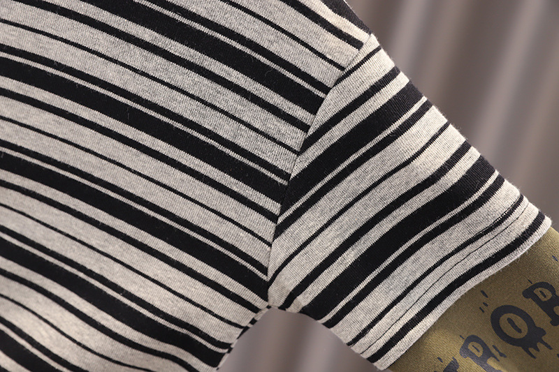 아기 남자 봄 가을 의류 세트 2025 새로운 어린이 봄 줄무늬 긴팔 터틀넥 스웨터 캐주얼 투피스 세트