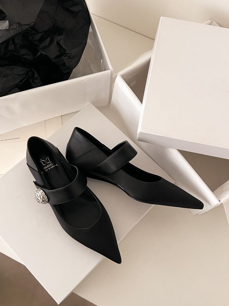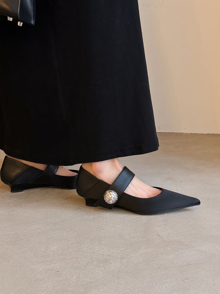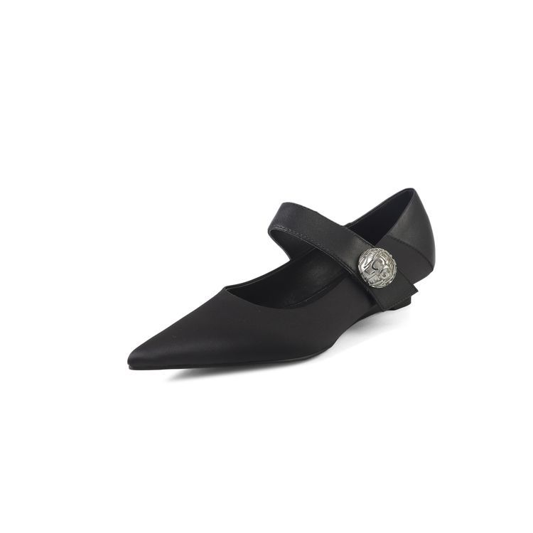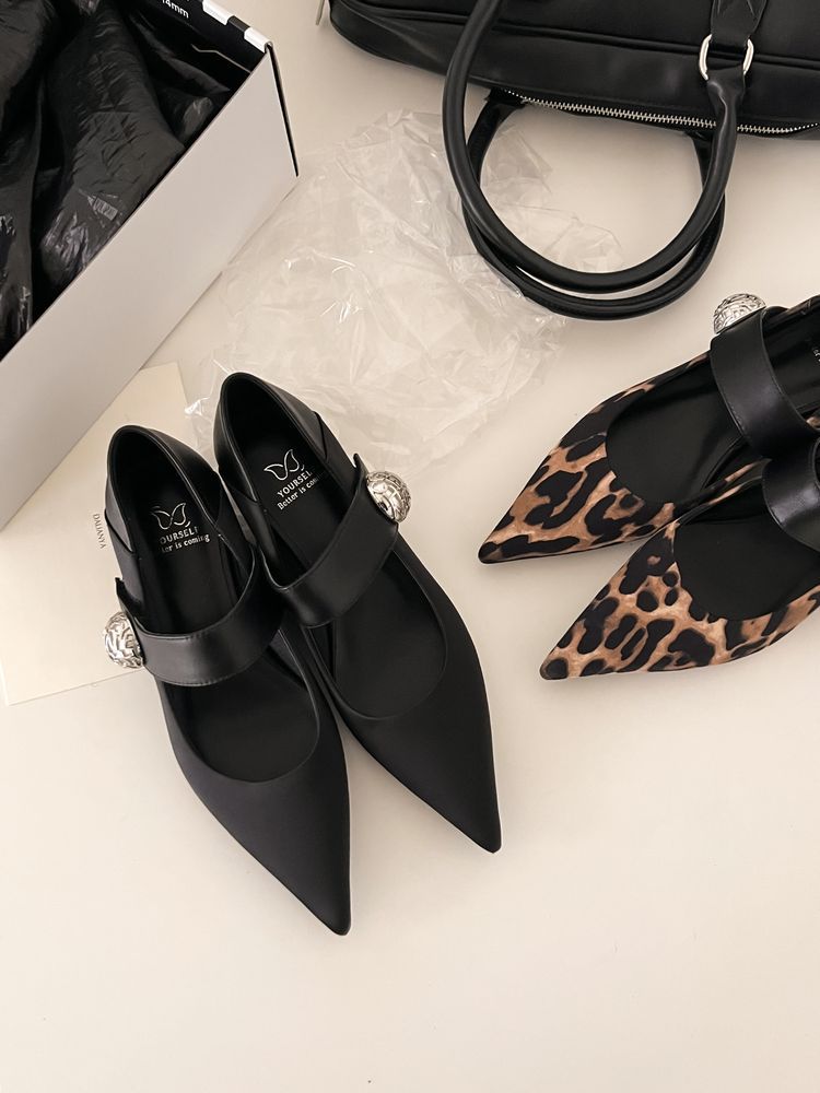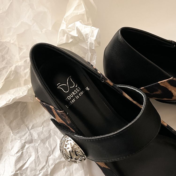 뾰족한 레오파드 무늬 버클 메리 제인 신발 여성의 이른 봄 새 새틴 양가죽 쐐기 얕은 메이스 신발 여성용 미드 힐스토어 가기