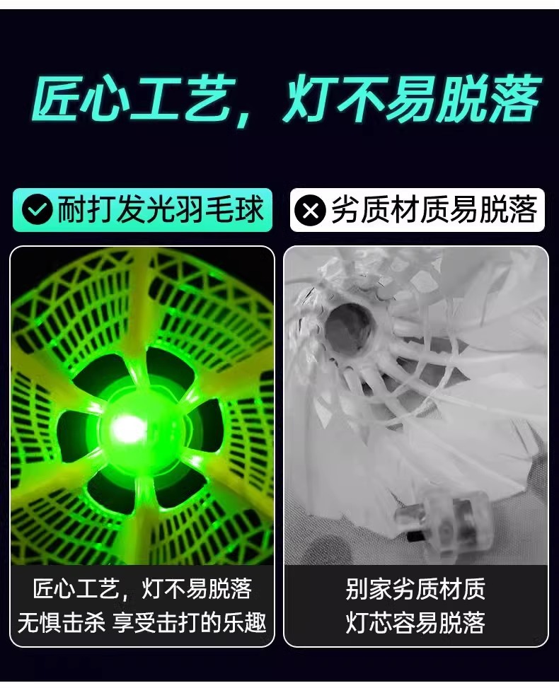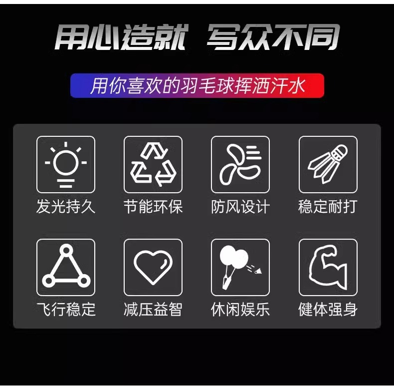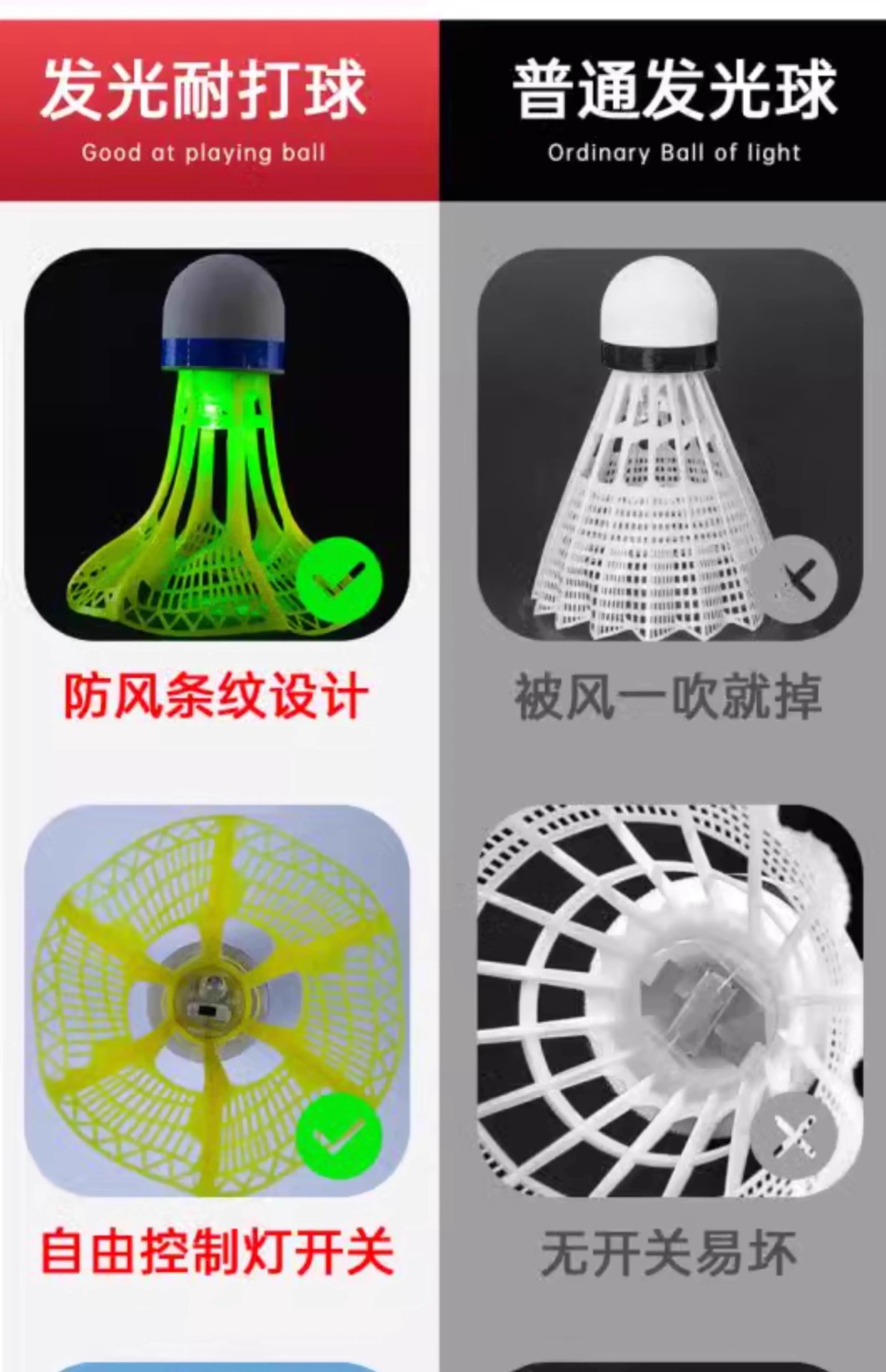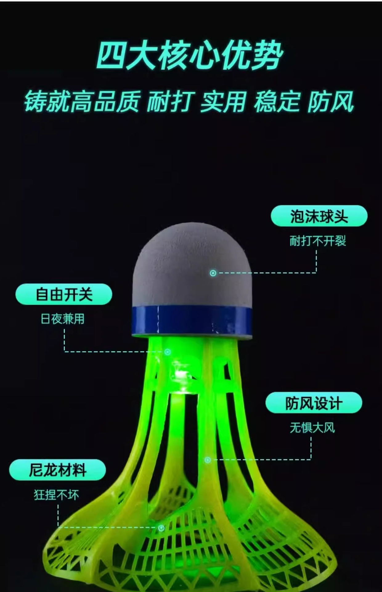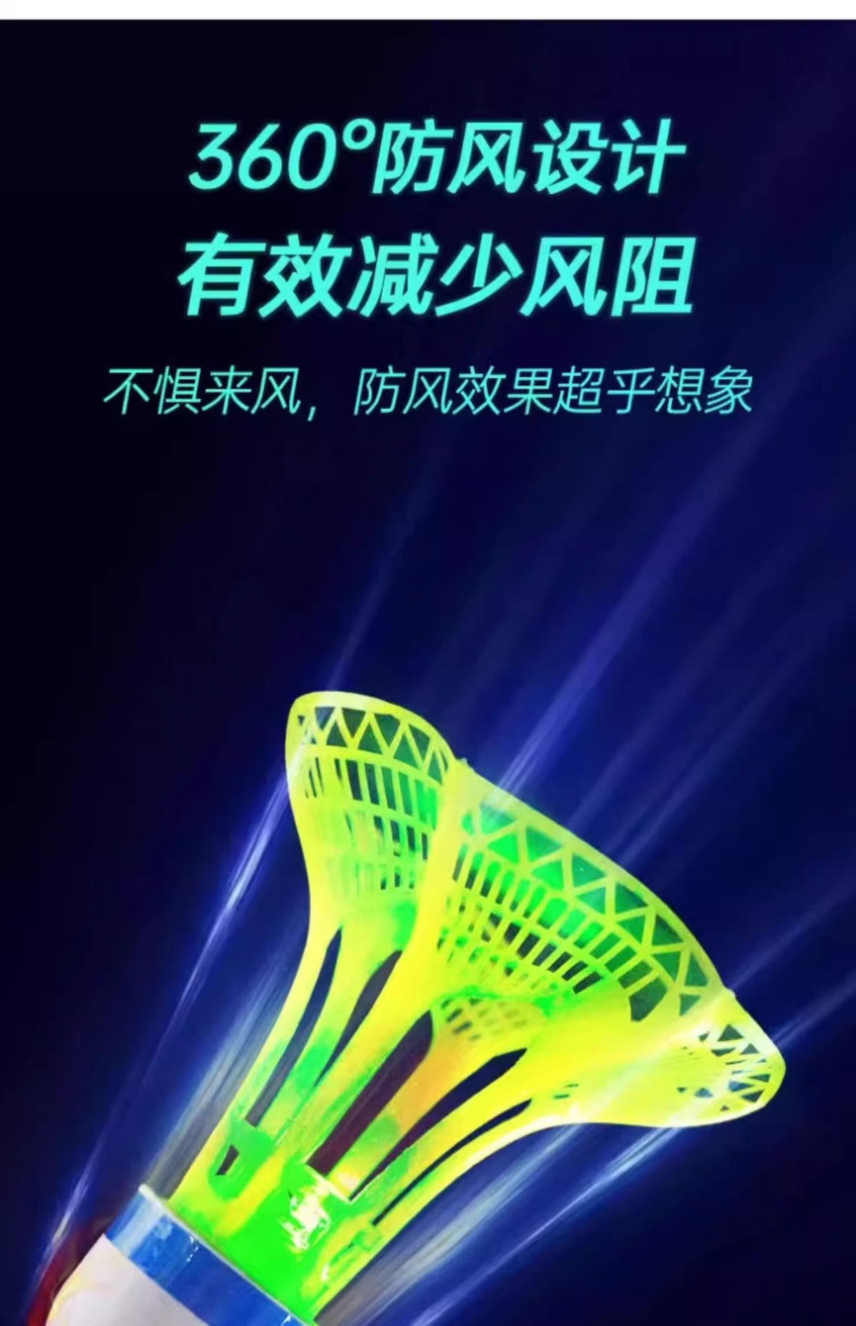 빛 저항하는 밤 공 머리 형광 플래시 플라스틱 밤 빛을 가진 빛나는 배드민턴 방풍 빛나는 나일론 공