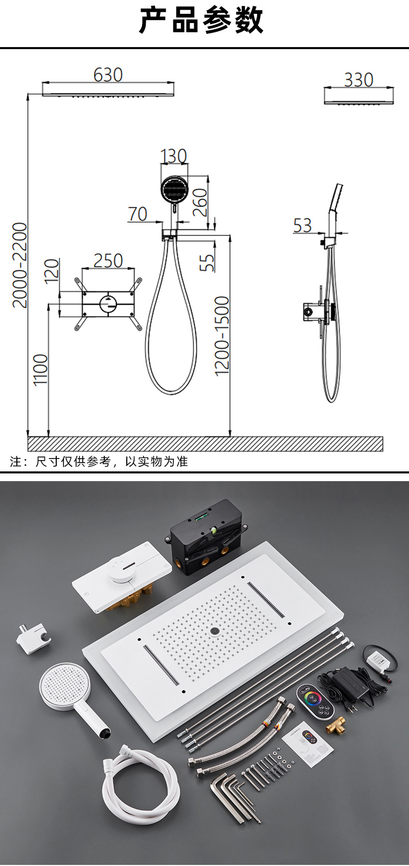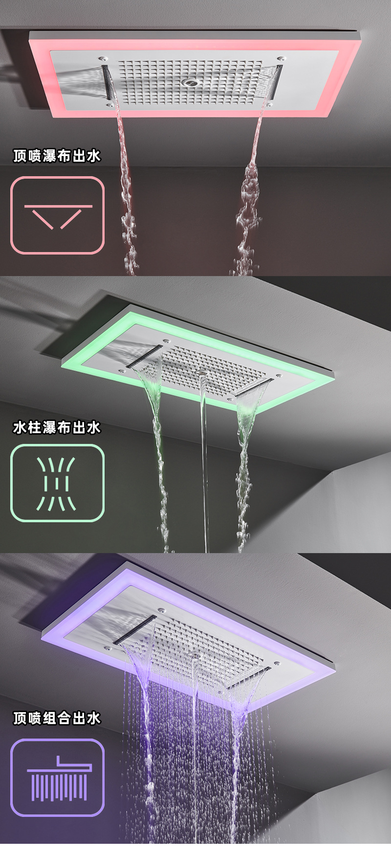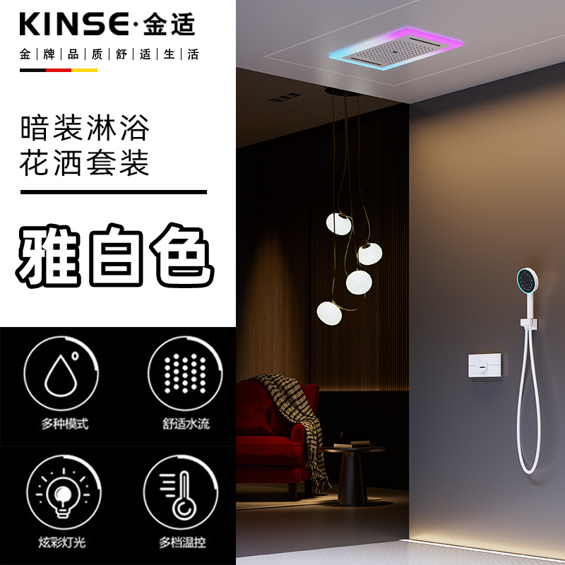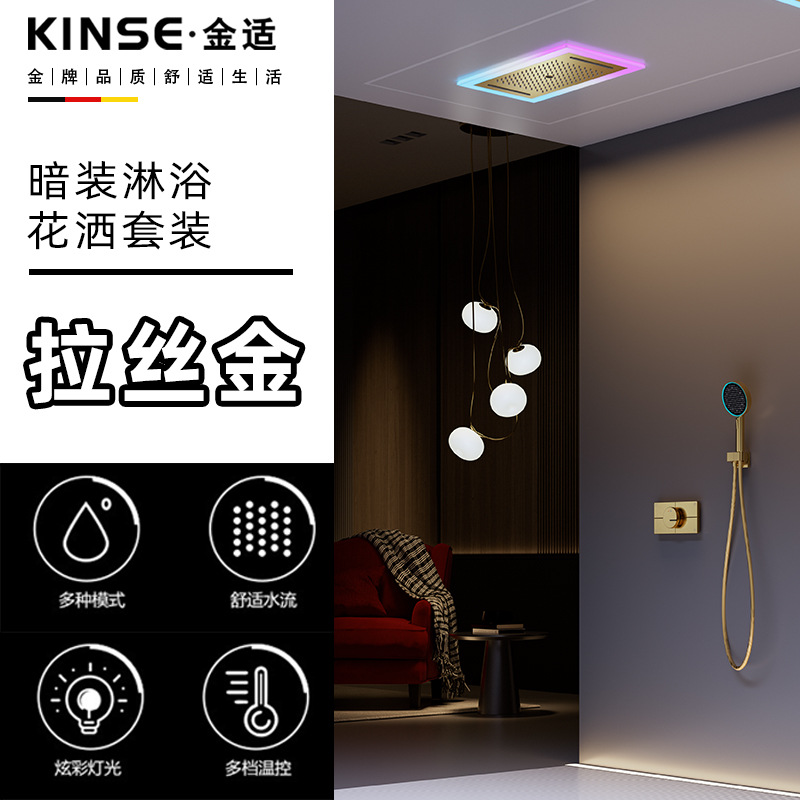 창조적 인 황동 은폐 주변 대기 램프 일정한 온도 샤워 세트 폭포 비 하늘 커튼 숨겨진 임베디드 홈