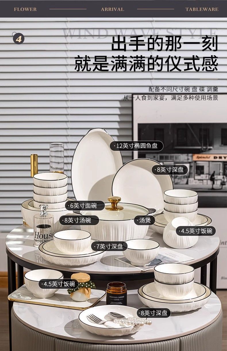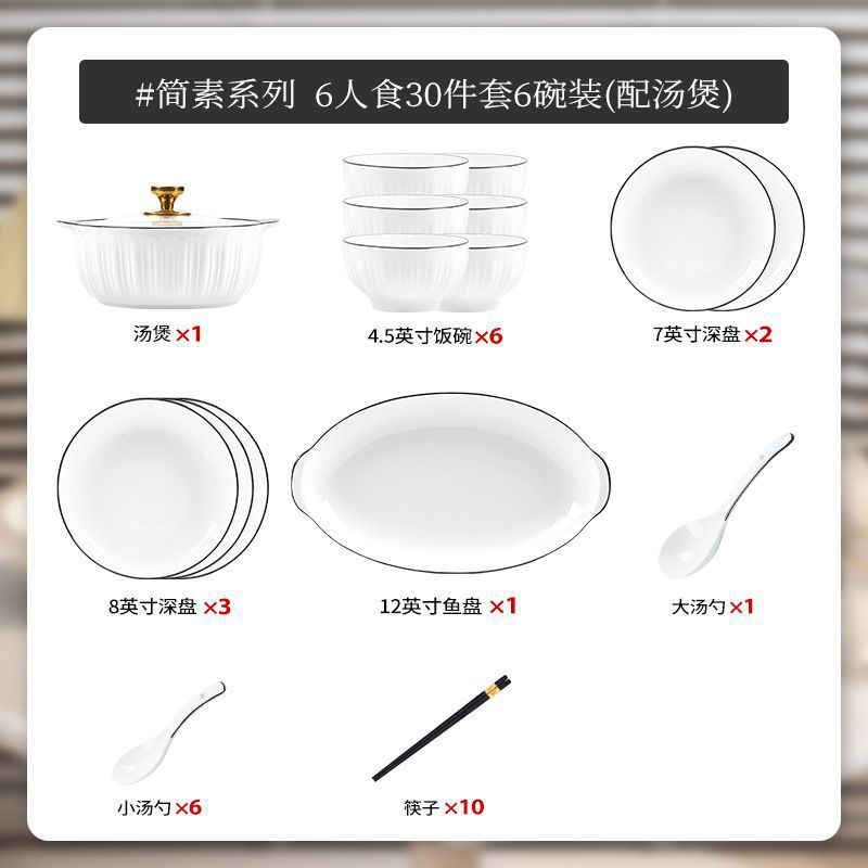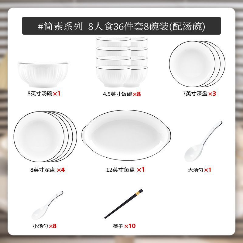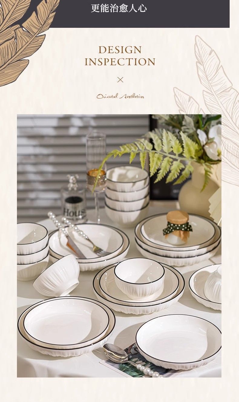 식기 순수한 흰색 세트 Jingdezhen 세라믹 Underglyze Color Ins 스타일 접시 전체 세트 높은 색상 가치 깔끔한 그릇 밥 그릇스토어 가기