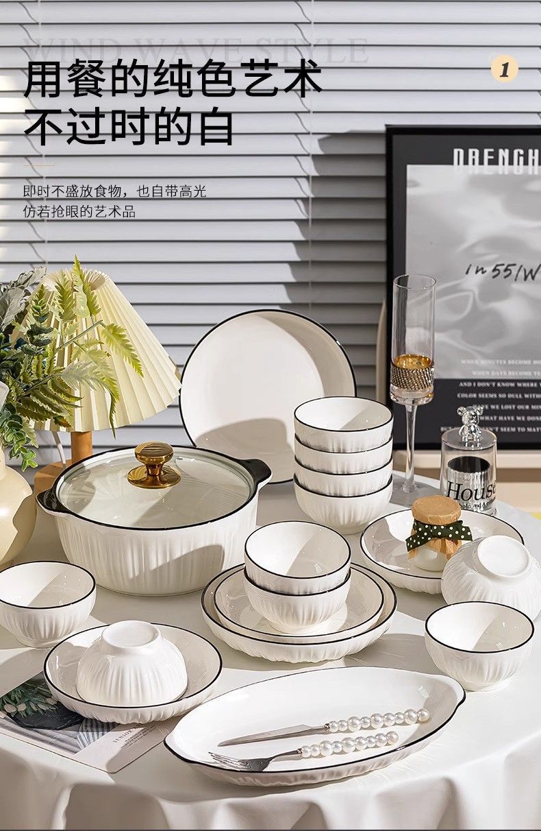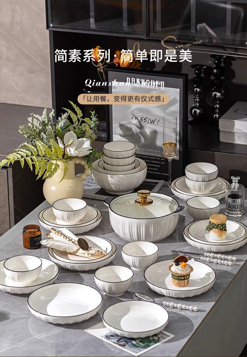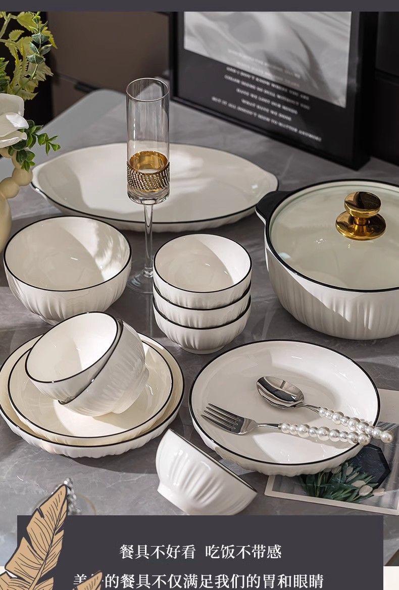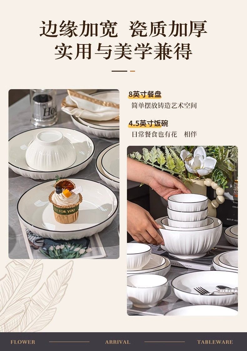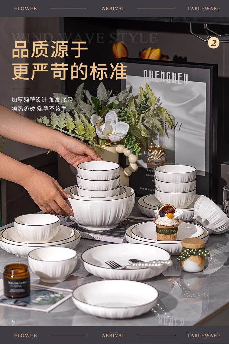 식기 순수한 흰색 세트 Jingdezhen 세라믹 Underglyze Color Ins 스타일 접시 전체 세트 높은 색상 가치 깔끔한 그릇 밥 그릇