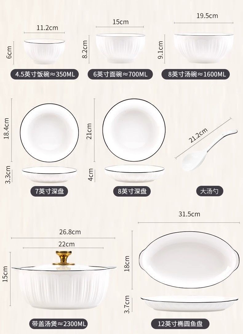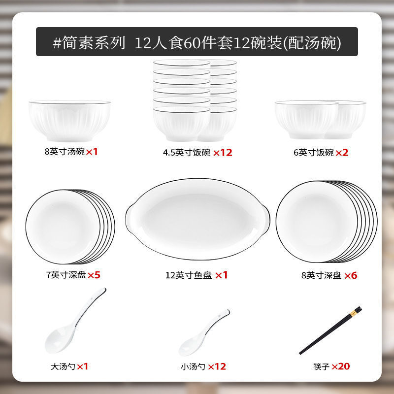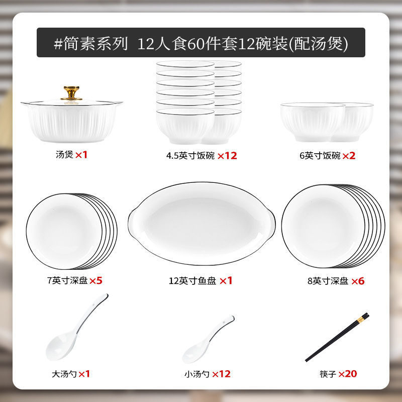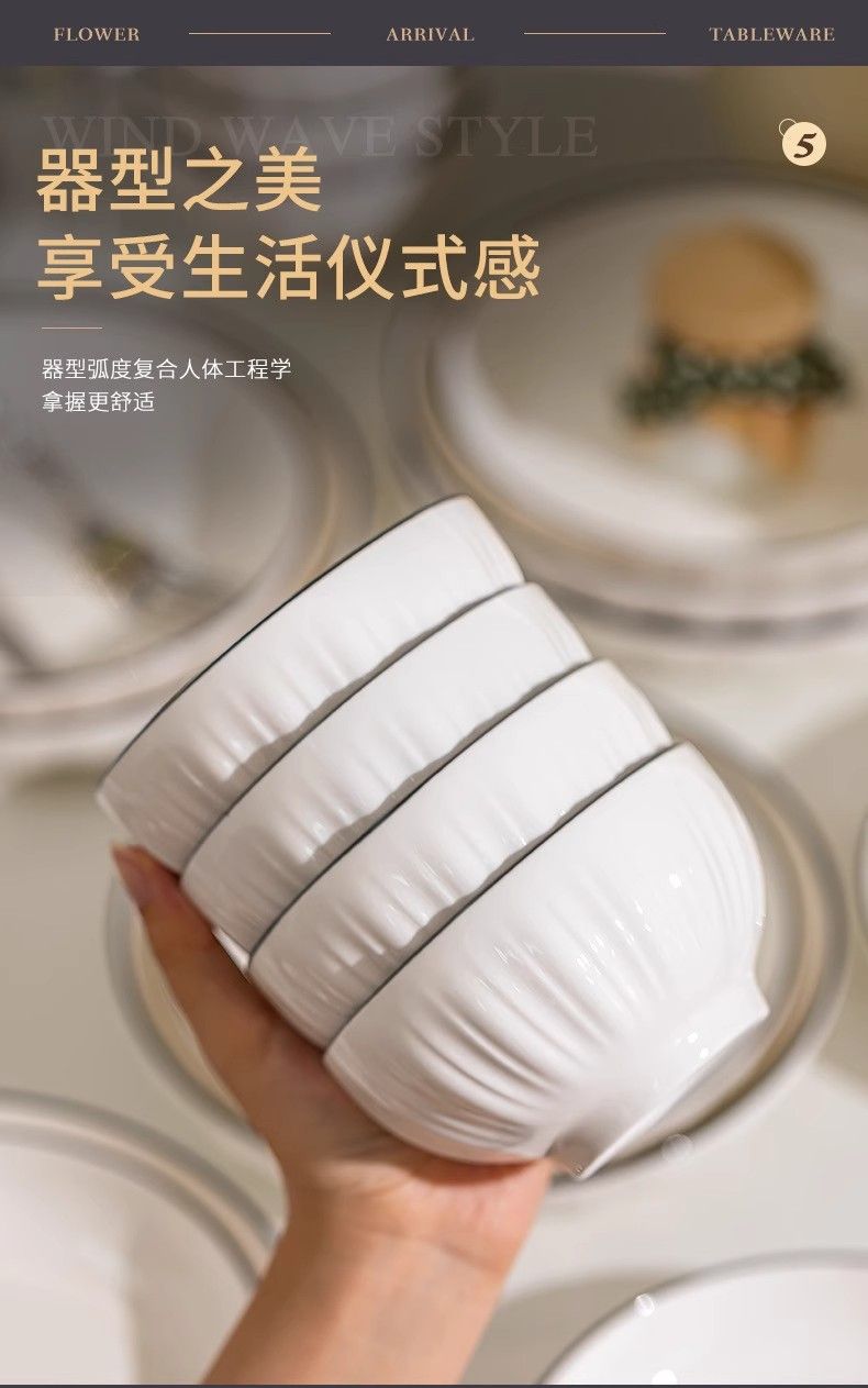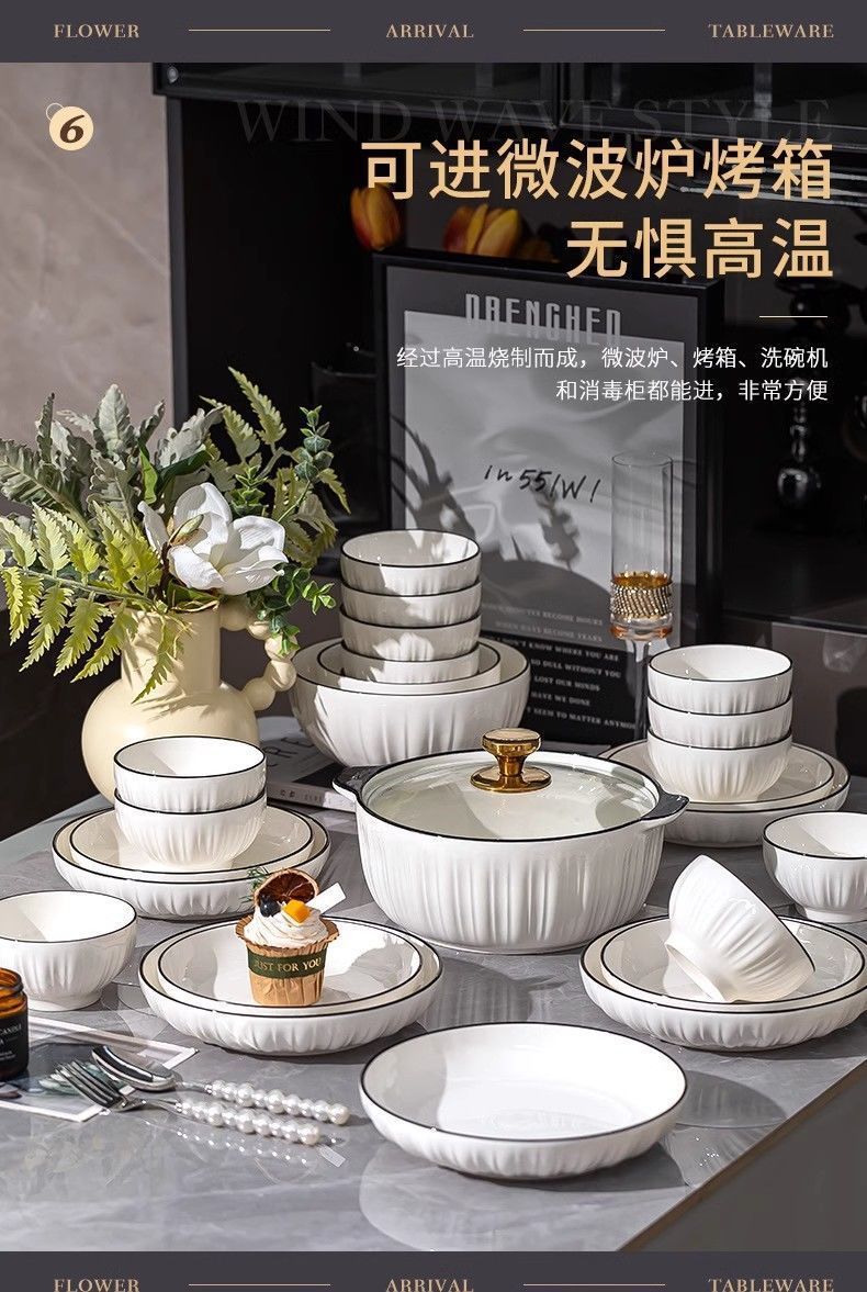 식기 순수한 흰색 세트 Jingdezhen 세라믹 Underglyze Color Ins 스타일 접시 전체 세트 높은 색상 가치 깔끔한 그릇 밥 그릇