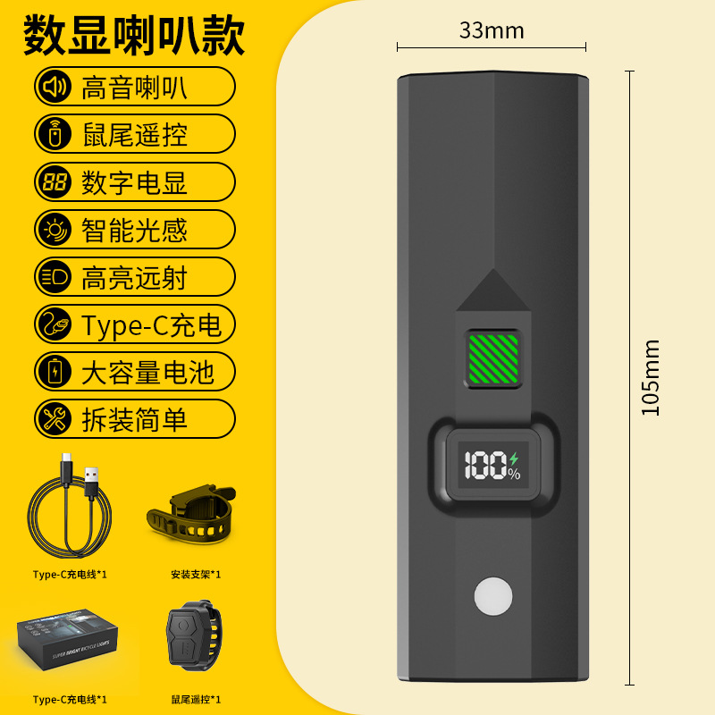 라이딩 라이트 디지털 전기 디스플레이 원격 제어 경적 강한 조명 프론트 라이트 라이트 센스 도로 자동차 led 풋 현기증 자전거 조명