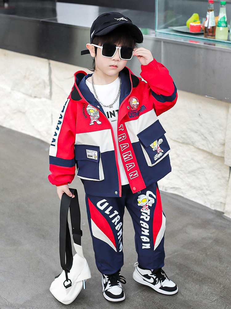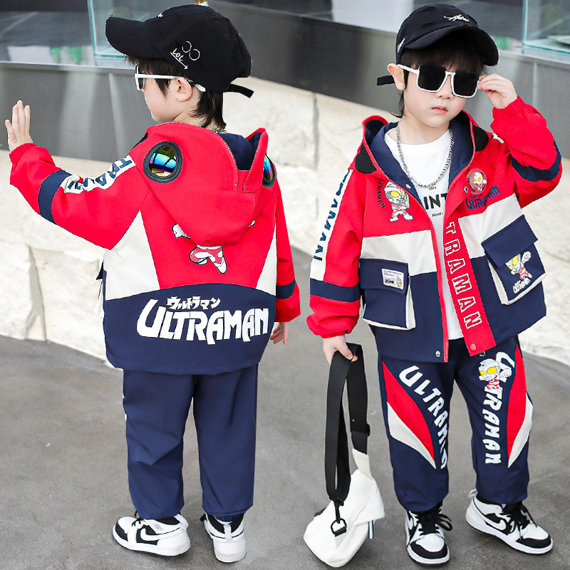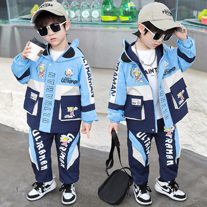 소년 세트 어린이 2025 새 봄 옷 아기 조명 후드 투피스 어린이 유행 울트라 맨 옷스토어 가기