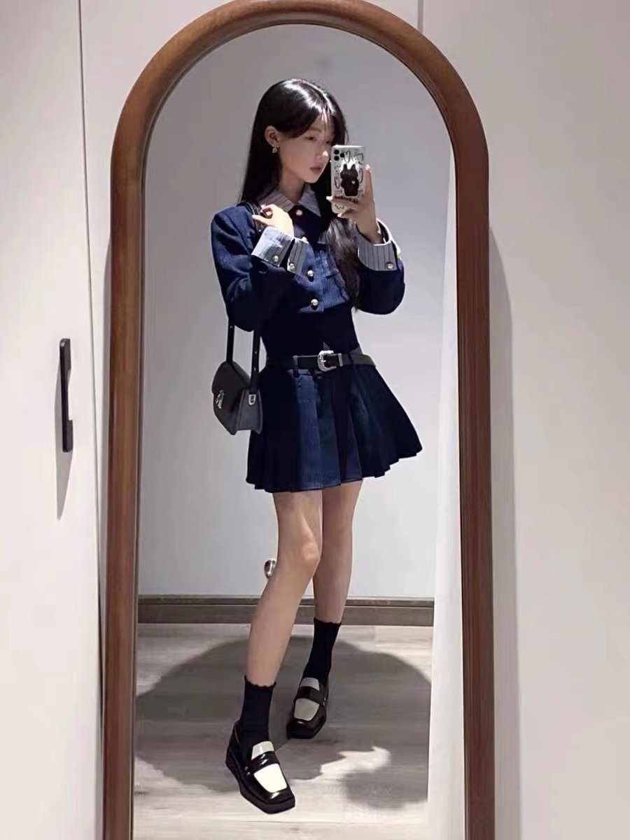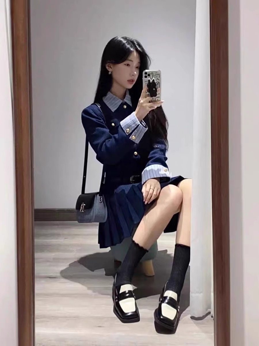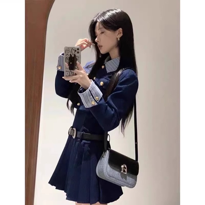 미국 아카데미 스타일 코트 원피스 원피스 원피스 여성 가을 겨울 원피스 부자 가족 천 골드 스타일 한국 드라마 투피스 세트 작은 향기로운 스타일스토어 가기