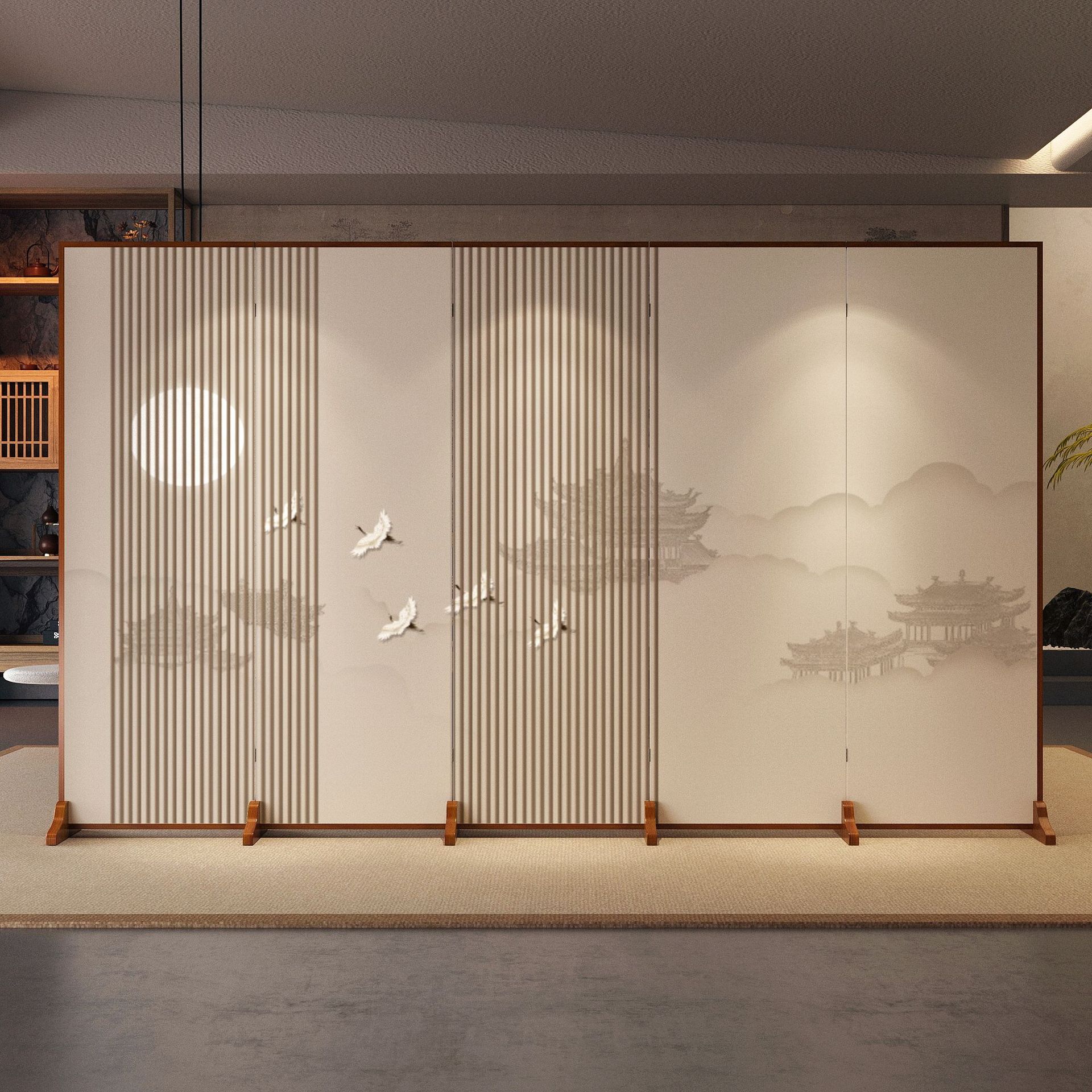 화면 파티션 새로운 중국 스타일 거실 입구 접는 모바일 간단한 직물 차폐 사무실 호텔 접이식 화면