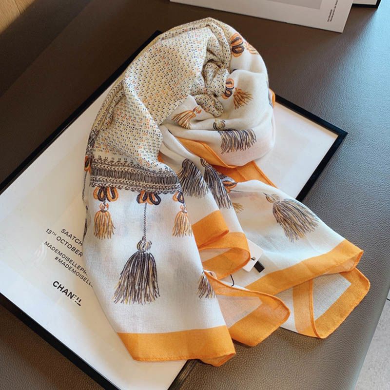 스카프 여성의 가을과 겨울 새로운 따뜻한 외부 서양식 한국 스타일 올매치 고급 부드러운 피부 친화적 인 면 린넨 대형 목도리 스카프 착용