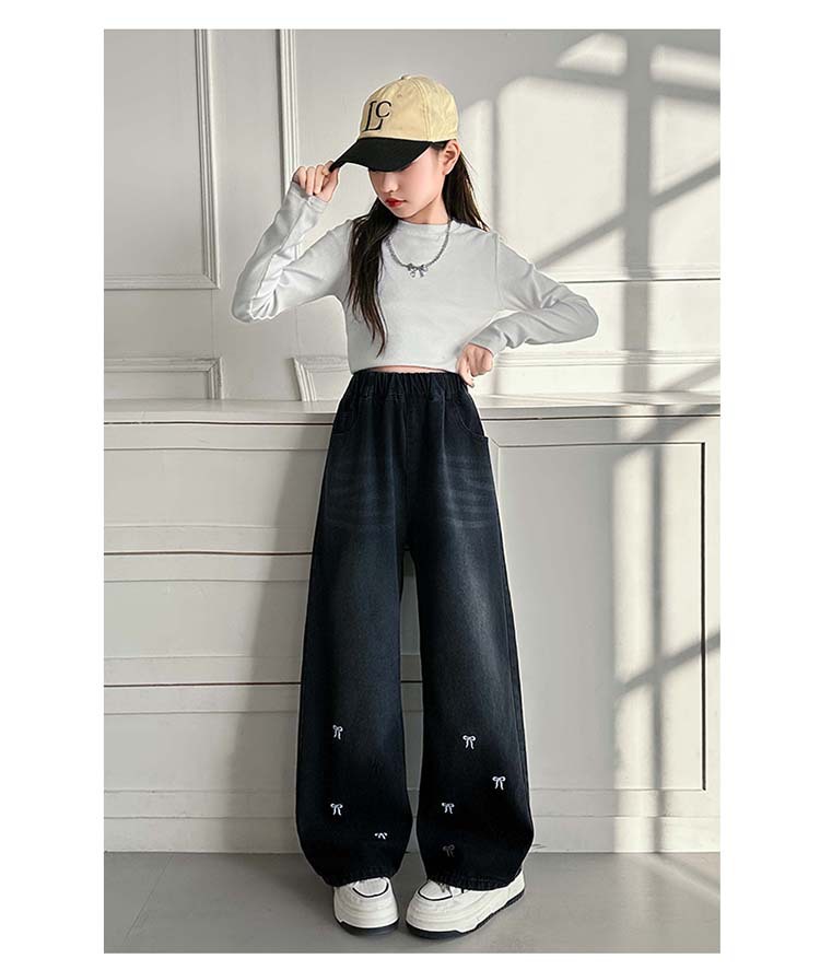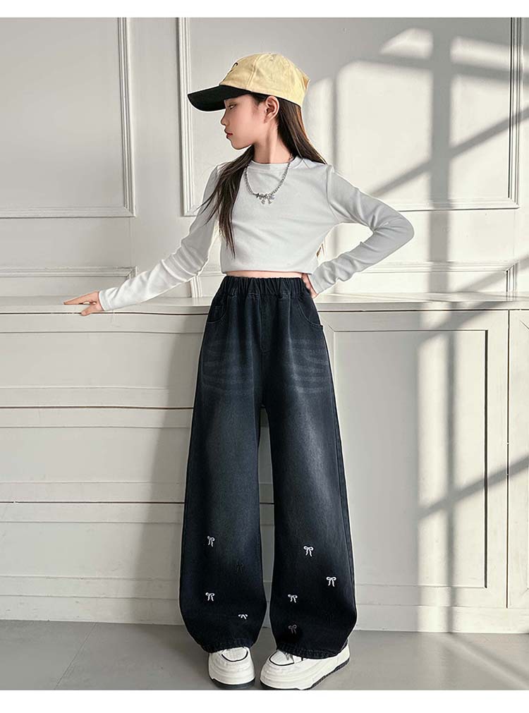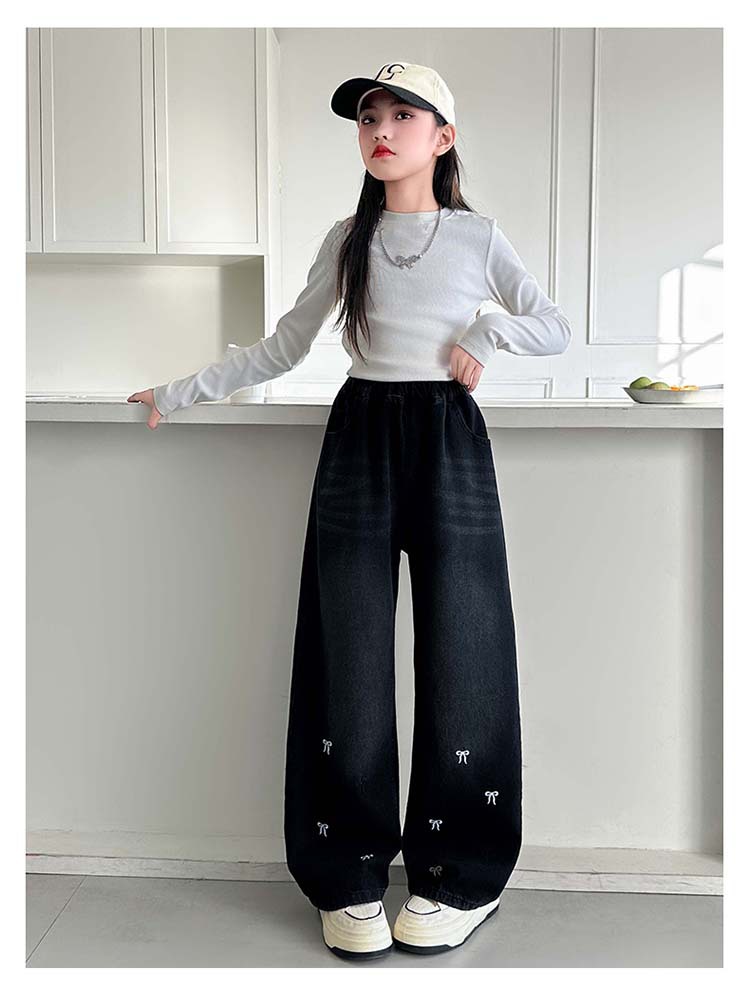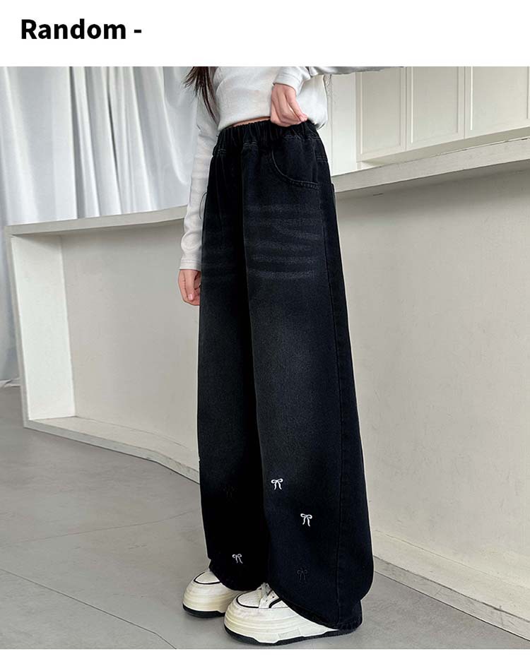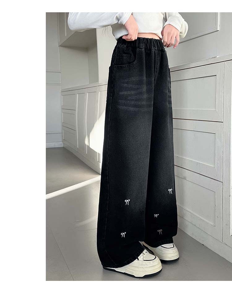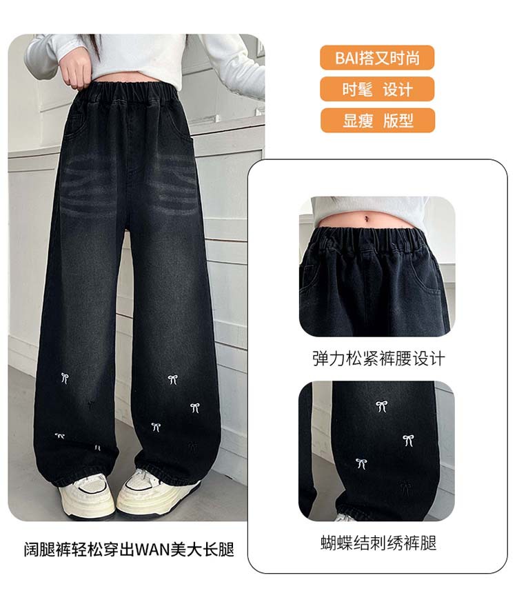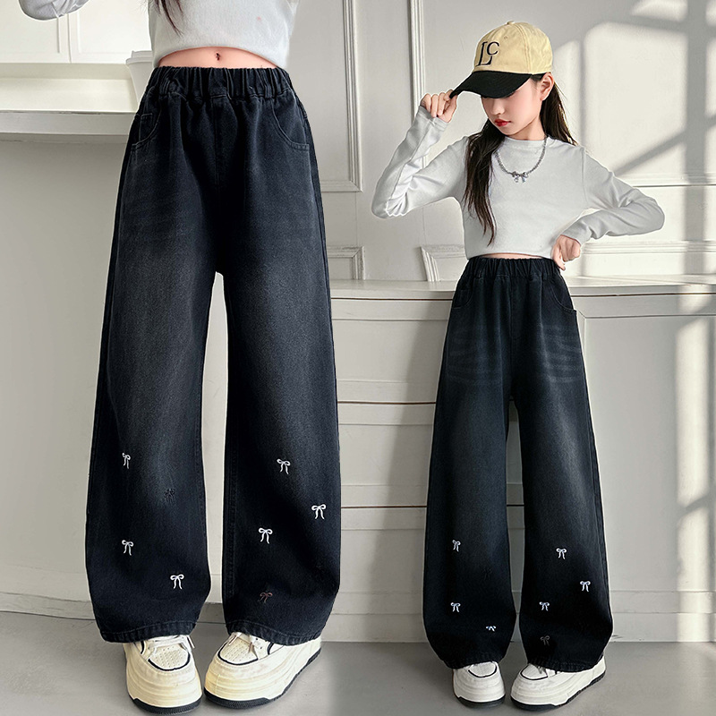 소녀의 넓은 다리 청바지 2024 새로운 가을 서양식 소녀의 가을 원피스 어린이 자수 활 바지스토어 가기