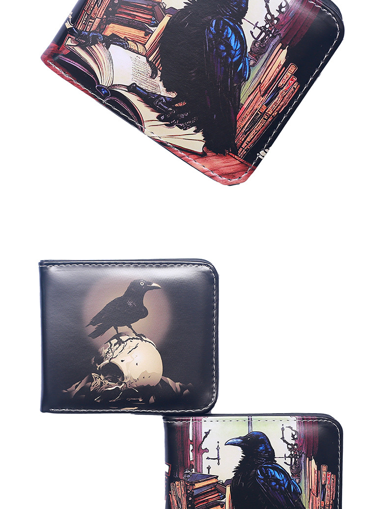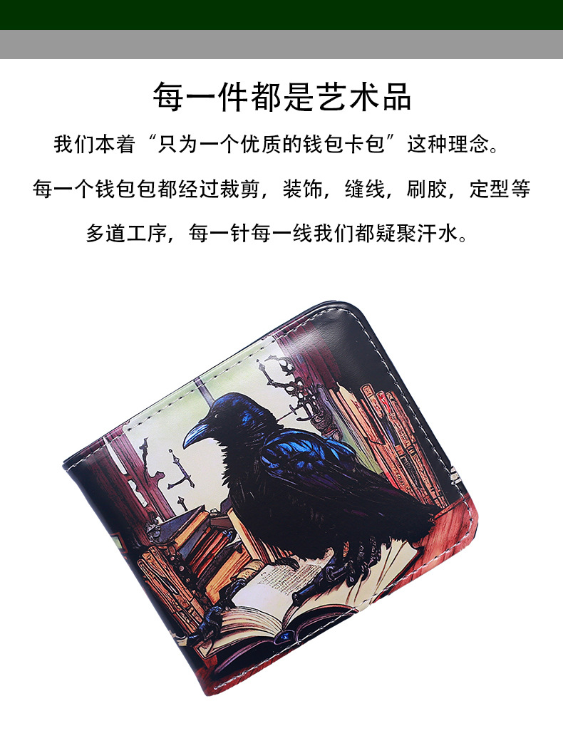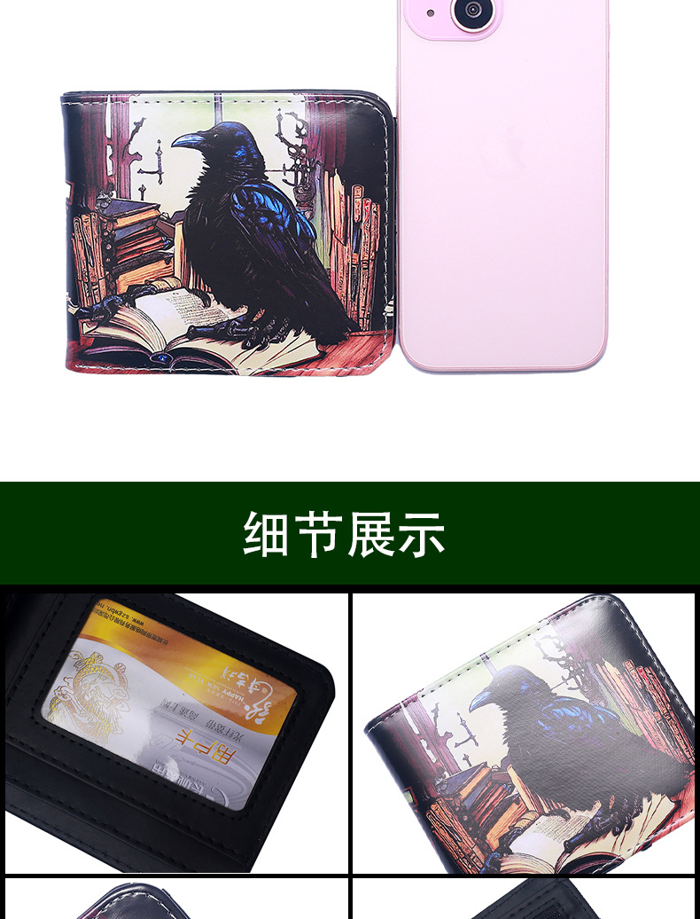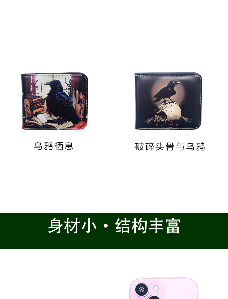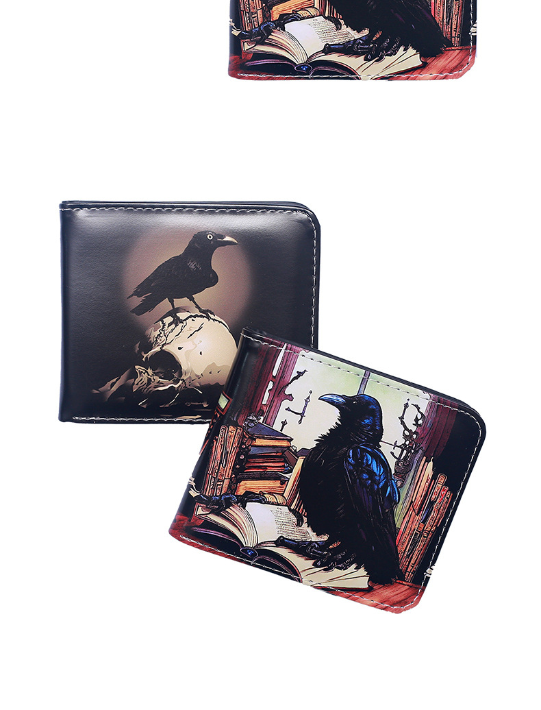 국경 간 새 지갑 까마귀 짧은 지퍼 지갑 유럽과 미국의 패턴 지갑 변경 지갑 재고 그림 D 시스템스토어 가기
