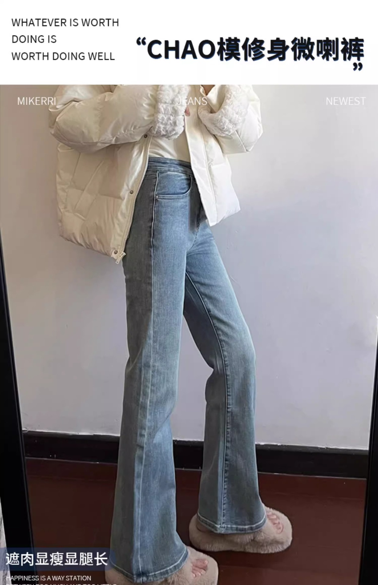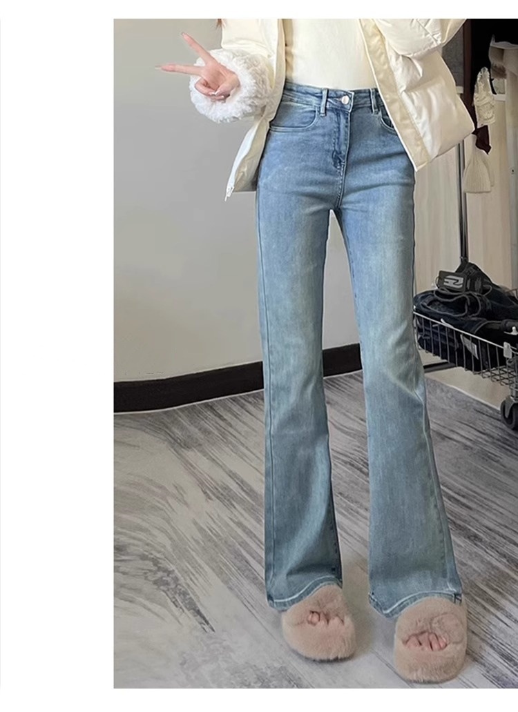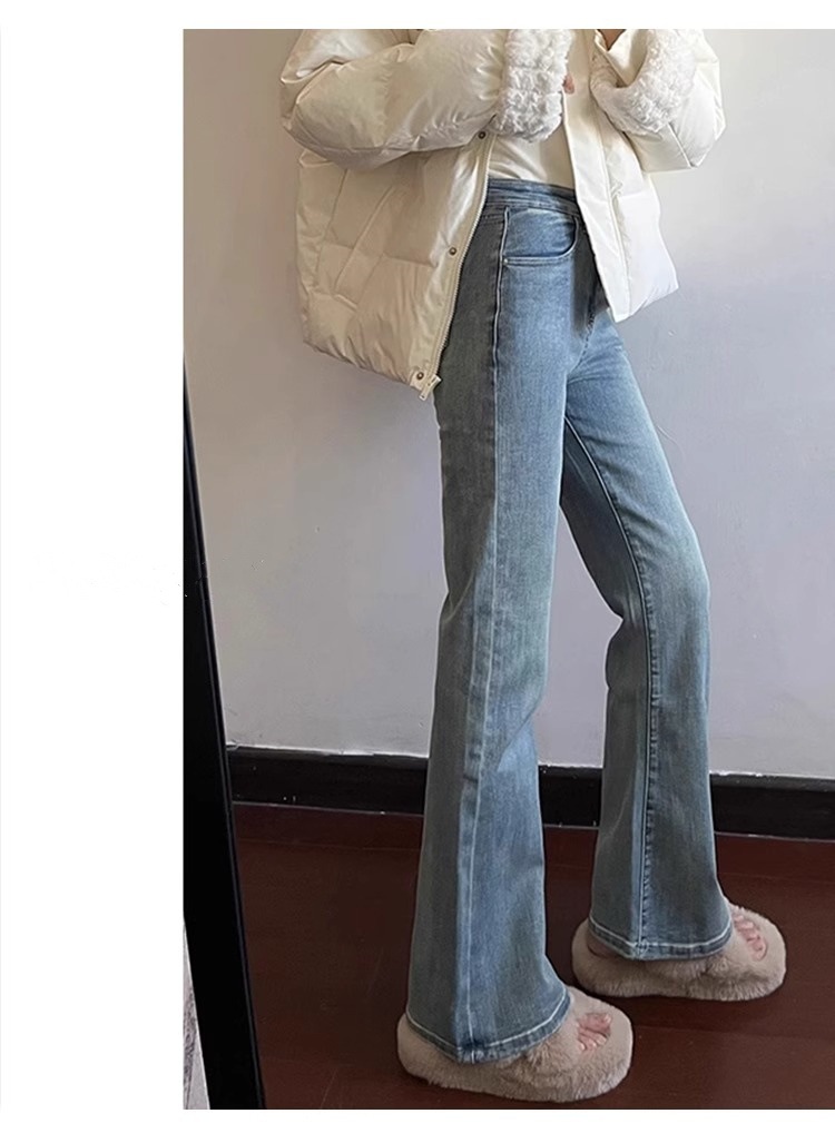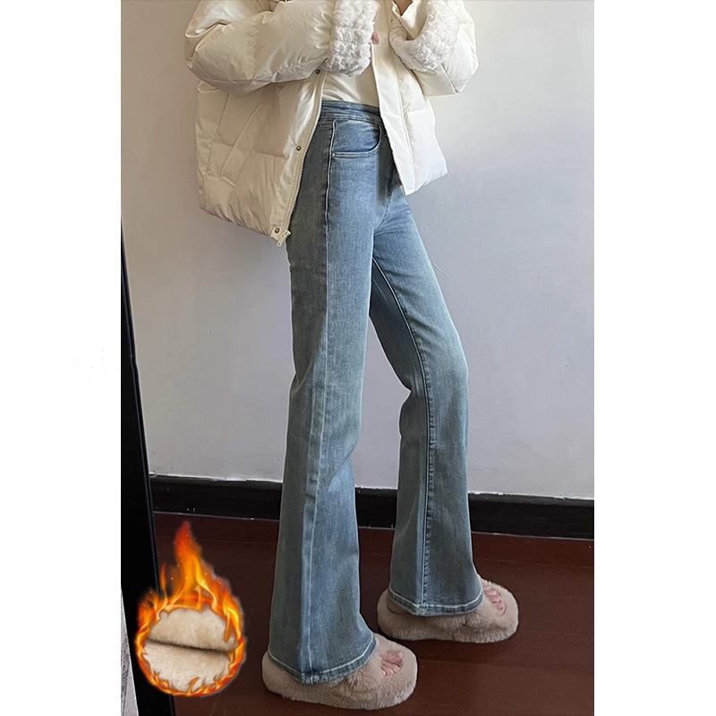 밝은 색 마이크로 라 청바지 여성의 겨울 플러스 사이즈 통통녀 높은 허리 슬리밍 스트레치 배 모양 경적 바지스토어 가기