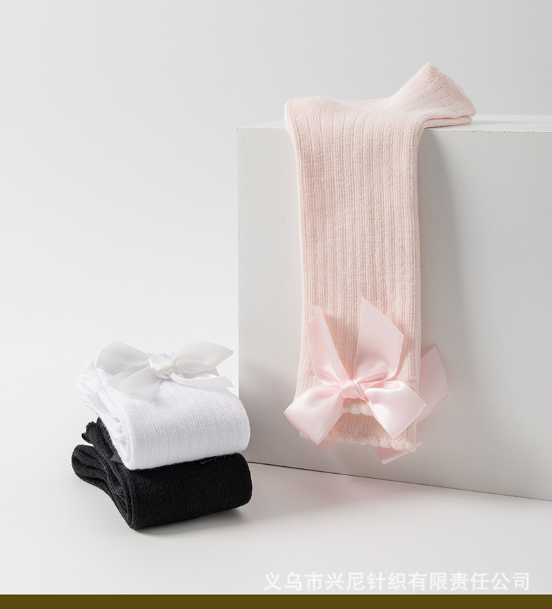 봄과 가을 아기 양말 아기 무릎-높은 큰 활 원피스 소녀 학생 스페인 공주 핑크 양말 풀림스토어 가기
