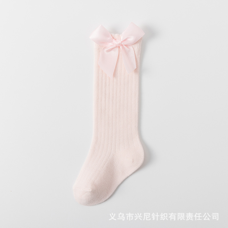 봄과 가을 아기 양말 아기 무릎-높은 큰 활 원피스 소녀 학생 스페인 공주 핑크 양말 풀림