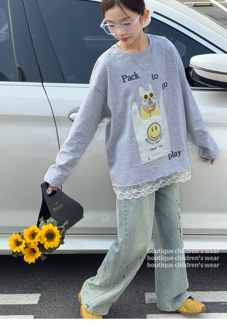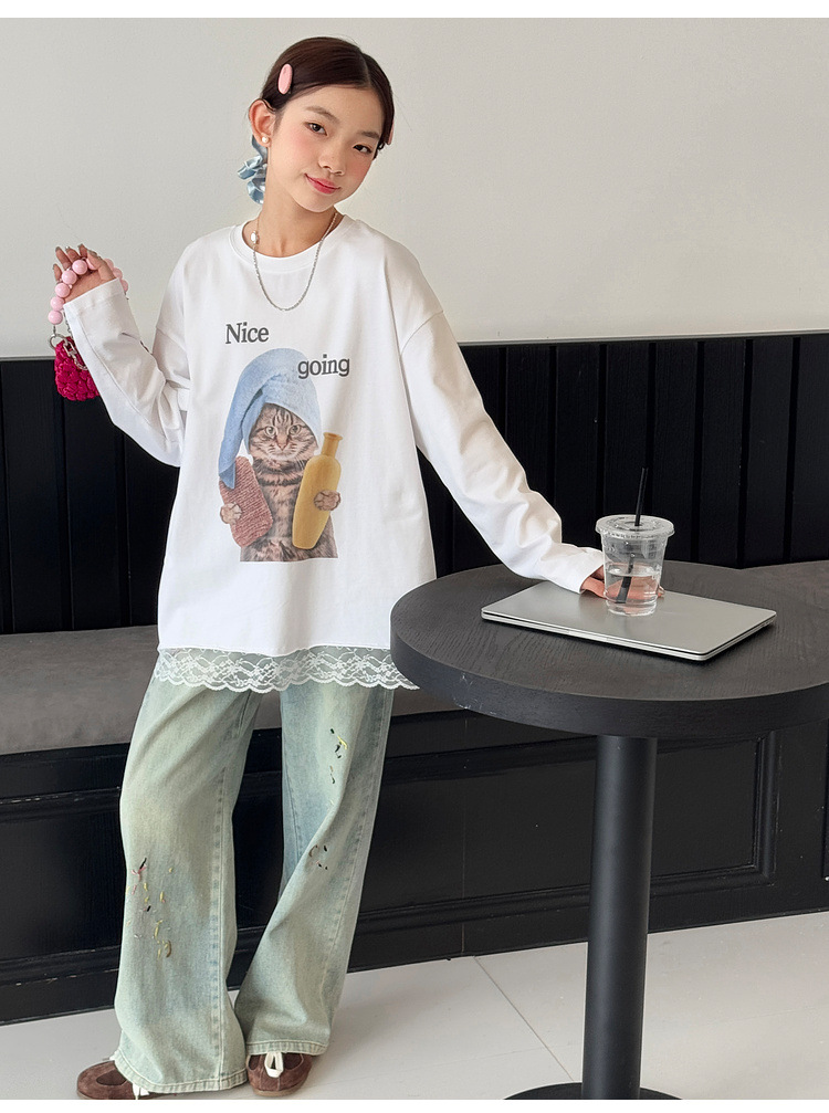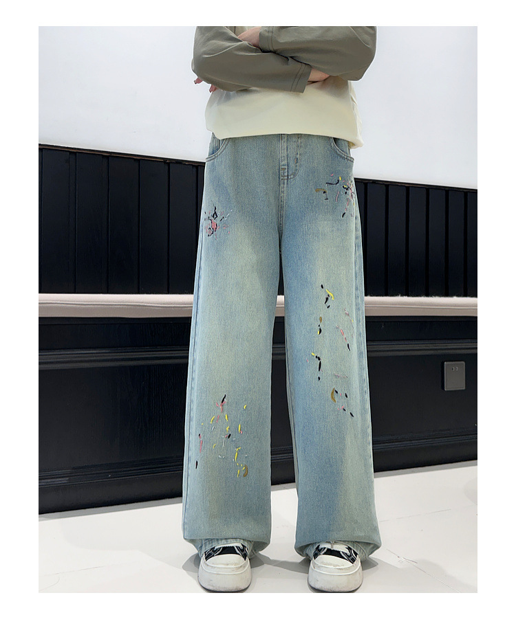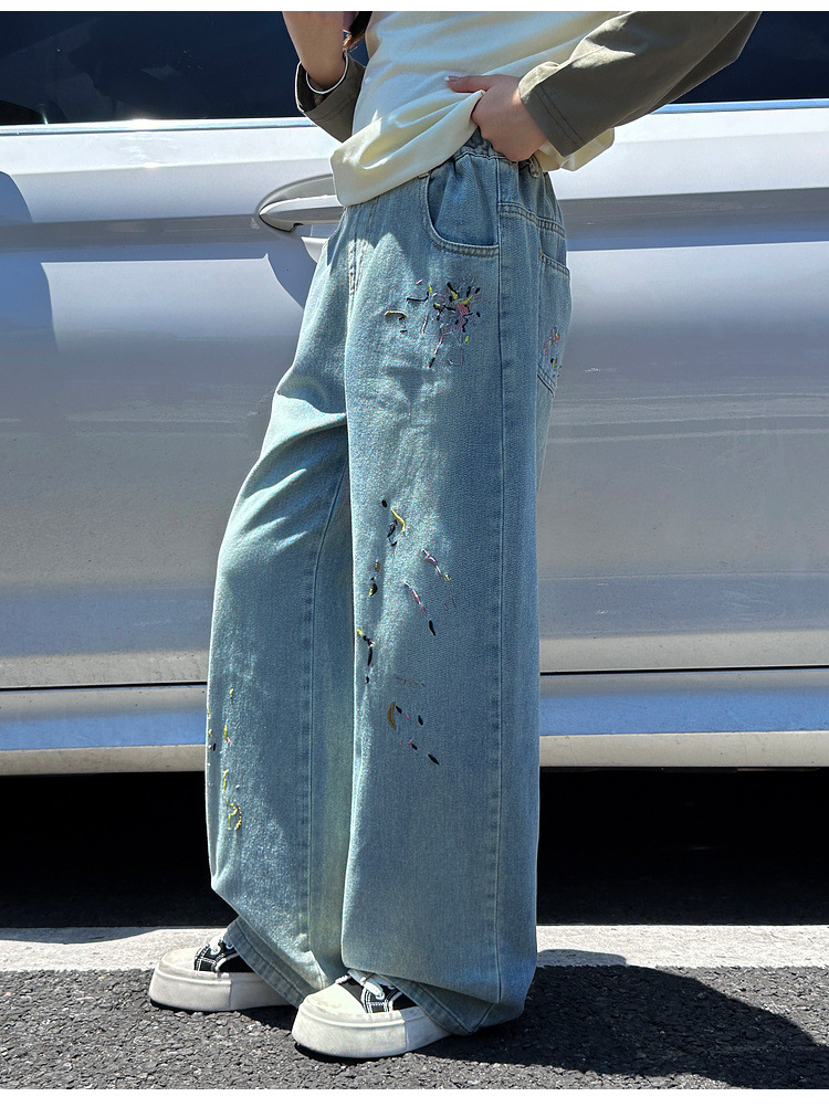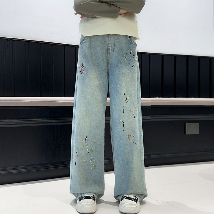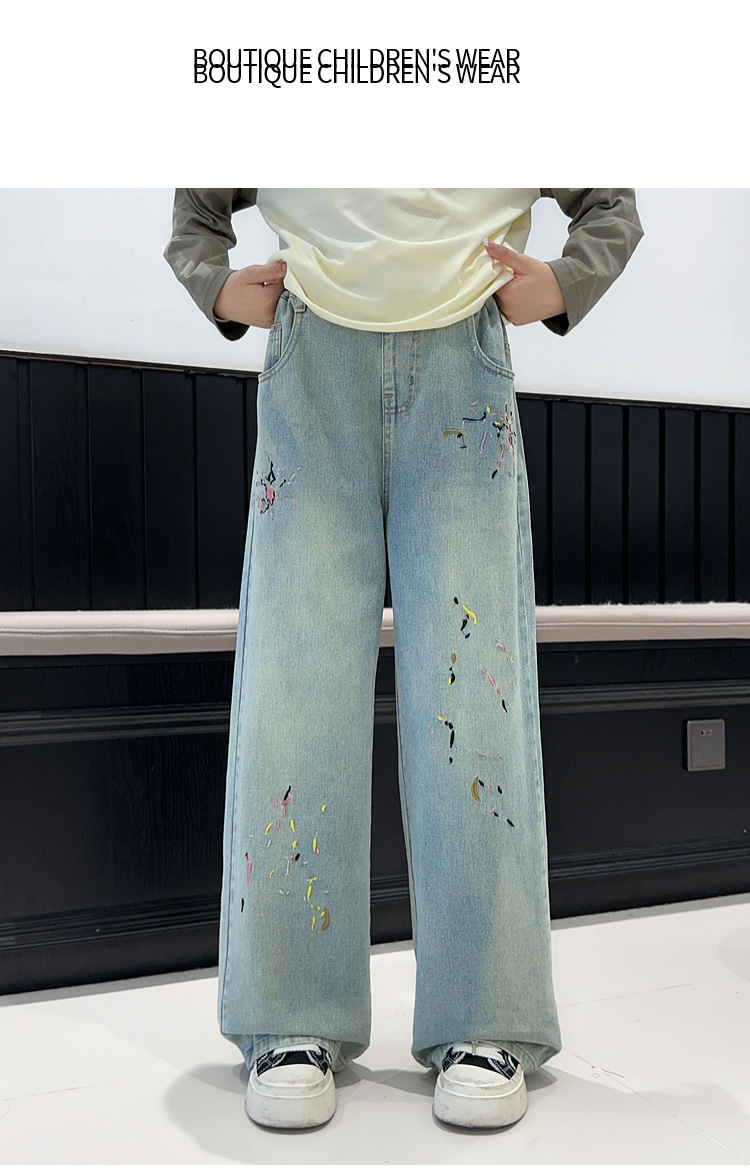 여자 청바지 가을 2025 새로운 어린이 느슨한 스트레이트 자수 워시 소프트 데님 캐주얼 바지 봄과 가을스토어 가기