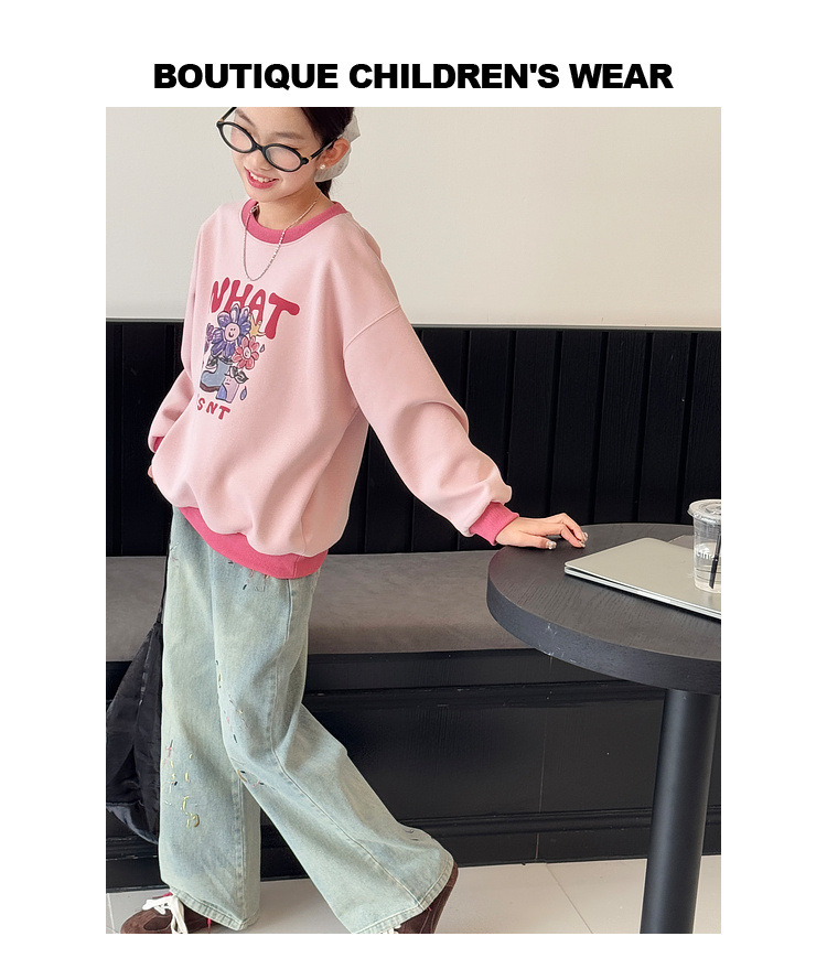 여자 청바지 가을 2025 새로운 어린이 느슨한 스트레이트 자수 워시 소프트 데님 캐주얼 바지 봄과 가을