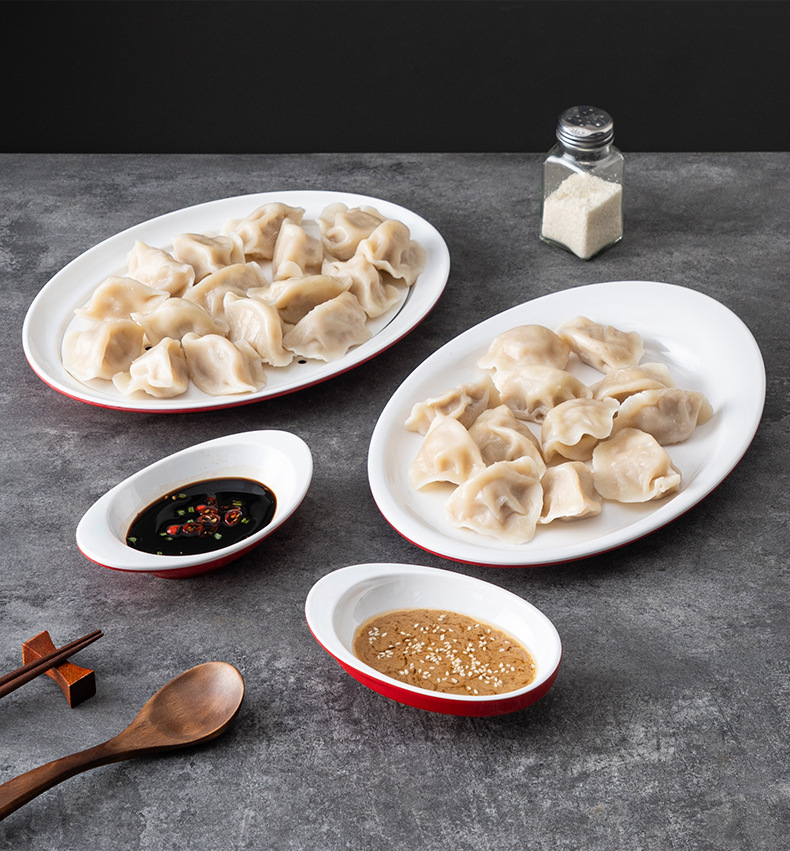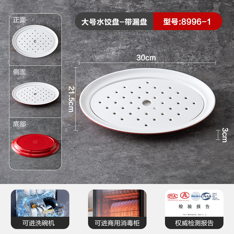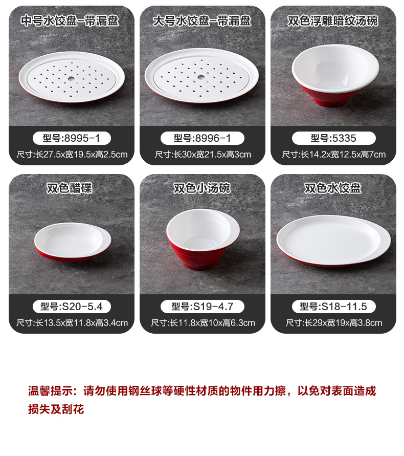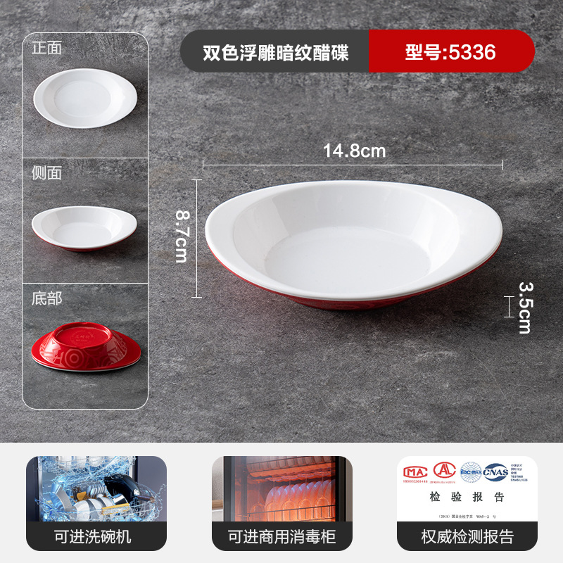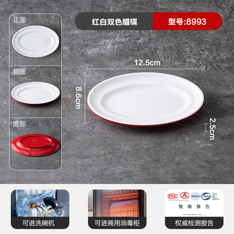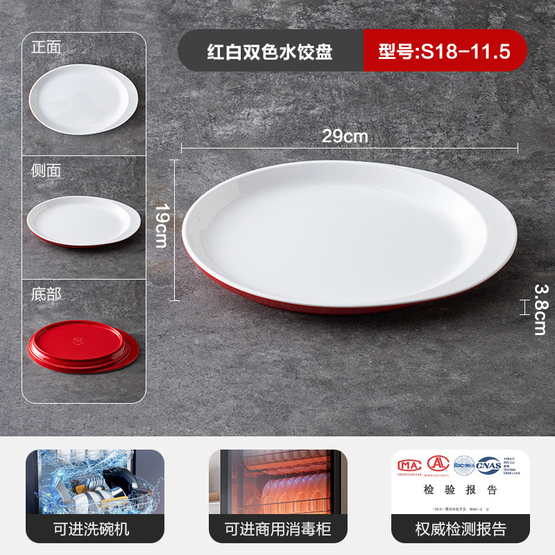 멜라민 상업용 식기 레스토랑 만두 플레이트 더블 레이어 대형 만두 플레이트 드라이 낚시 특수 플레이트 빨간색과 흰색 딥 식초 접시스토어 가기