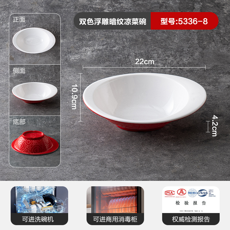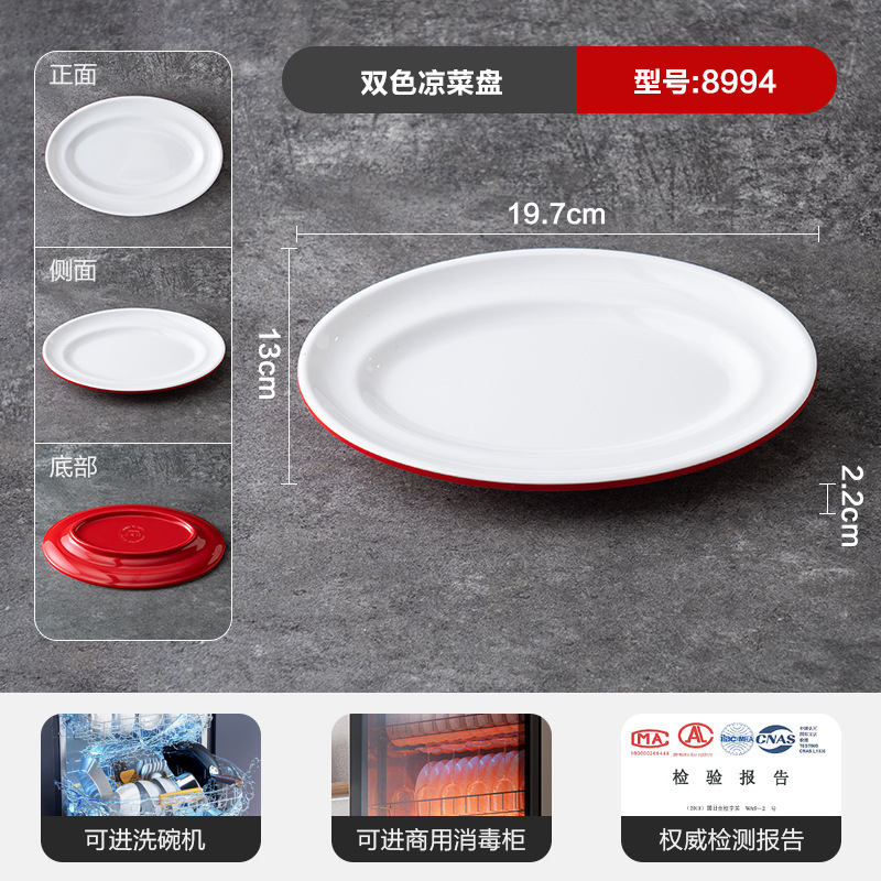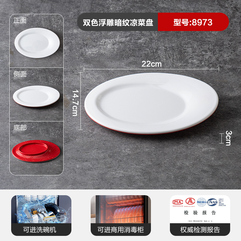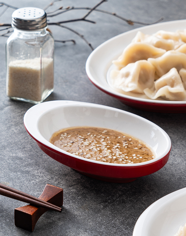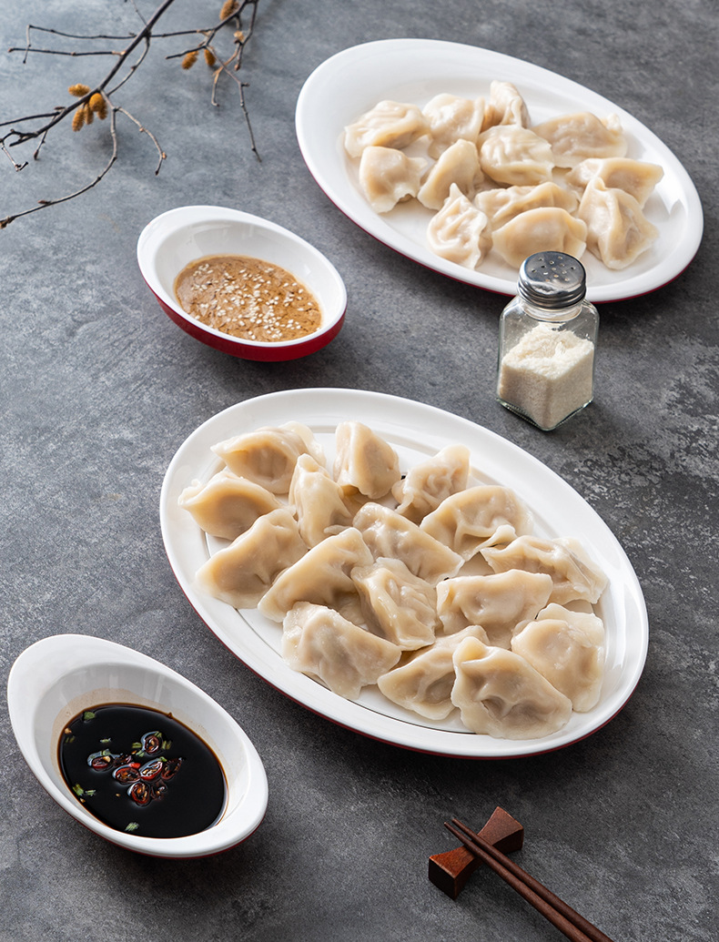 멜라민 상업용 식기 레스토랑 만두 플레이트 더블 레이어 대형 만두 플레이트 드라이 낚시 특수 플레이트 빨간색과 흰색 딥 식초 접시스토어 가기