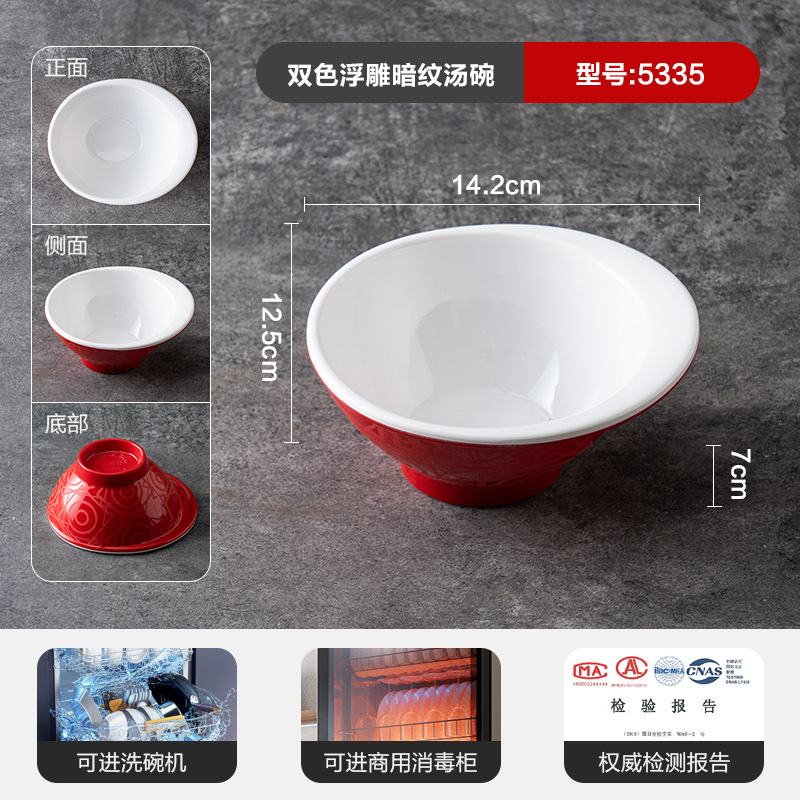 • 엠보싱 처리된 빨간색과 흰색 수프 그릇 5335