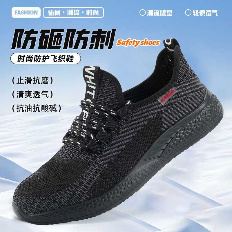 2025 플라이 우븐 노동 보호 신발, 메쉬 통기성, 경량 안전 보호 신발, 미끄럼 방지, 내마모성, 스매싱 방지 및 펑크 방지 신발스토어 가기