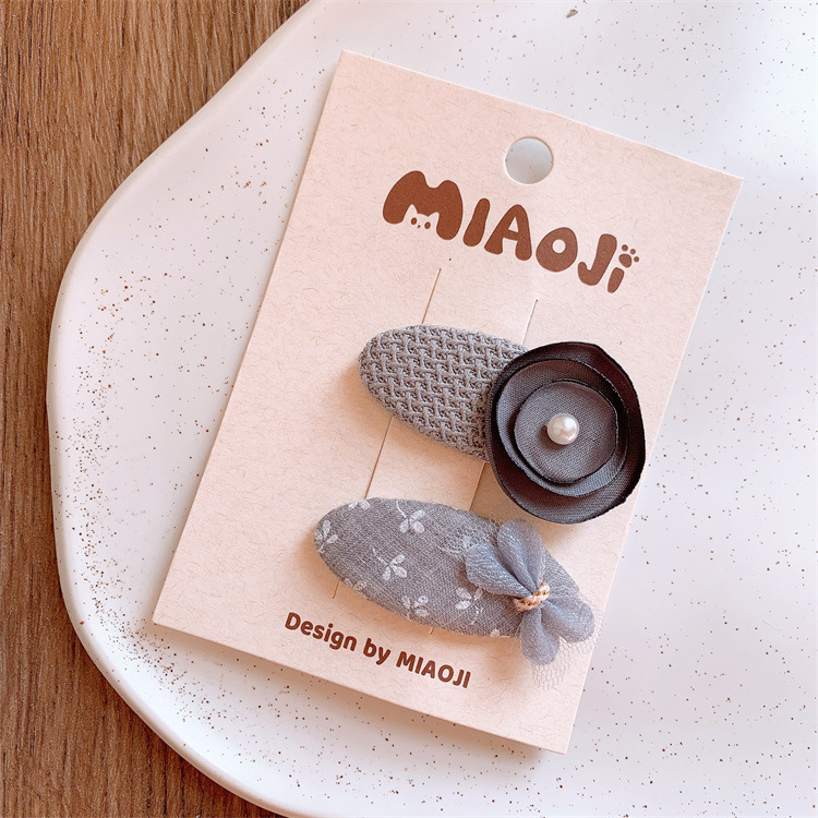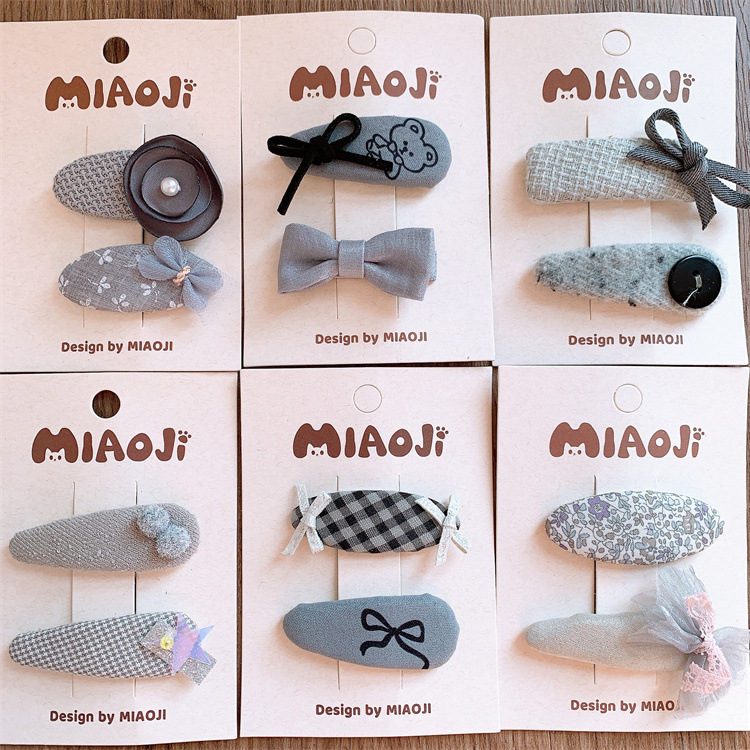 새로운 어린이 달콤한 신선한 회색 활 머리핀 여학생 원단 BB 헤어핀 깨진 머리 BB 클립 헤어핀스토어 가기