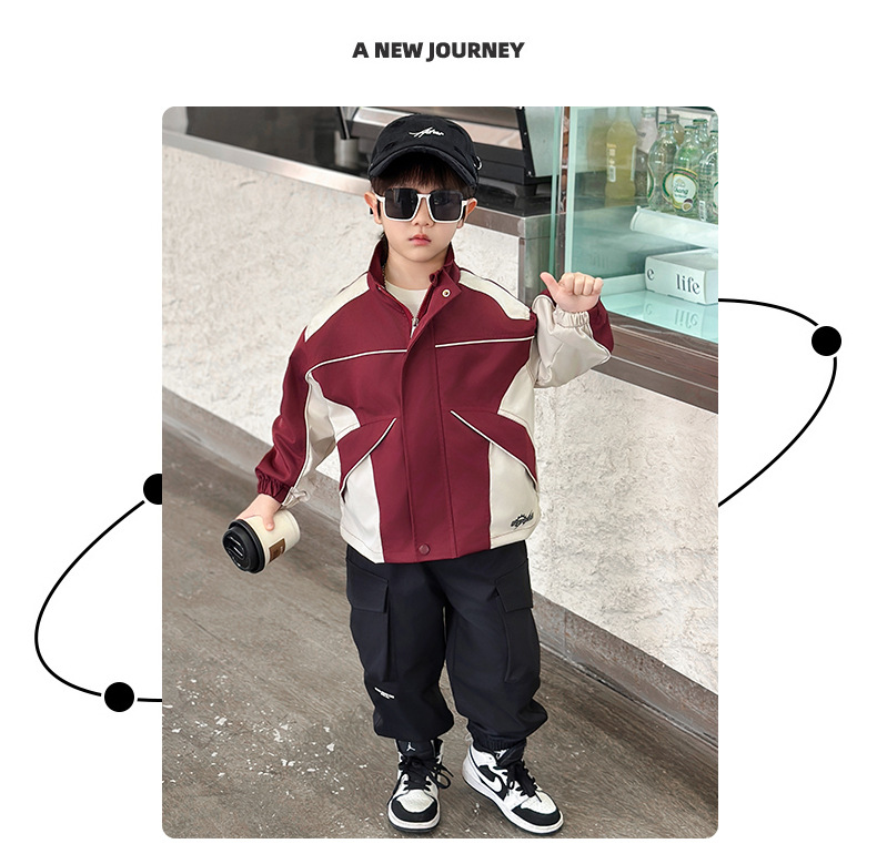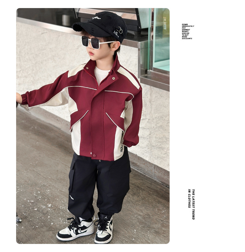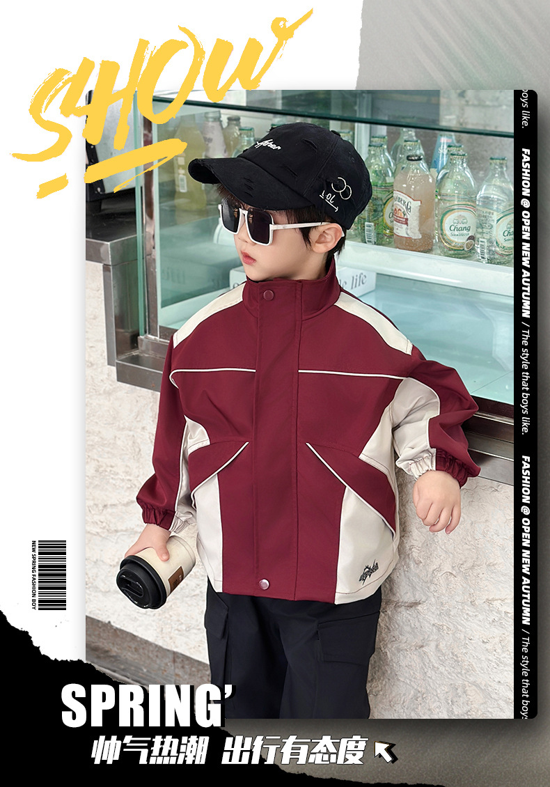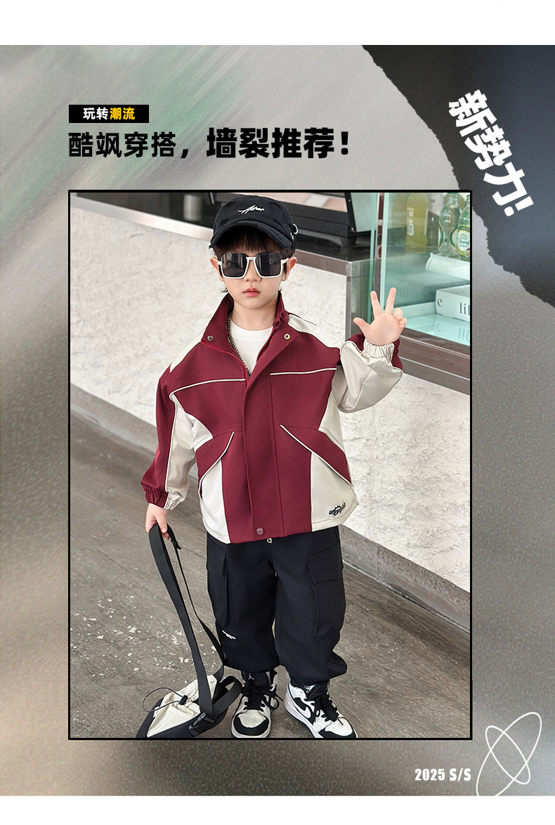 어린이 카드 로프 컬러 매칭 코트 2025 봄 새로운 어린이 아기 그물 붉은 튀김 스트리트 코트 재킷 조수스토어 가기