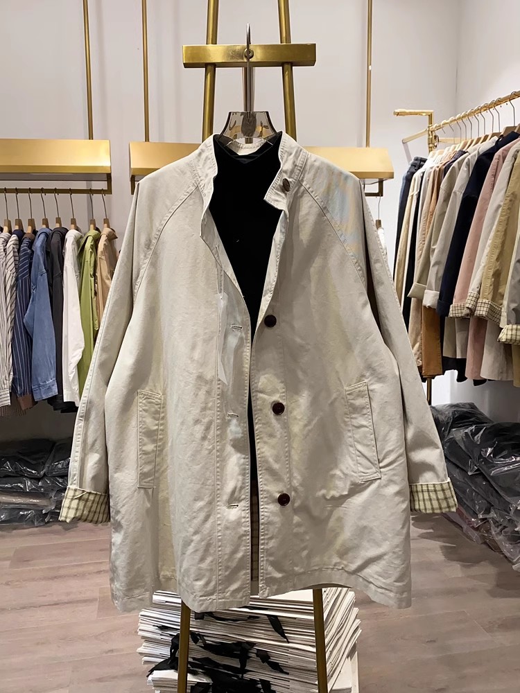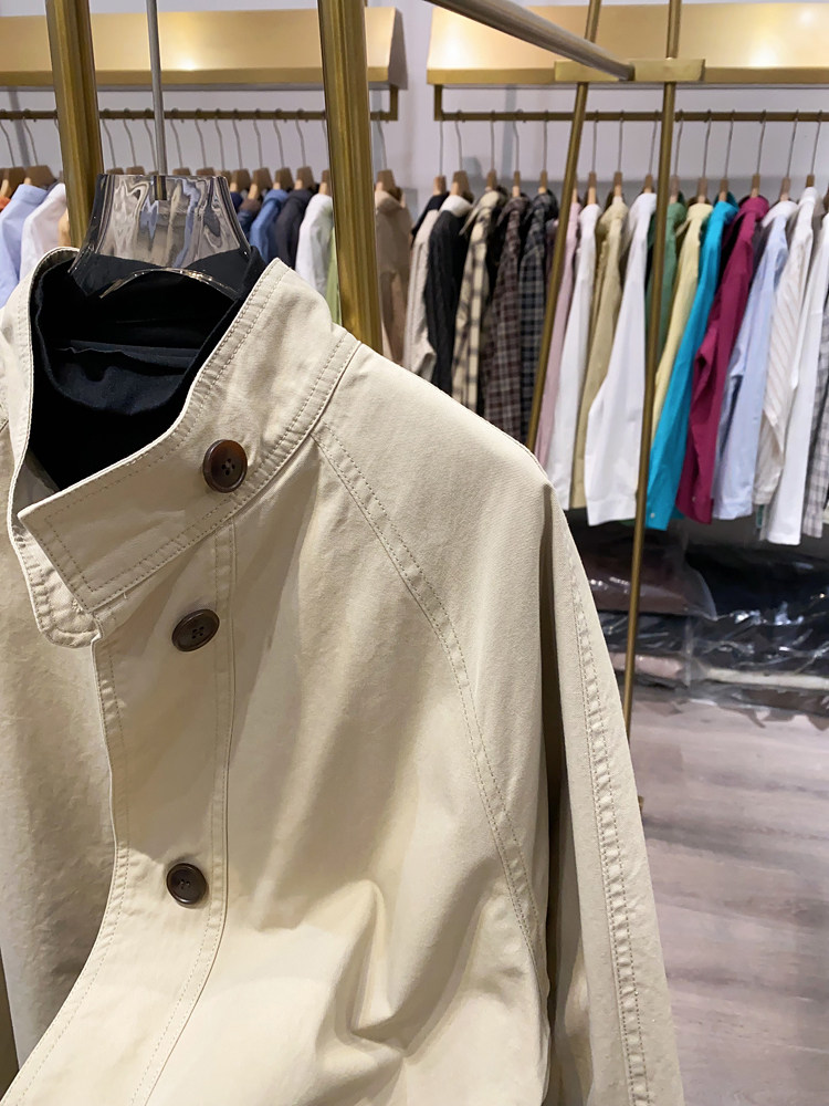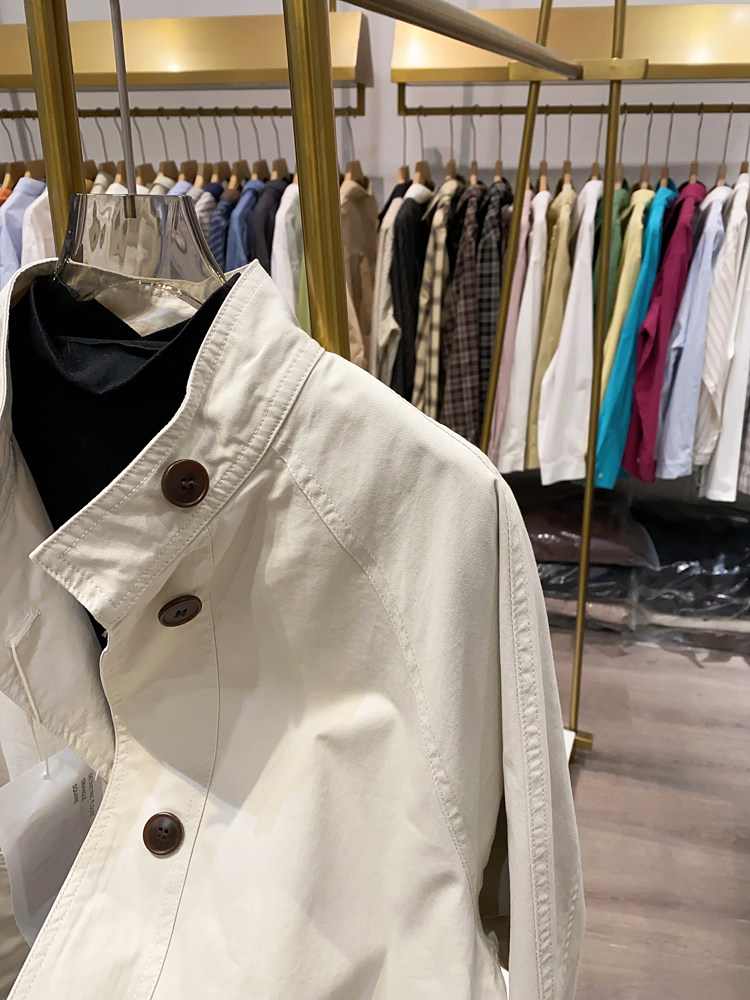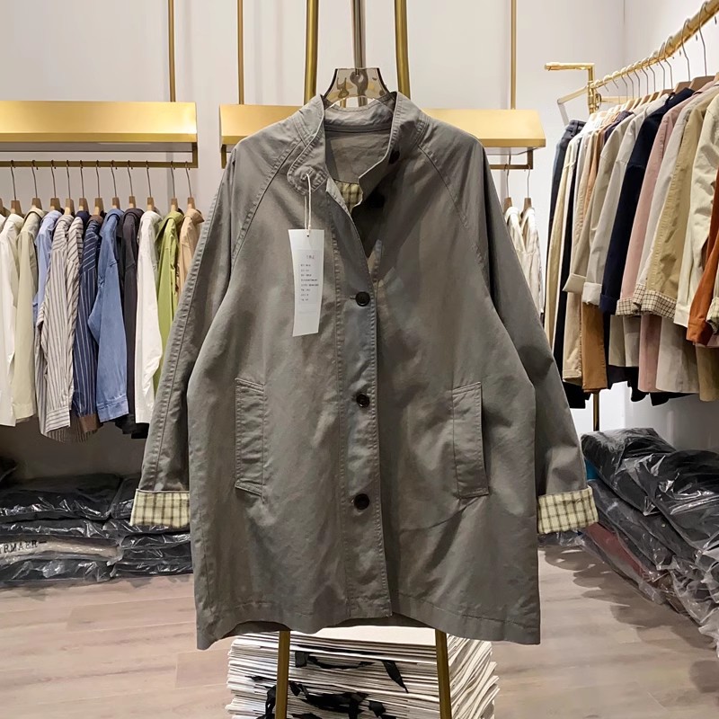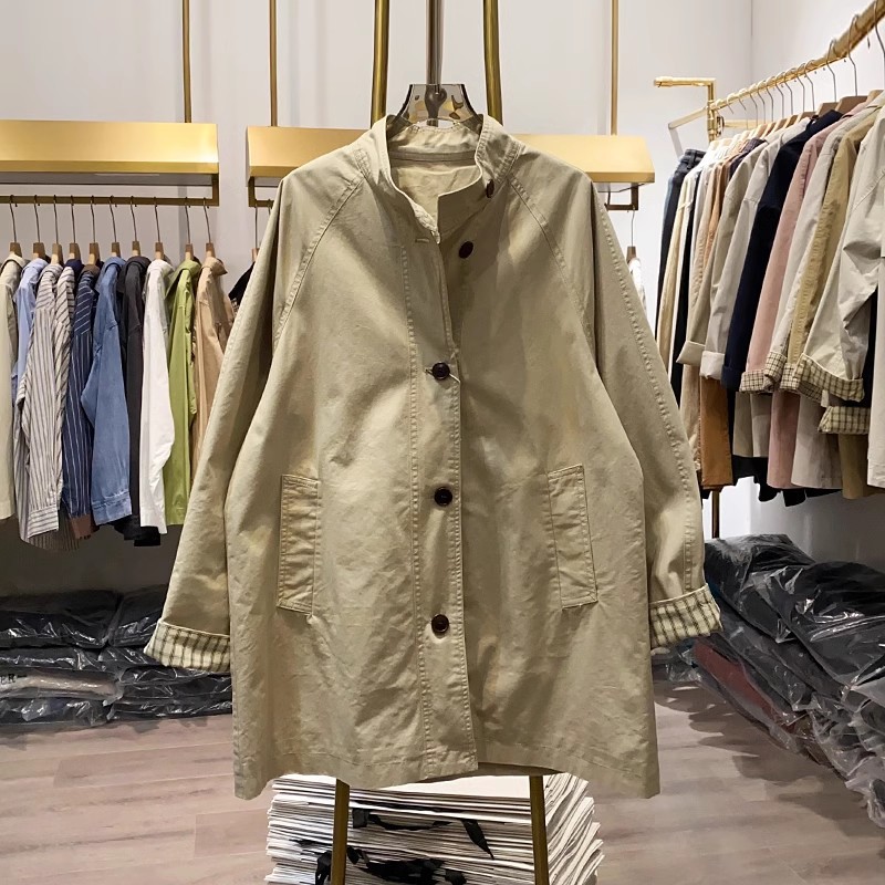 봄과 가을 여성 스탠드 칼라 단색 트렌치 코트 긴 소매 느슨한 2025 새로운 패션 콘트라스트 코트스토어 가기