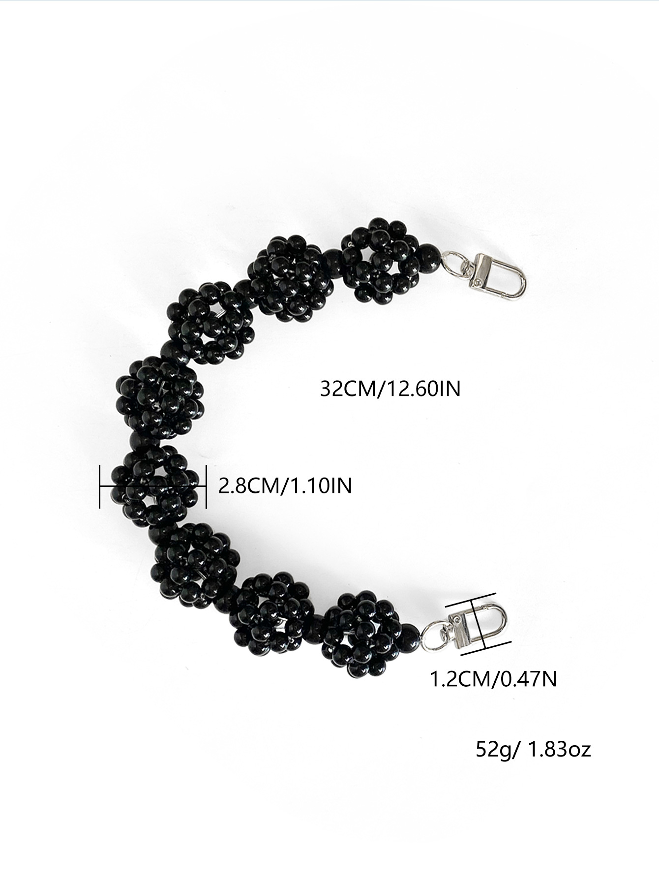 새로운 블랙 펄 볼 싱글 숄더 언더암 가방 라이트 럭셔리 바게트 가방 핸들 틈새 유행 교체 액세서리
