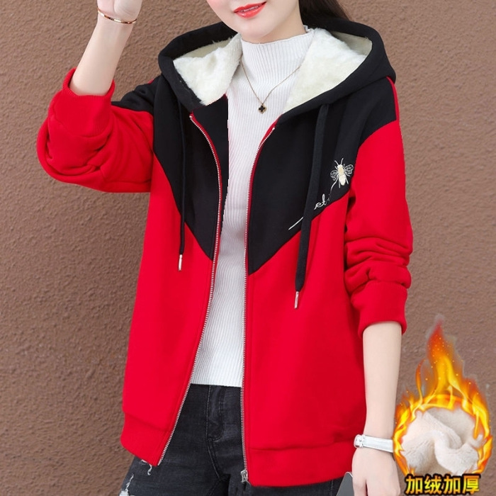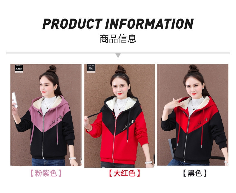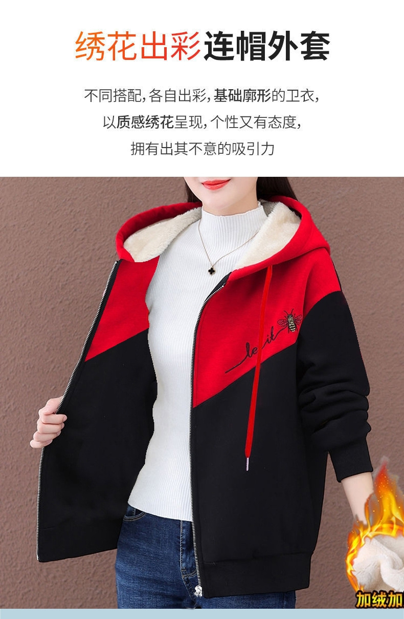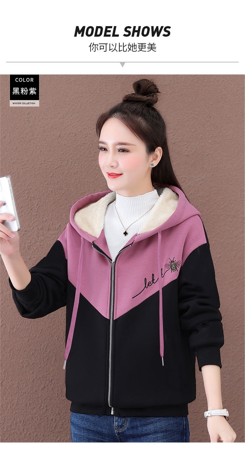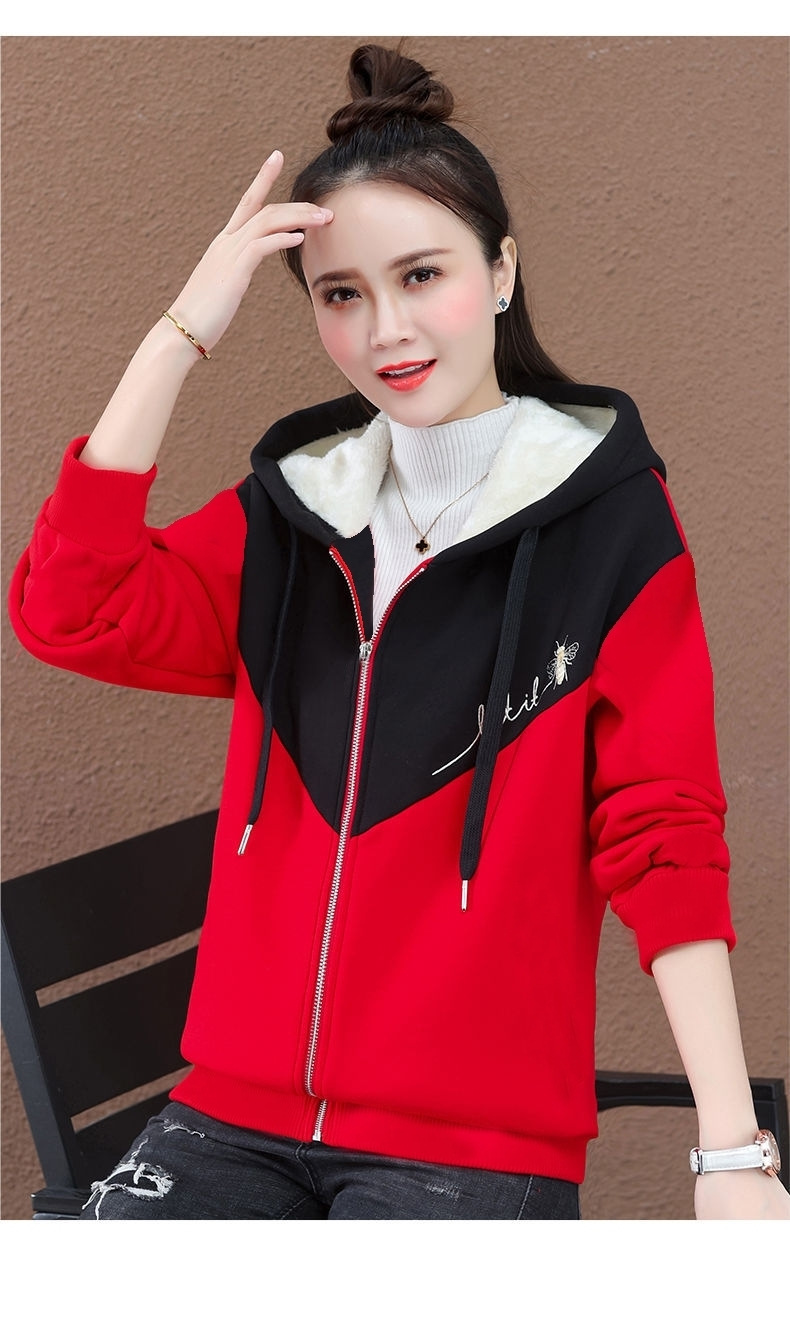기모 여성 스웨터 새로운 겨울 두꺼운 지퍼 카디건 컬러 매칭 후드 스포츠 재킷 패션 따뜻한 벨벳 스웨터