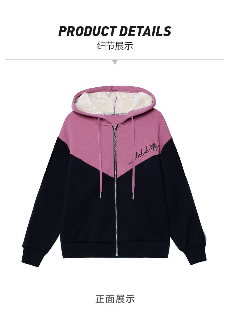 기모 여성 스웨터 새로운 겨울 두꺼운 지퍼 카디건 컬러 매칭 후드 스포츠 재킷 패션 따뜻한 벨벳 스웨터스토어 가기
