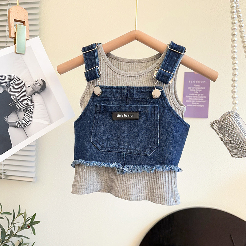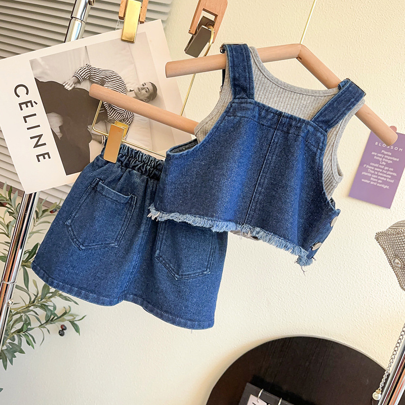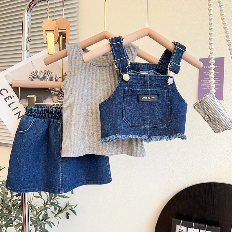 여자 데님 세트 여름 어린이 빅 티셔츠 스커트 여성 아기 한국 캐주얼 3 피스 국경 세트스토어 가기