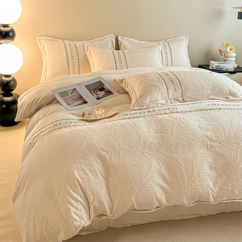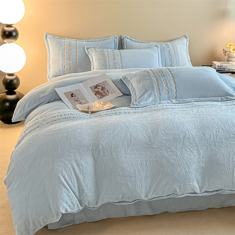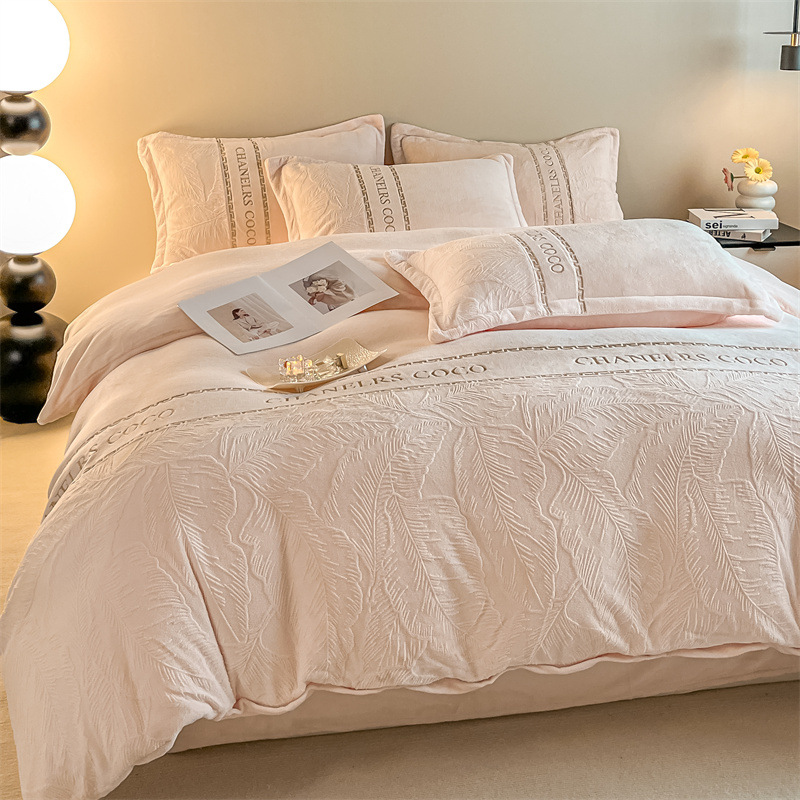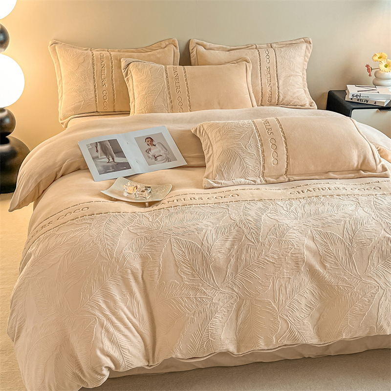 두꺼운 따뜻한 우유 벨벳 4 피스 세트 겨울 산호 벨벳 침대 모자 4 피스 세트 겨울 기모 침구