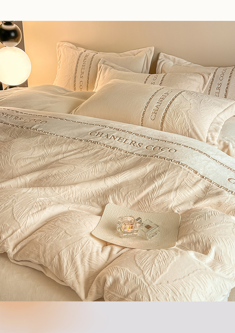 두꺼운 따뜻한 우유 벨벳 4 피스 세트 겨울 산호 벨벳 침대 모자 4 피스 세트 겨울 기모 침구스토어 가기