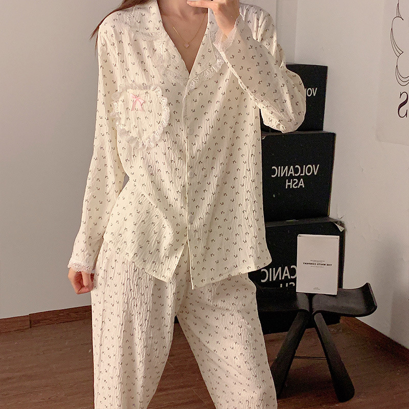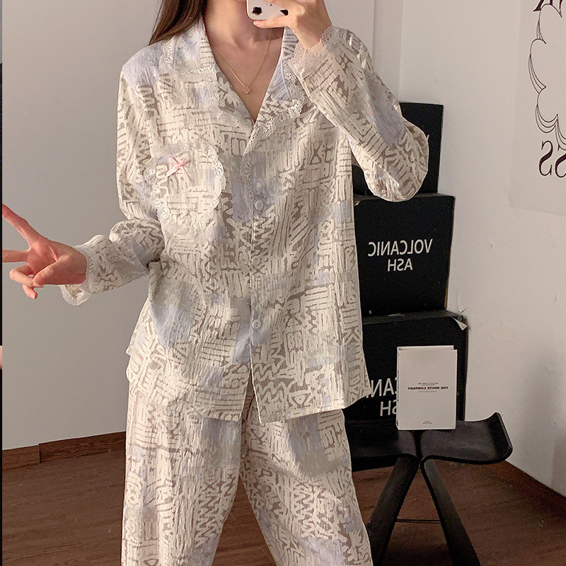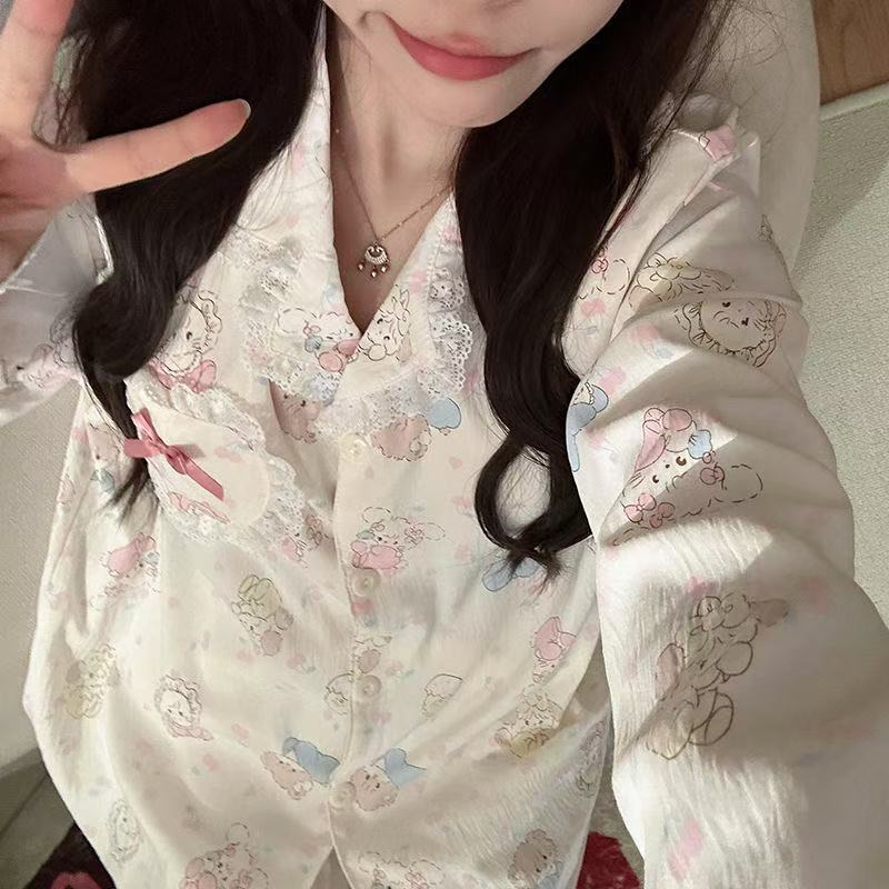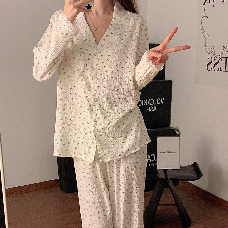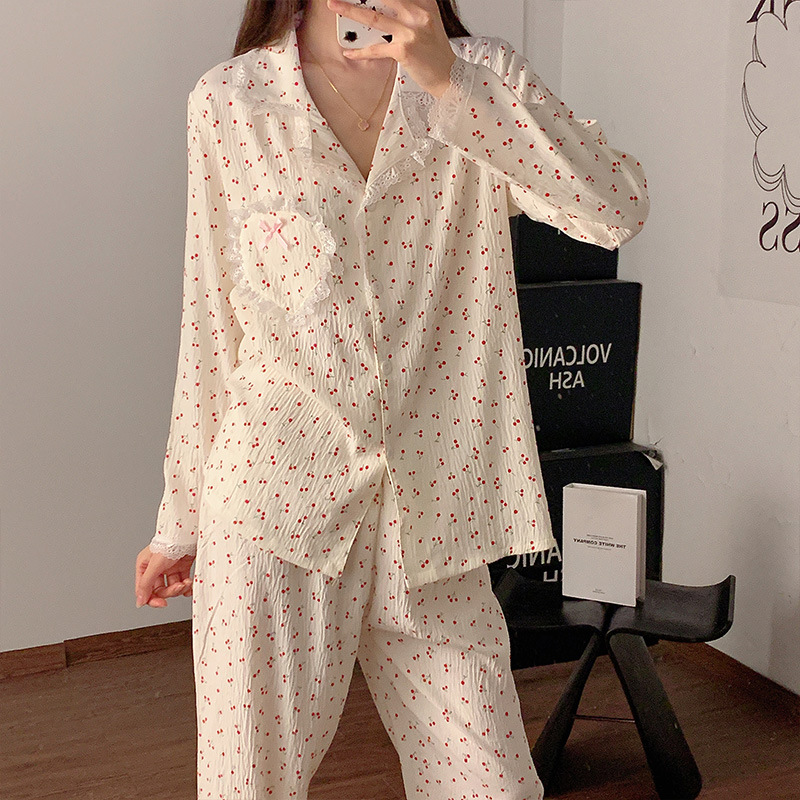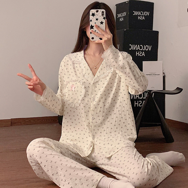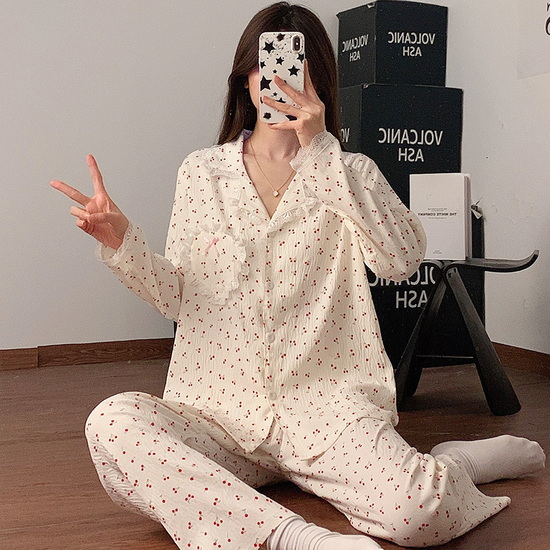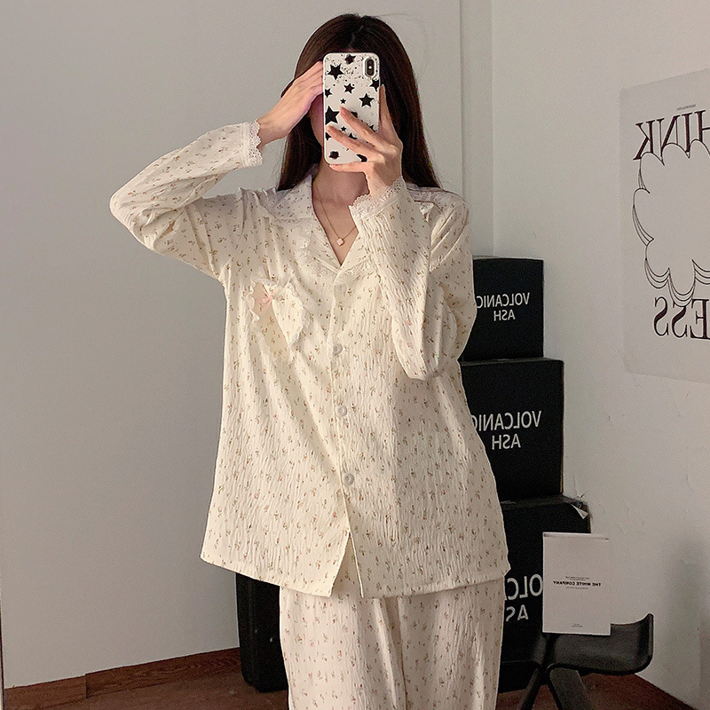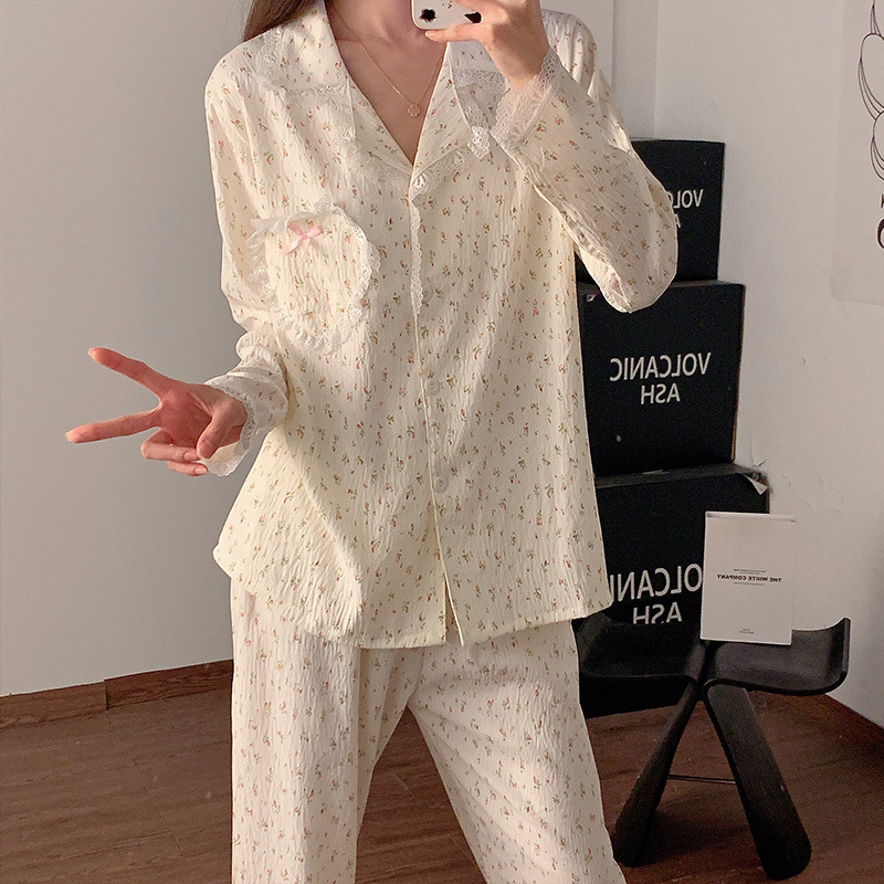 도매 세트 일본식 꽃무늬 잠옷 여성용 봄 가을 신상 구름면 귀여운 긴팔 긴바지 홈웨어 세트스토어 가기