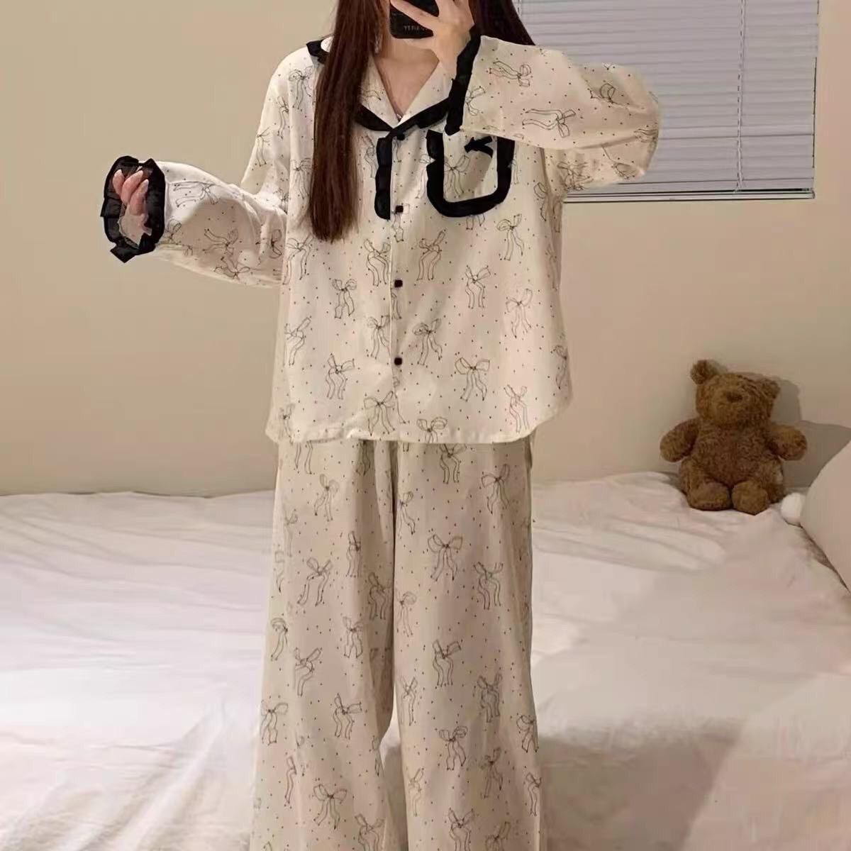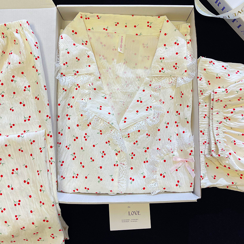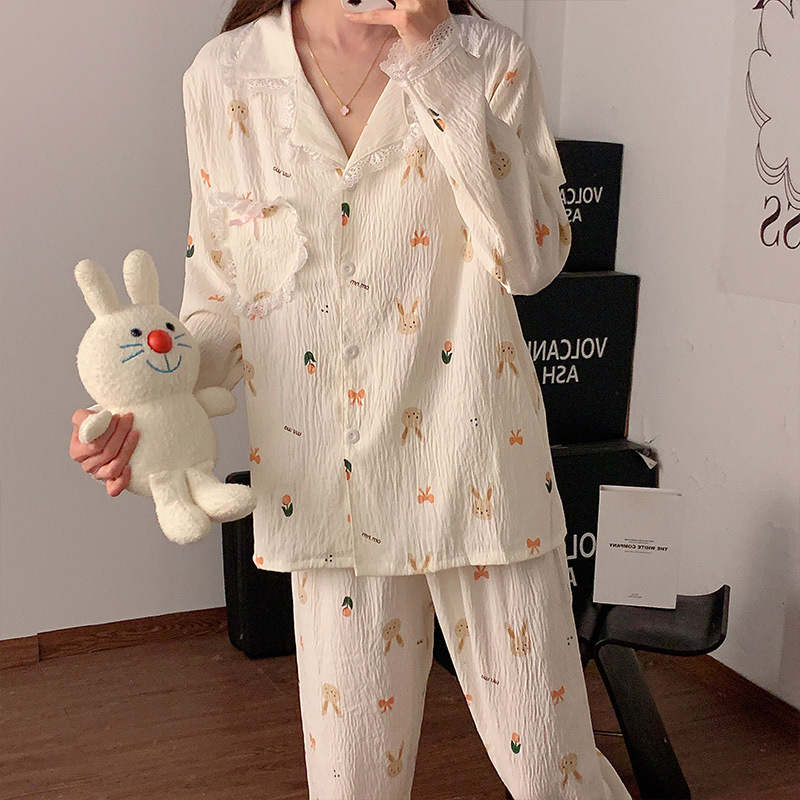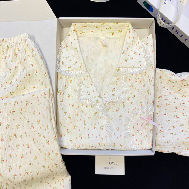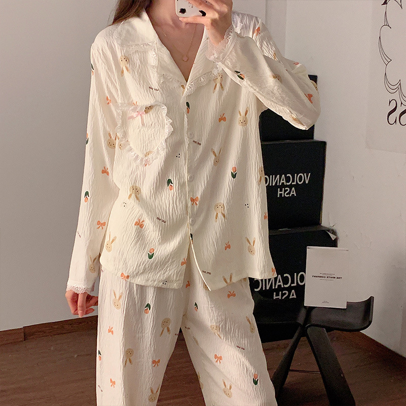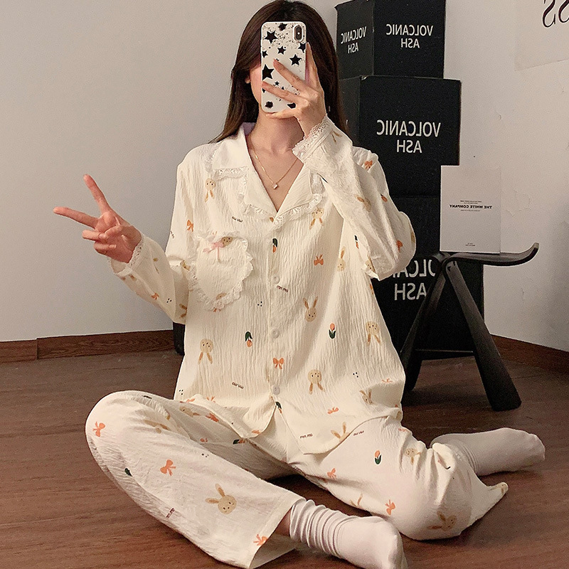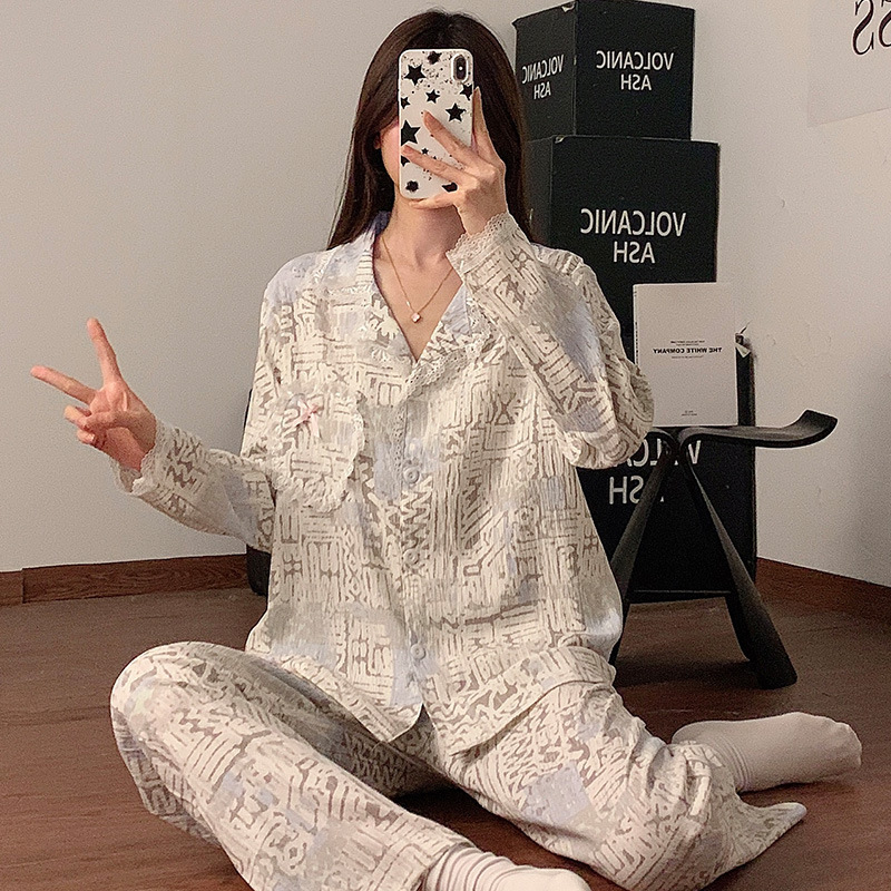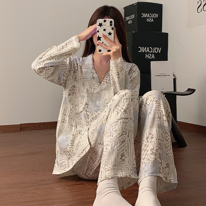 도매 세트 일본식 꽃무늬 잠옷 여성용 봄 가을 신상 구름면 귀여운 긴팔 긴바지 홈웨어 세트스토어 가기
