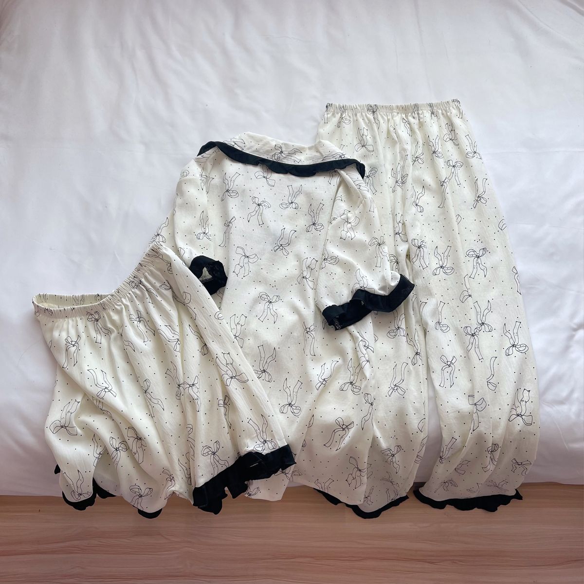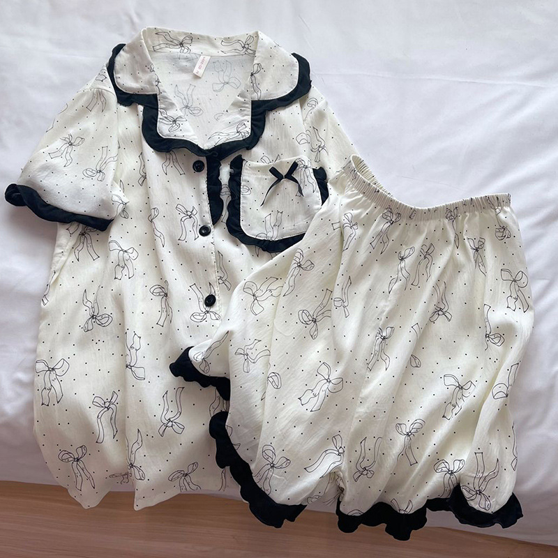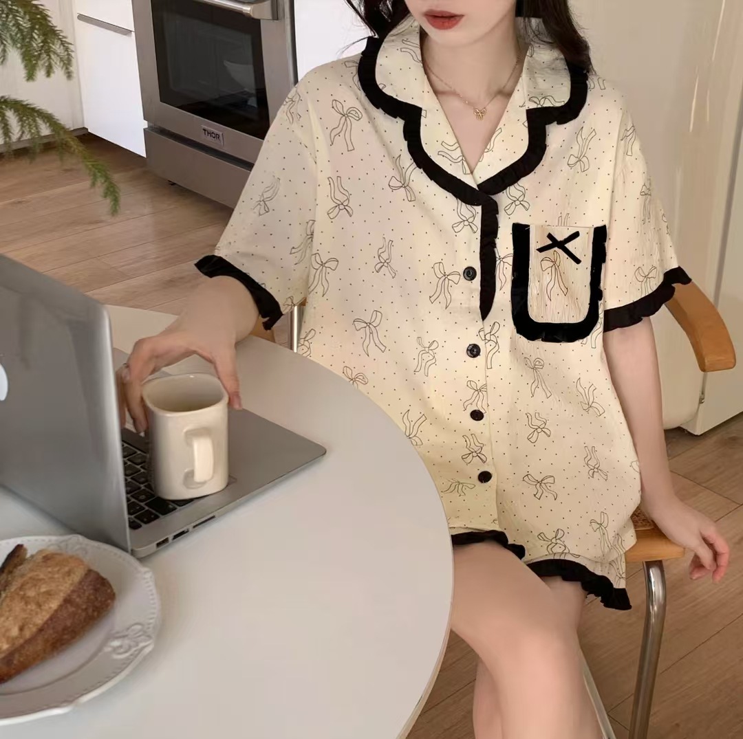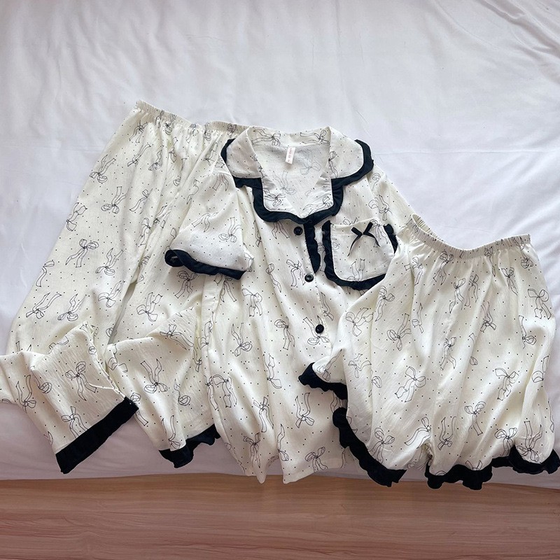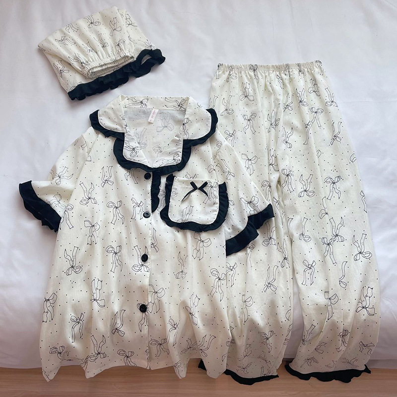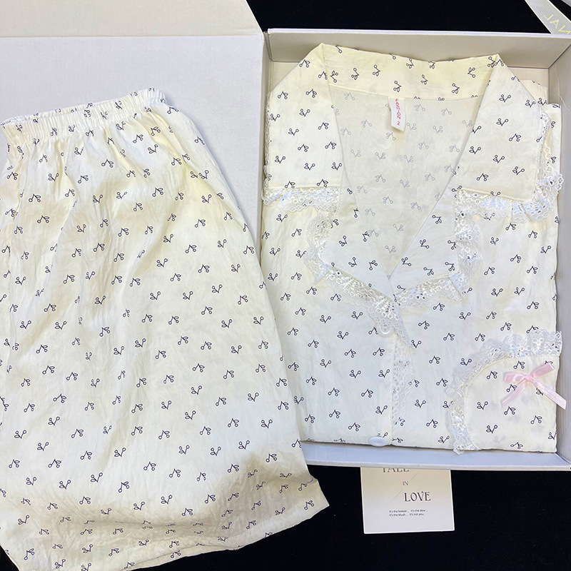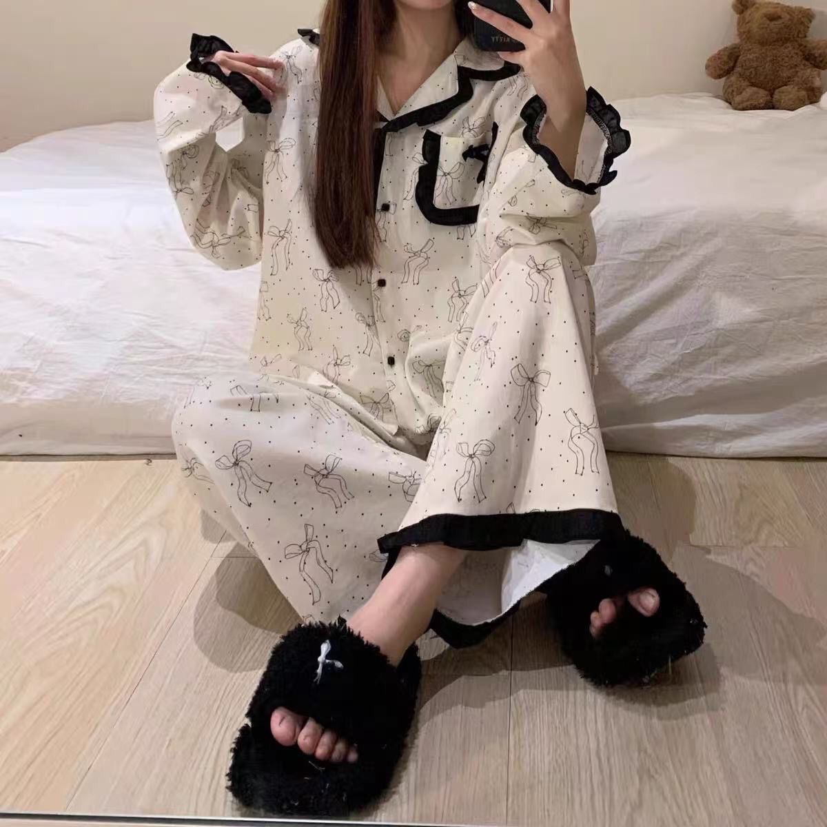 도매 세트 일본식 꽃무늬 잠옷 여성용 봄 가을 신상 구름면 귀여운 긴팔 긴바지 홈웨어 세트스토어 가기