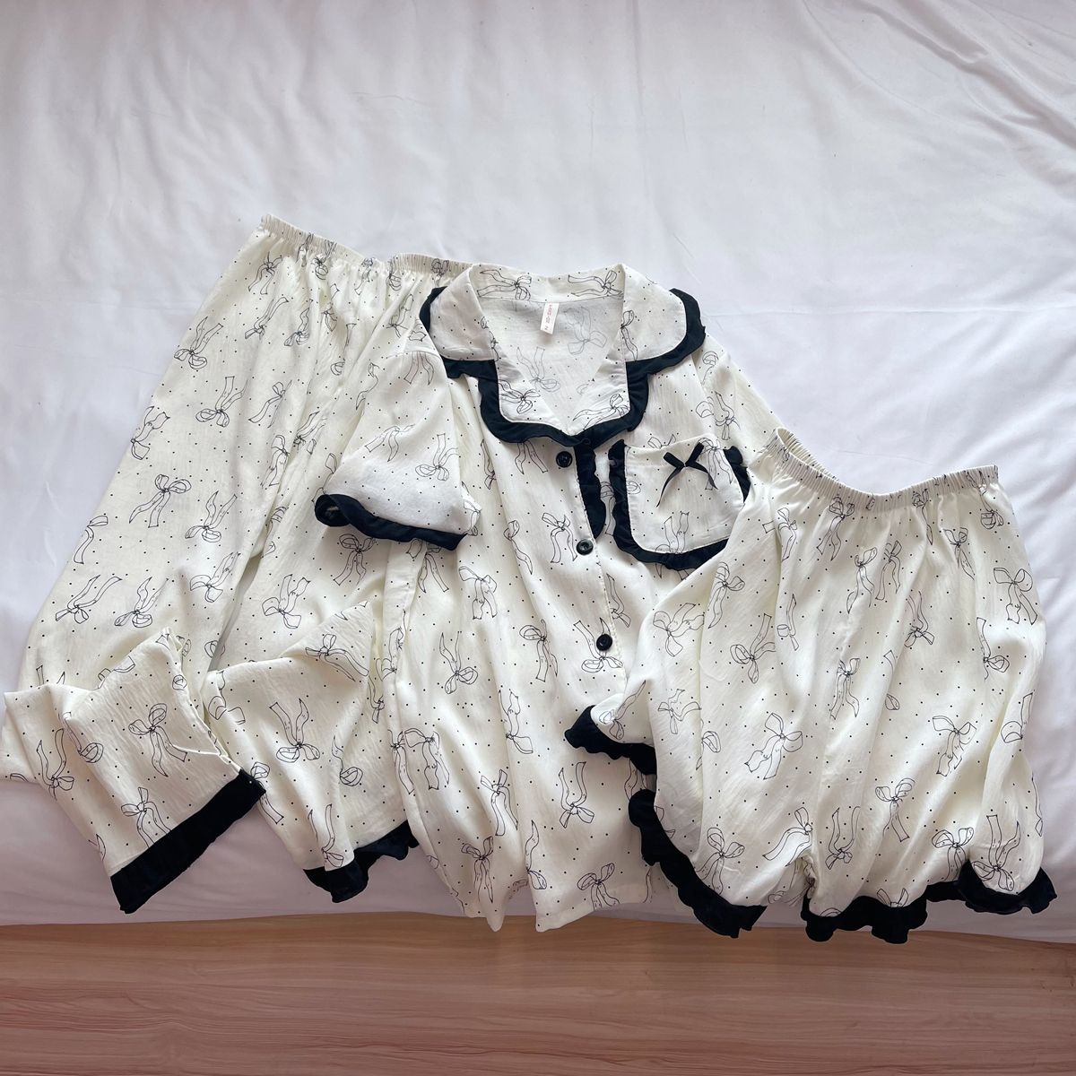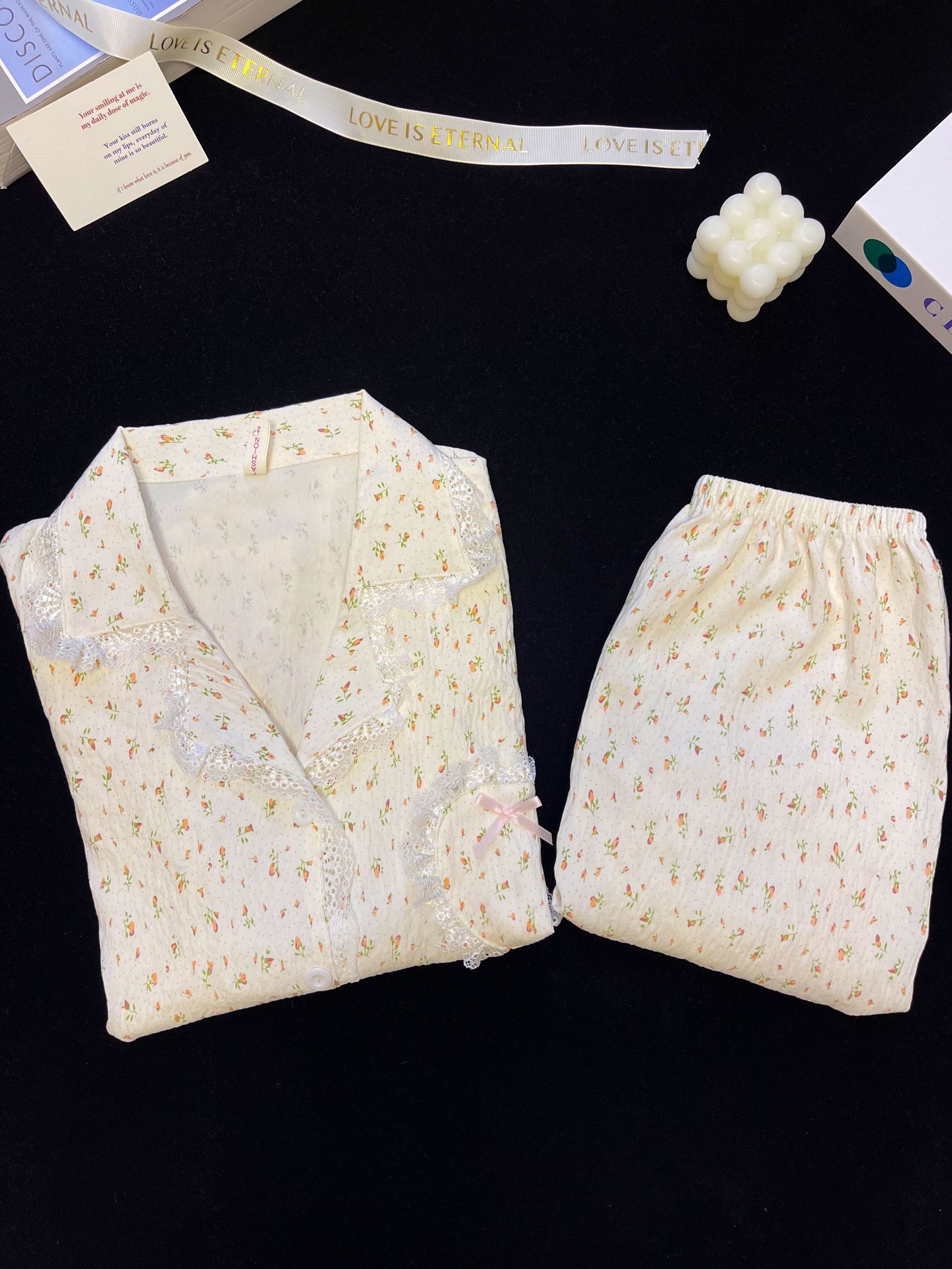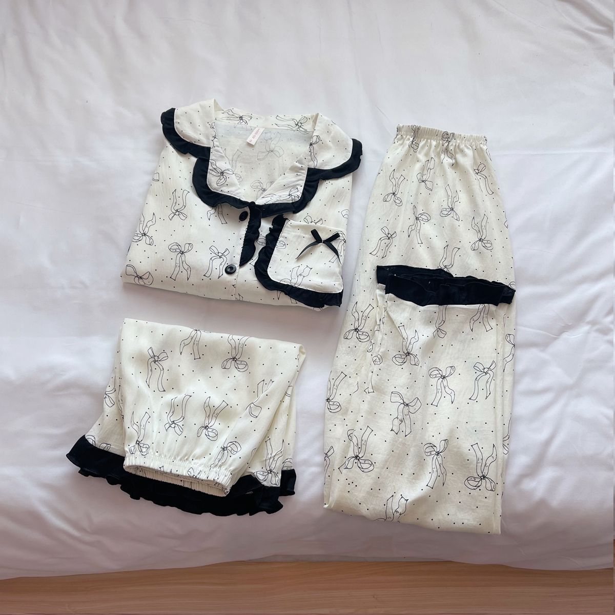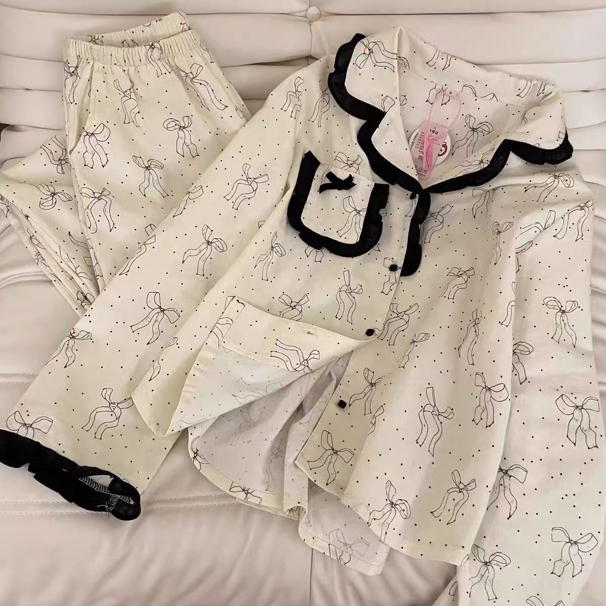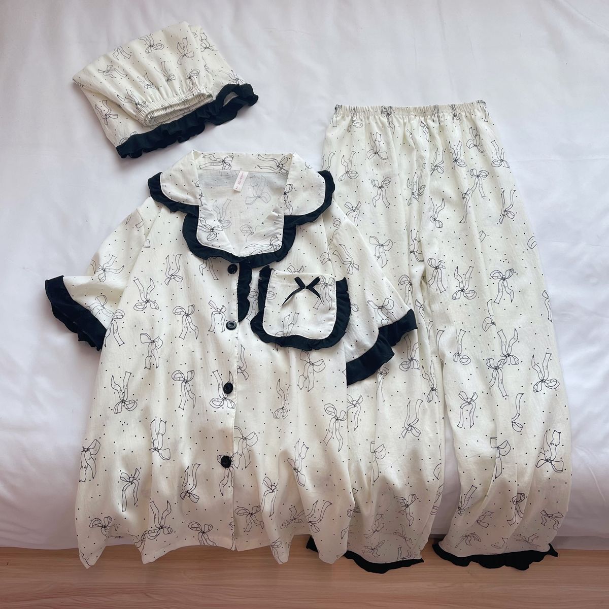 도매 세트 일본식 꽃무늬 잠옷 여성용 봄 가을 신상 구름면 귀여운 긴팔 긴바지 홈웨어 세트스토어 가기