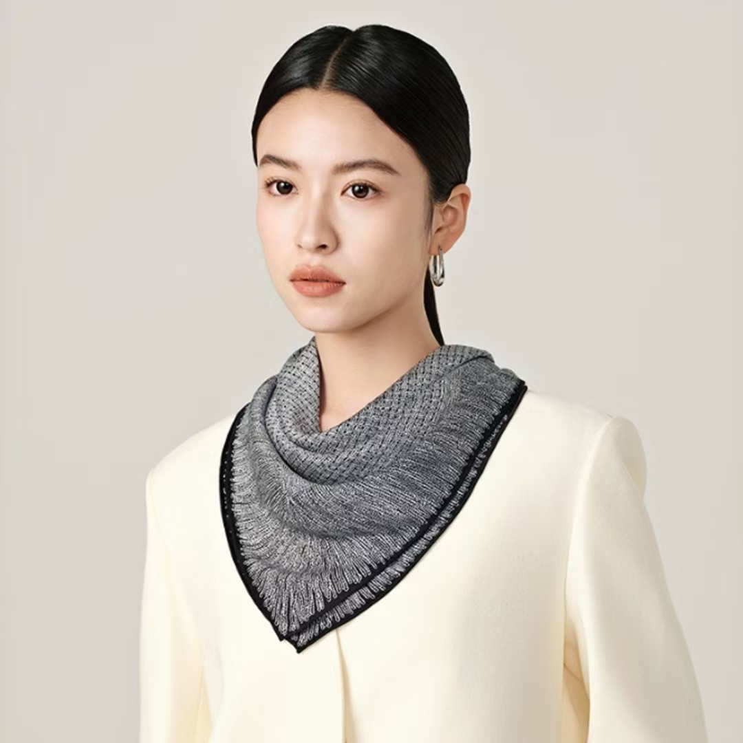 뽕나무 실크 울 [고전적인 작은 향기로운 회색 65 평방] 여성 가을과 겨울 패션 목도리 스카프