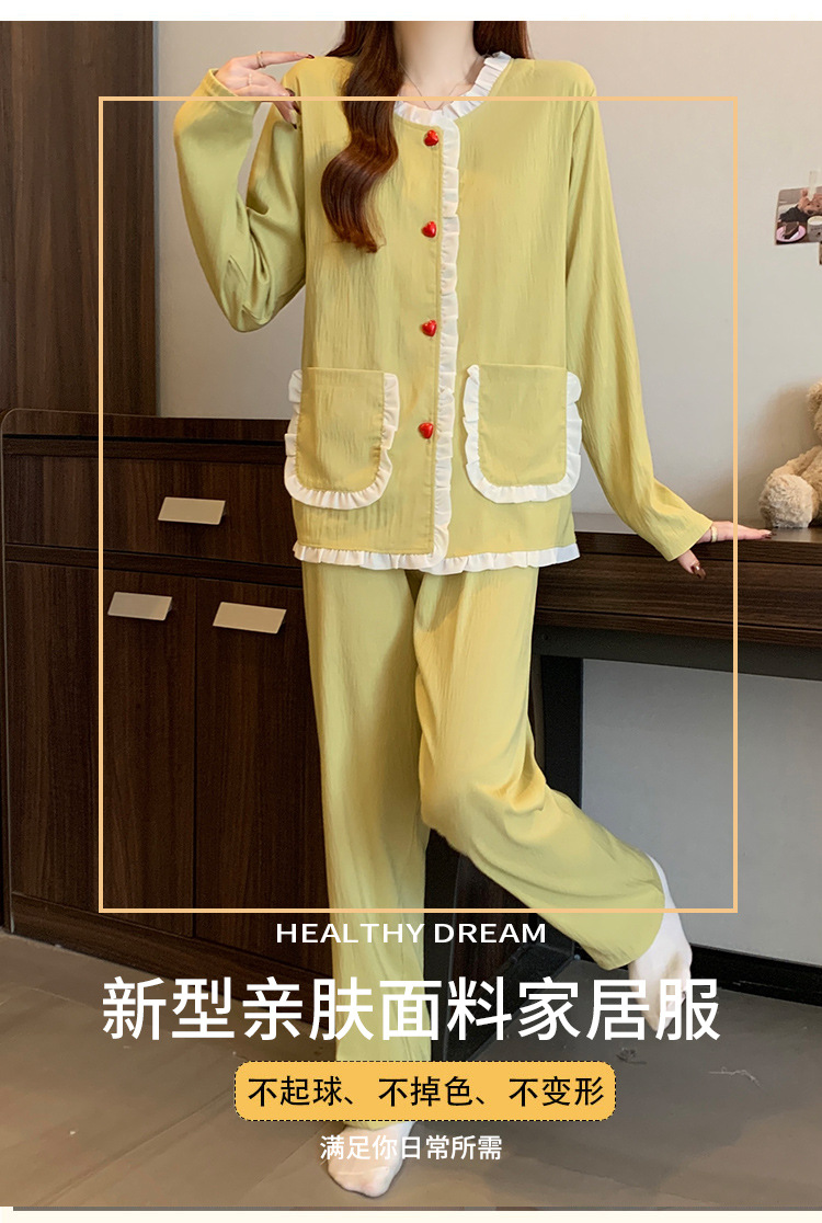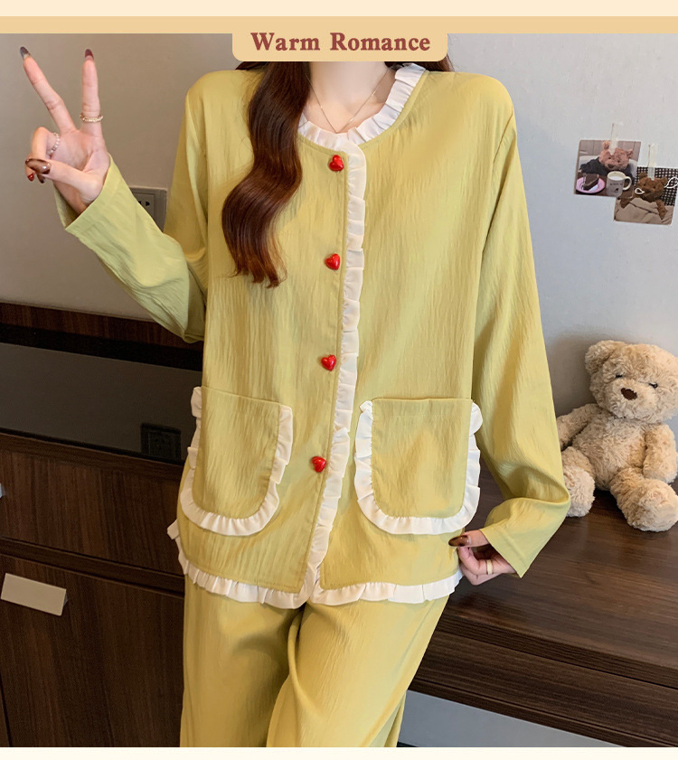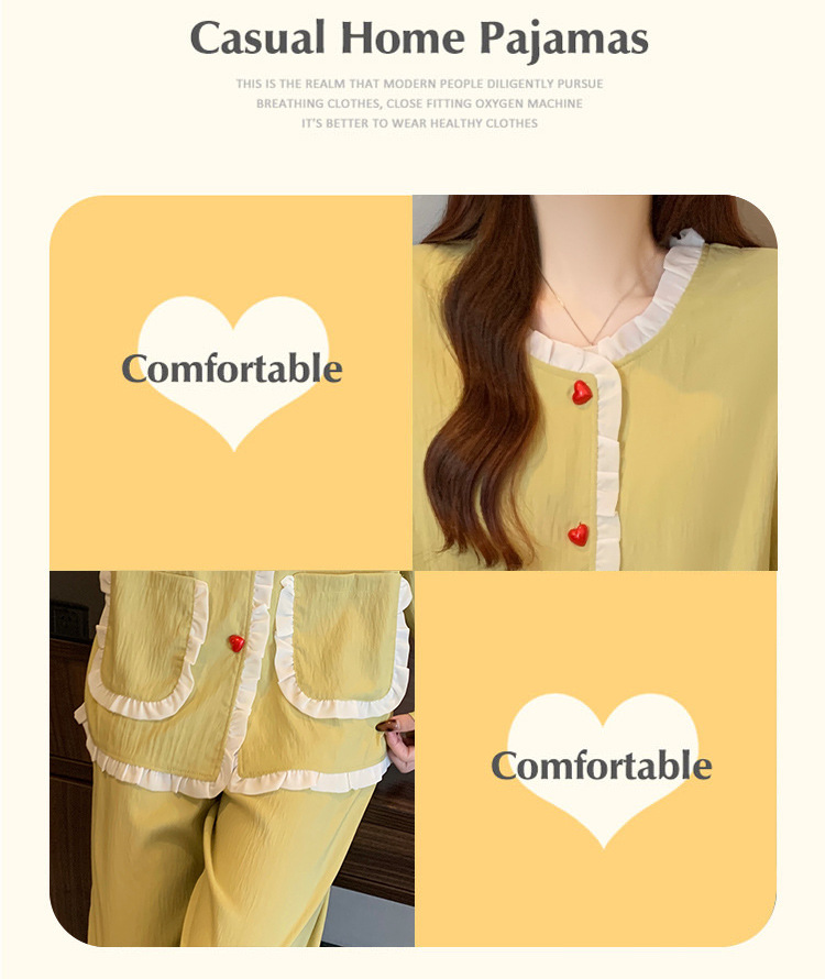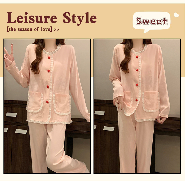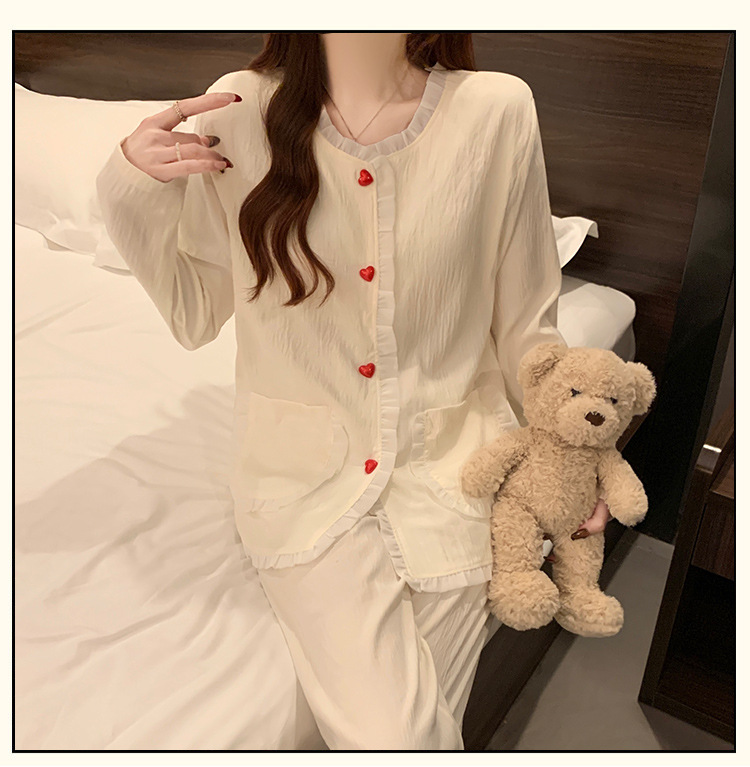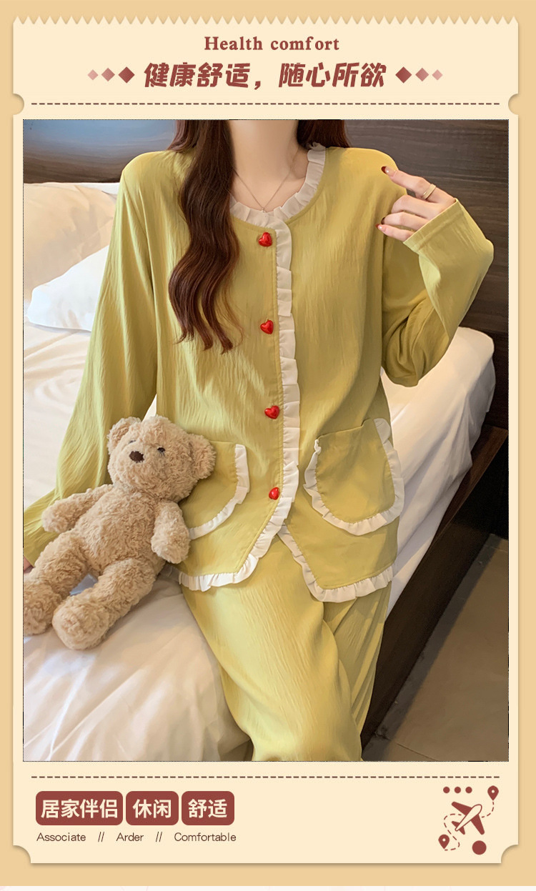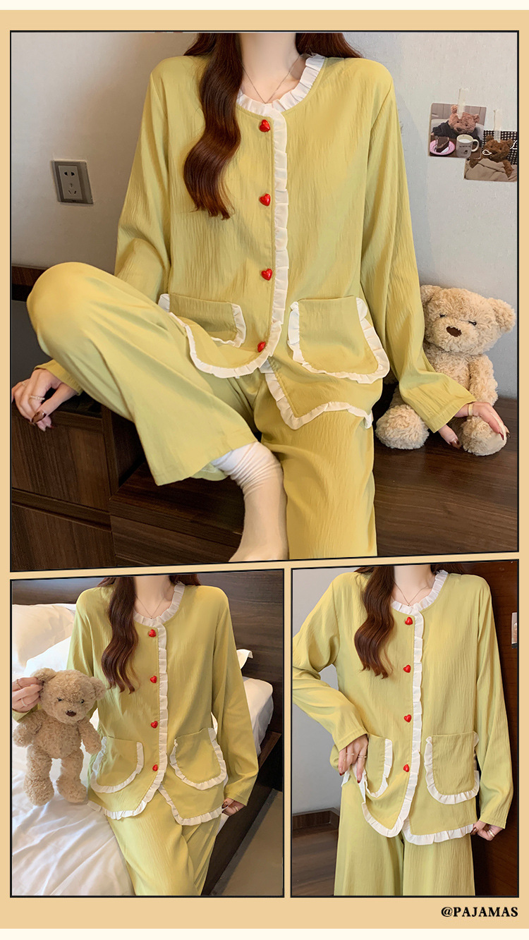 가슴 패드가 달린 잠옷 여성 봄과 가을 얇은 구름 면 카디건 긴 소매 한국 스타일 샤넬 스타일 소녀의 홈 옷 세트