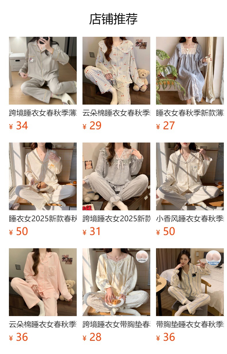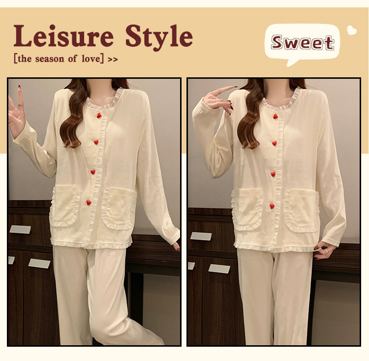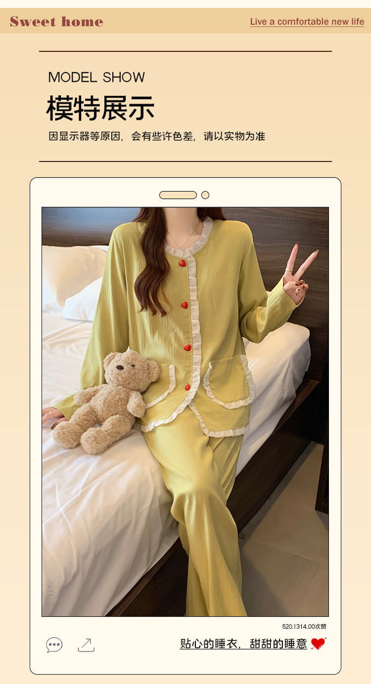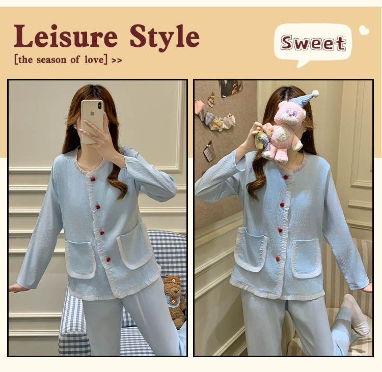 가슴 패드가 달린 잠옷 여성 봄과 가을 얇은 구름 면 카디건 긴 소매 한국 스타일 샤넬 스타일 소녀의 홈 옷 세트스토어 가기
